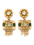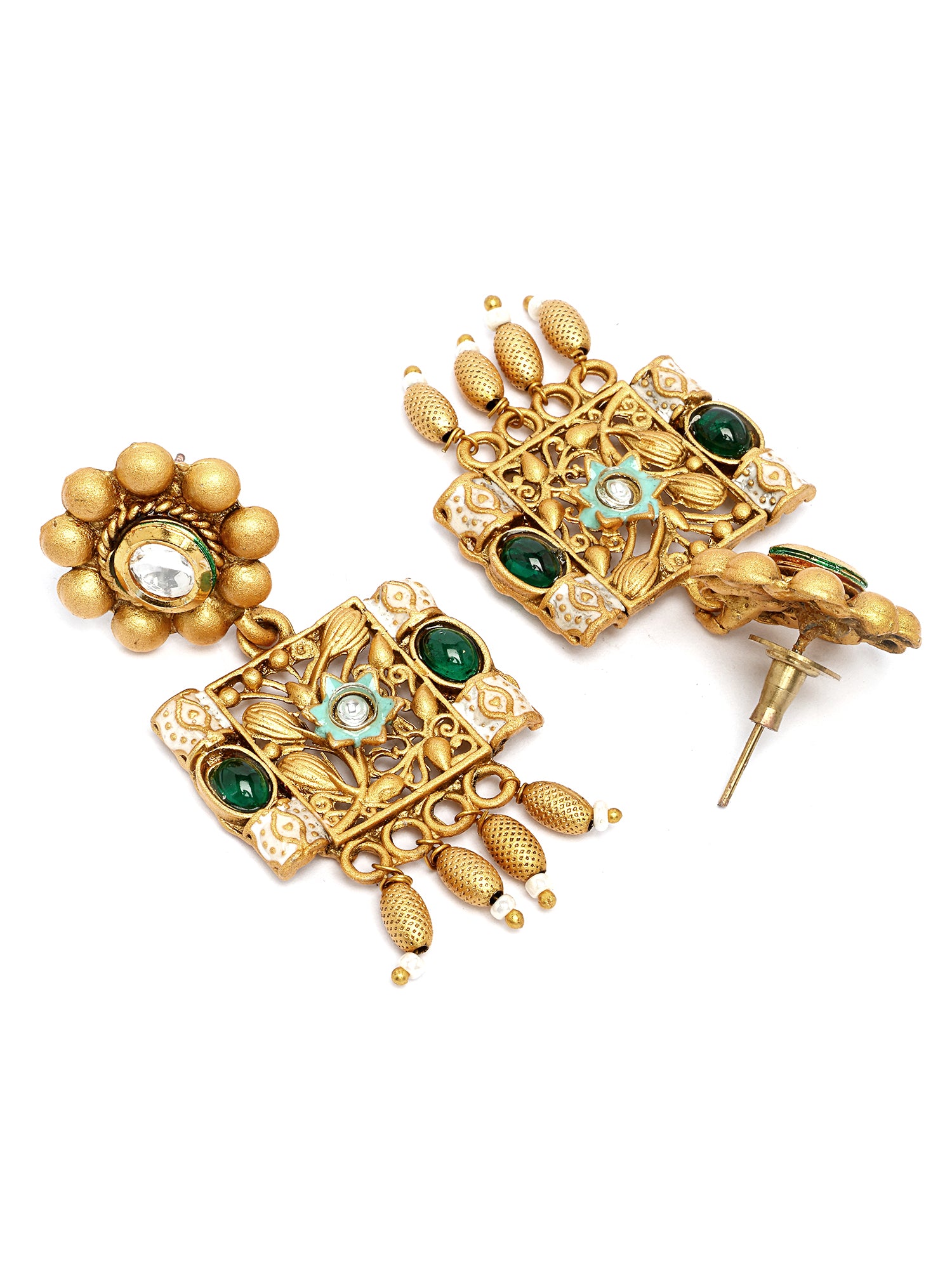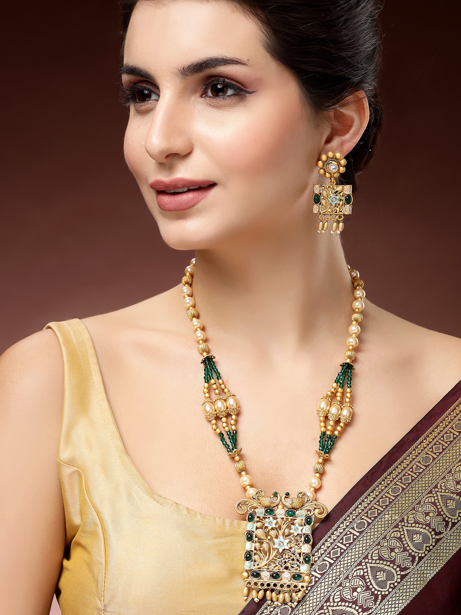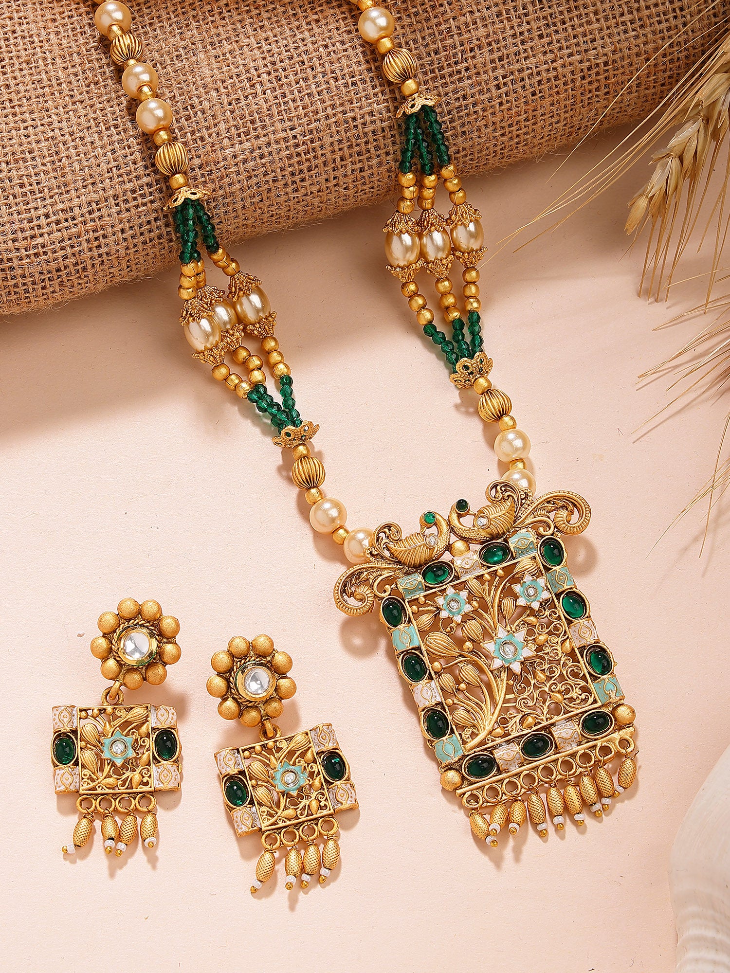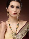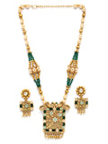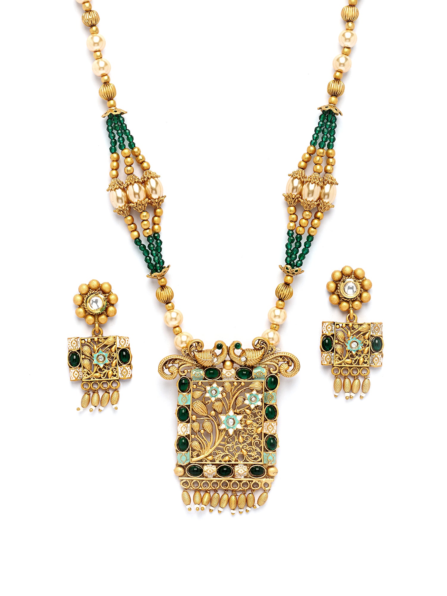 Karatcart Designer Gold-Plated Menakari Rani Haar Necklace Set with Green Beads for Women