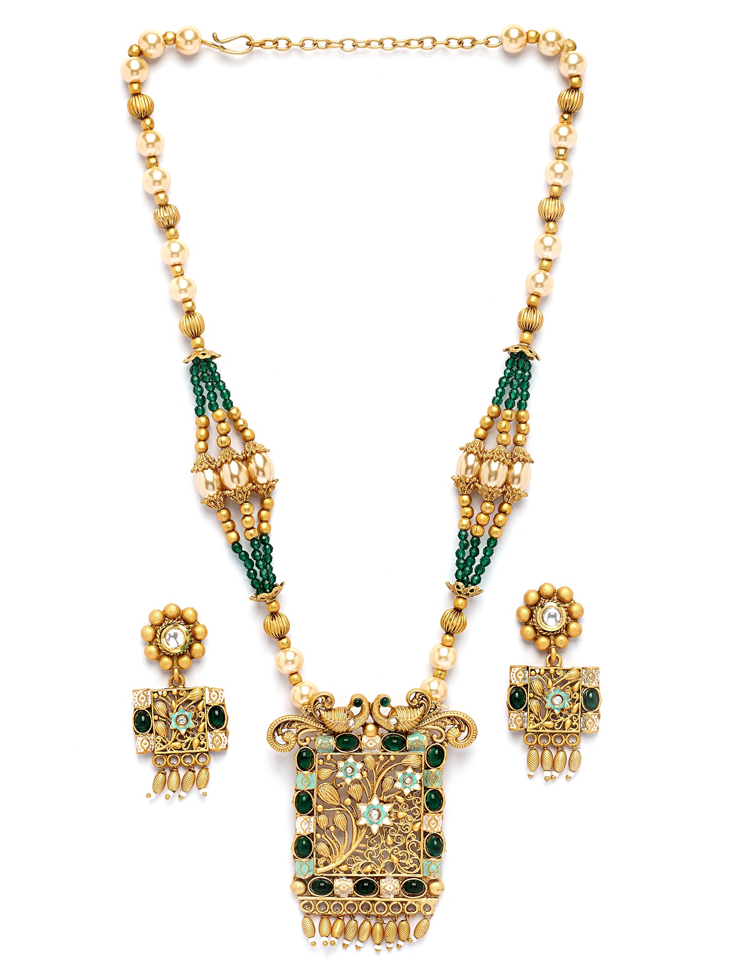 - This is a Green Jewellery Set by Brand Karatcart which has Stone stones. This is Gold Plated. We at KARATCART understand your desire to look the best on any day & we thrive in making any day an occasion. Every individual at Karatcart carries a passion for jewellery and it reflects in our beautiful designs as well as in our breathtaking craftsmanship. We create unique jewellery so you can make heads turn.