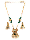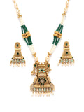 Karatcart Gold-Plated Green Floral Enamel Rani Haar Necklace Set for Women