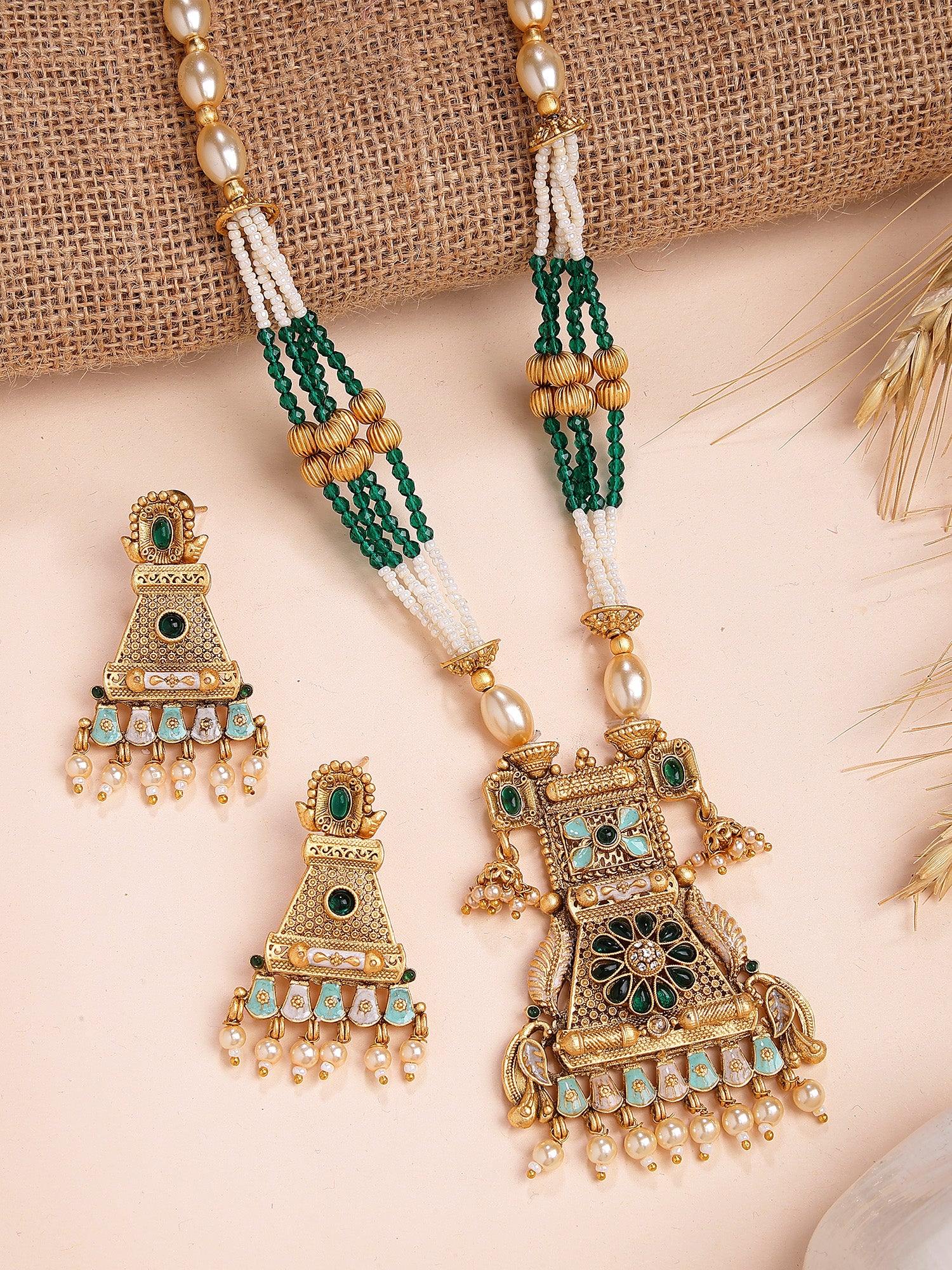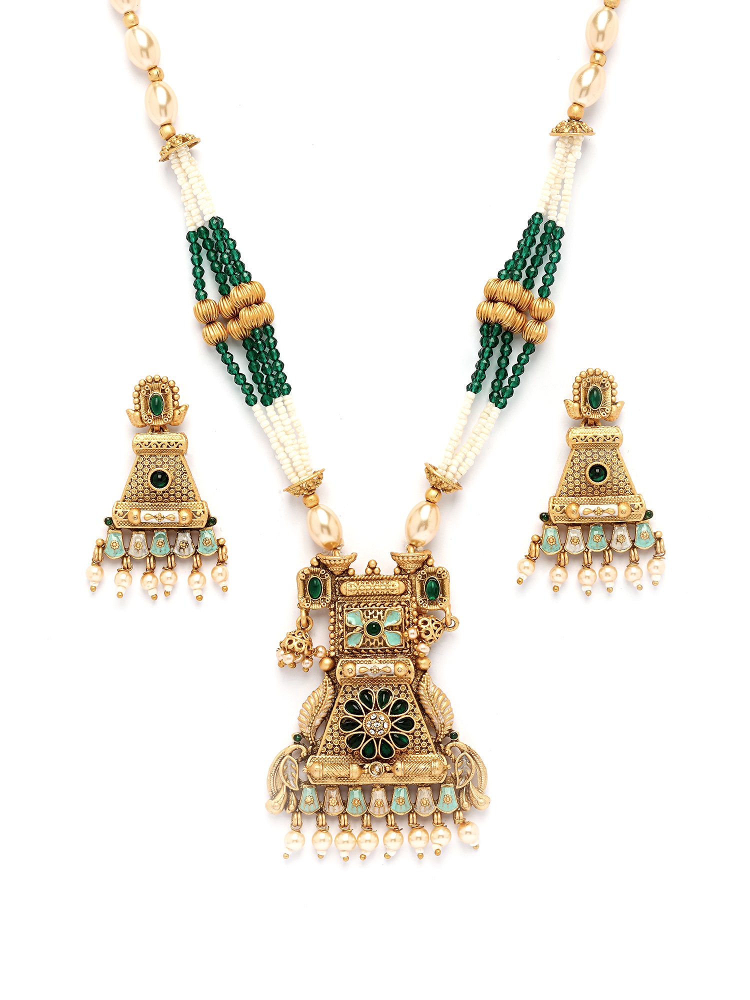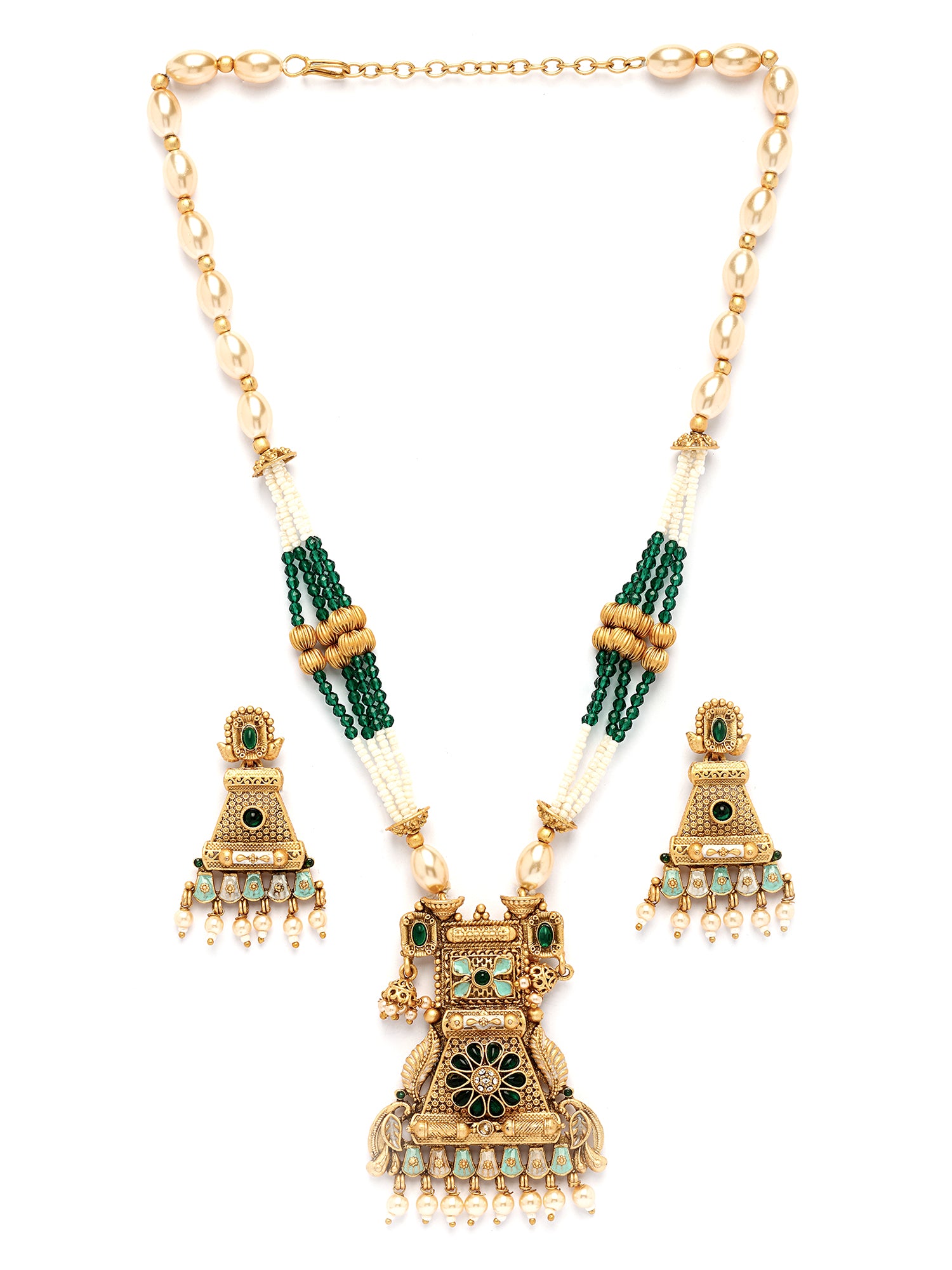 - This is a Green Jewellery Set by Brand Karatcart which has Stone stones. This is Gold Plated. We at KARATCART understand your desire to look the best on any day & we thrive in making any day an occasion. Every individual at Karatcart carries a passion for jewellery and it reflects in our beautiful designs as well as in our breathtaking craftsmanship. We create unique jewellery so you can make heads turn.