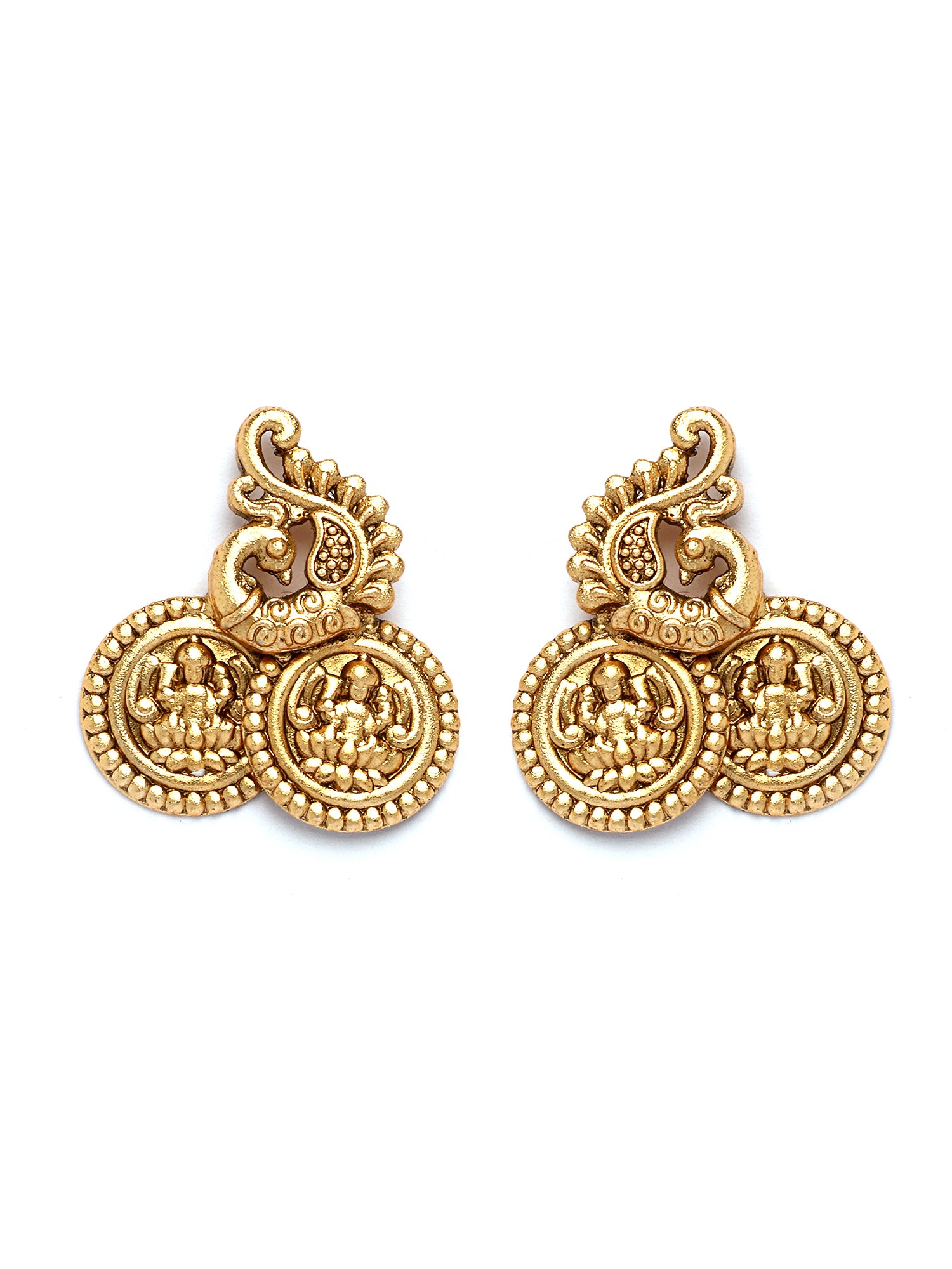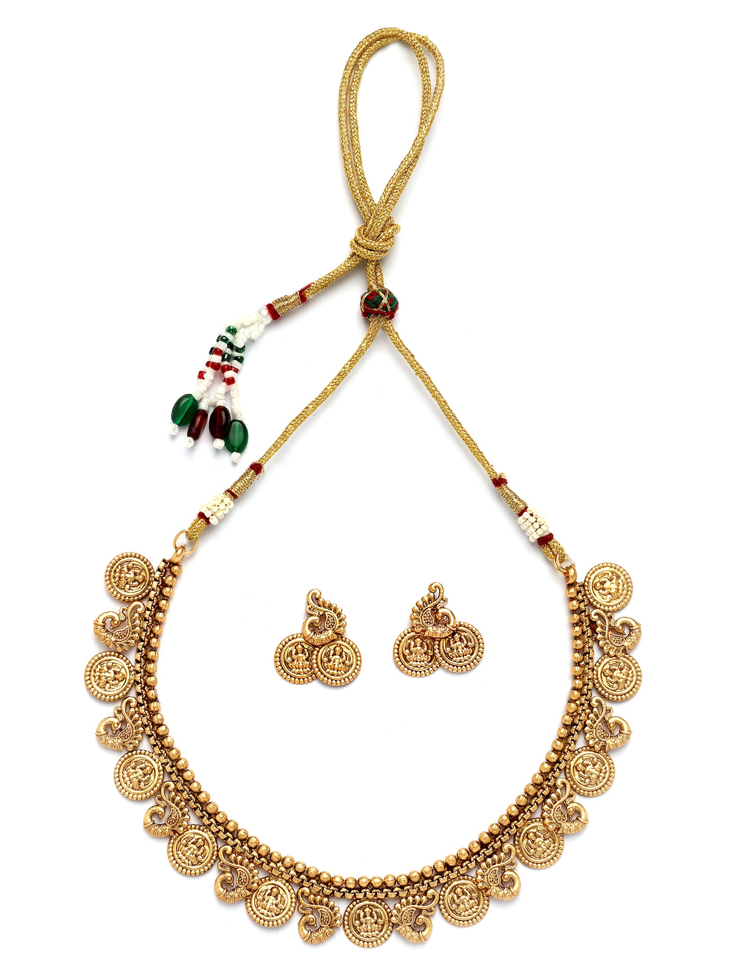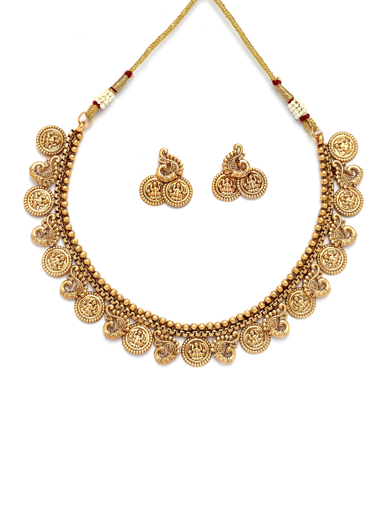 Karatcart Gold Plated Laxmi Mata and Peacock Coin Temple Jewellery Set for Women