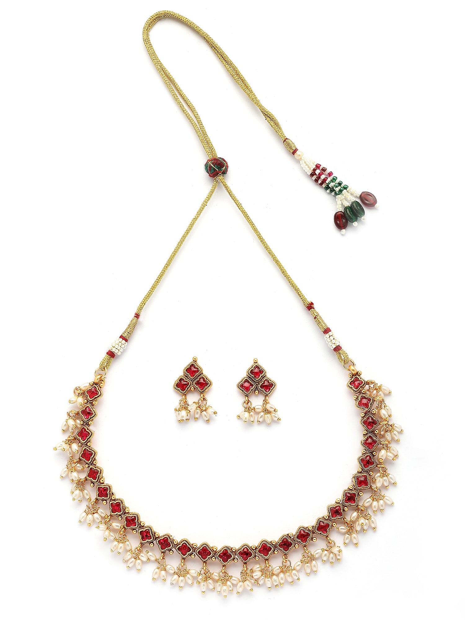 - This is a Red Jewellery Set by Brand Karatcart which has Stone stones. This is Gold Plated. We at KARATCART understand your desire to look the best on any day & we thrive in making any day an occasion. Every individual at Karatcart carries a passion for jewellery and it reflects in our beautiful designs as well as in our breathtaking craftsmanship. We create unique jewellery so you can make heads turn.