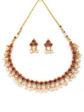 Karatcart Gold Plated Red Stone Studded Kundan Jewellery Set for Women