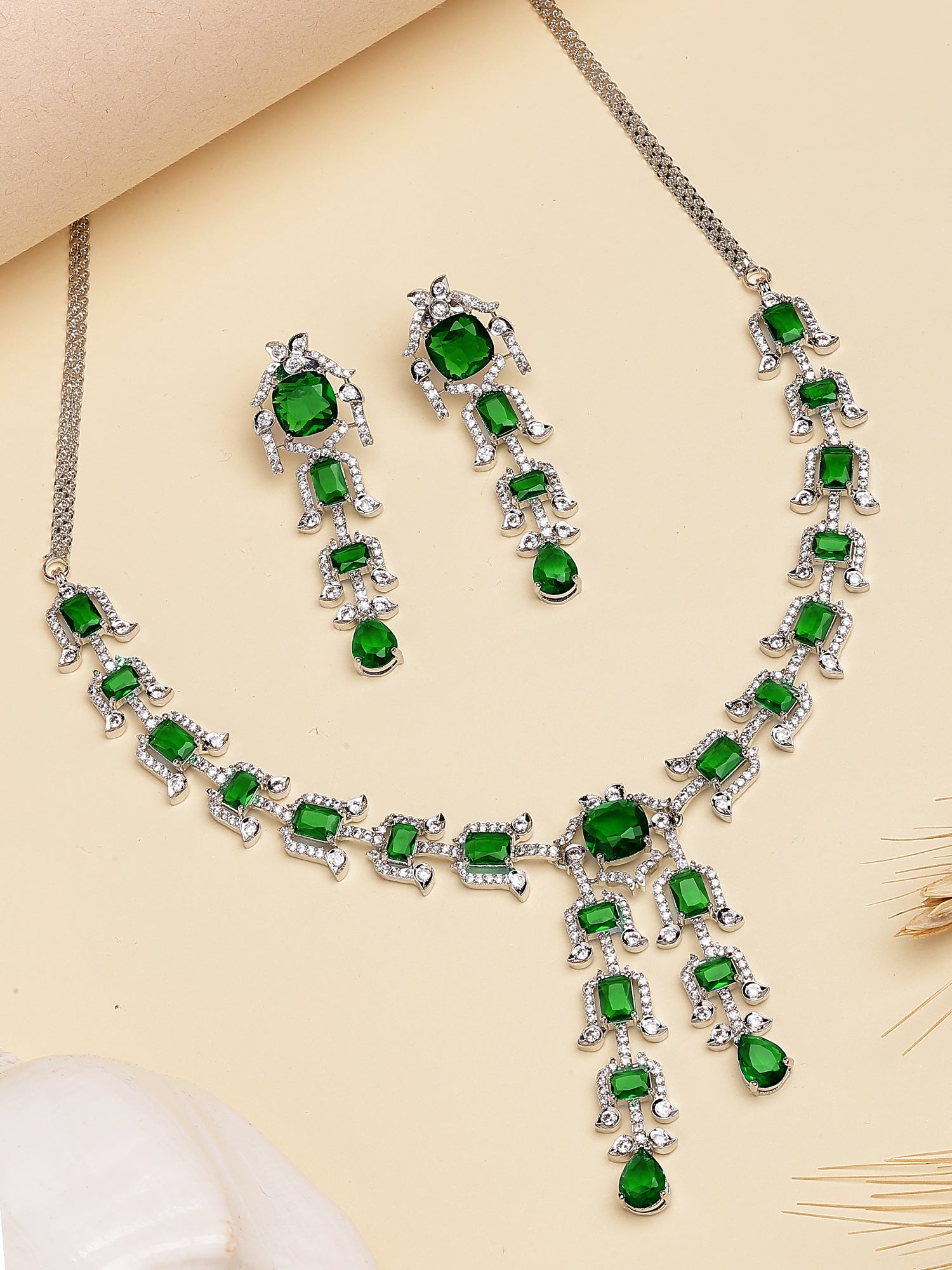 - This is a Green Jewellery Set by Brand Karatcart which has American Diamond stones. This is Silver Plated. We at KARATCART understand your desire to look the best on any day & we thrive in making any day an occasion. Every individual at Karatcart carries a passion for jewellery and it reflects in our beautiful designs as well as in our breathtaking craftsmanship. We create unique jewellery so you can make heads turn.