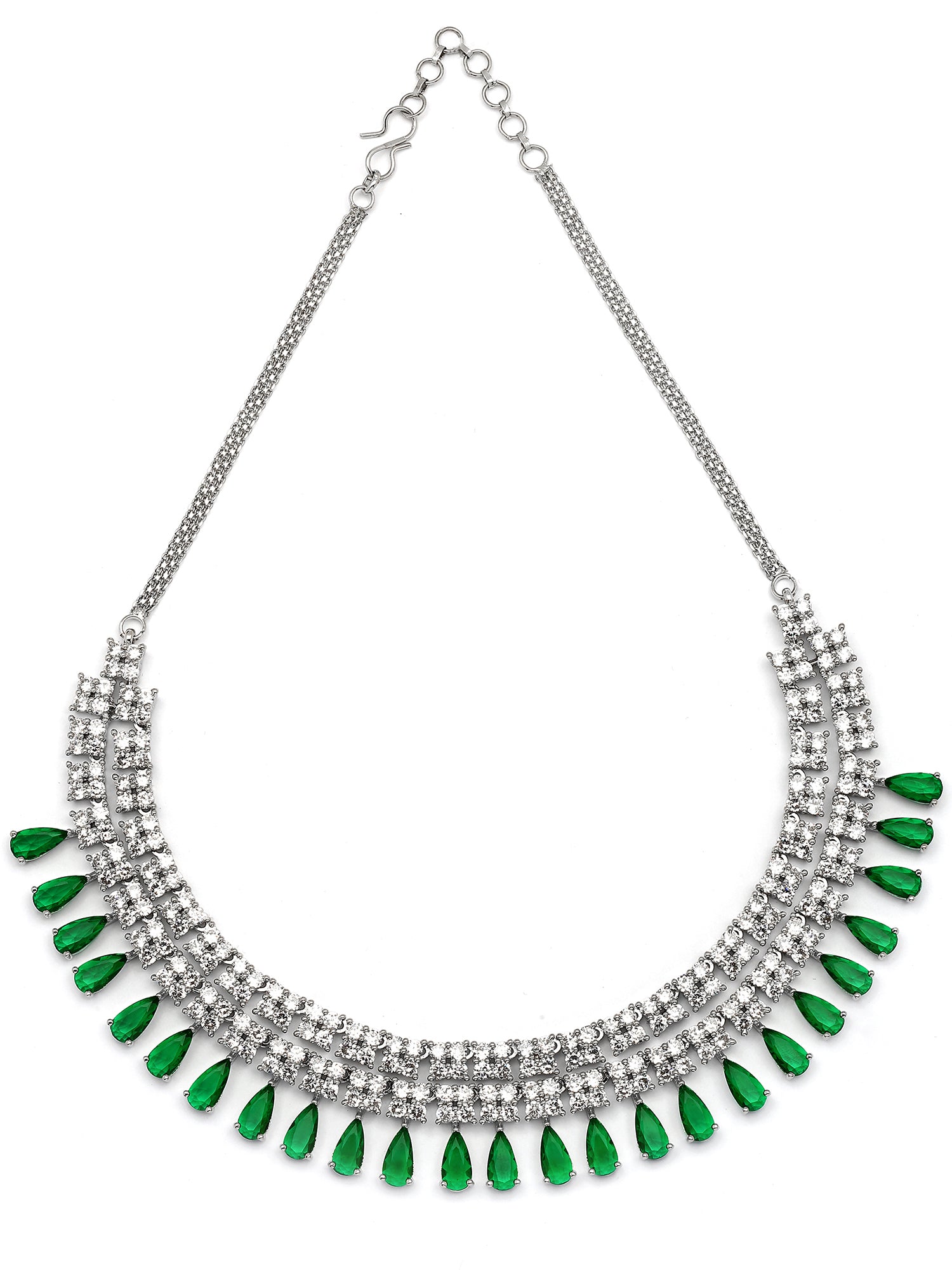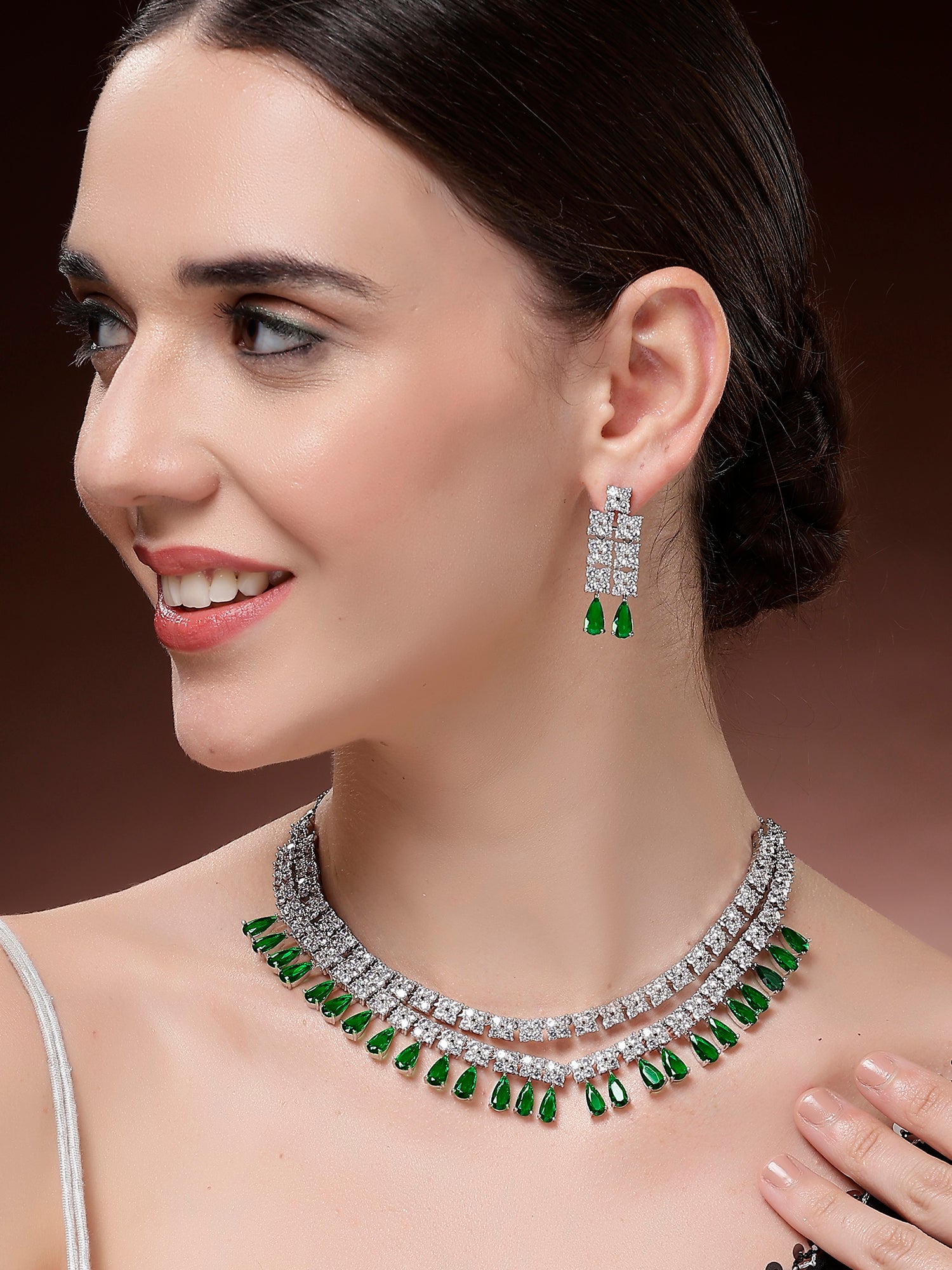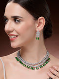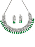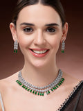 Karatcart Sparkling Silver Plated Green Drop American Diamond Necklace Set for Women