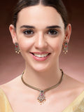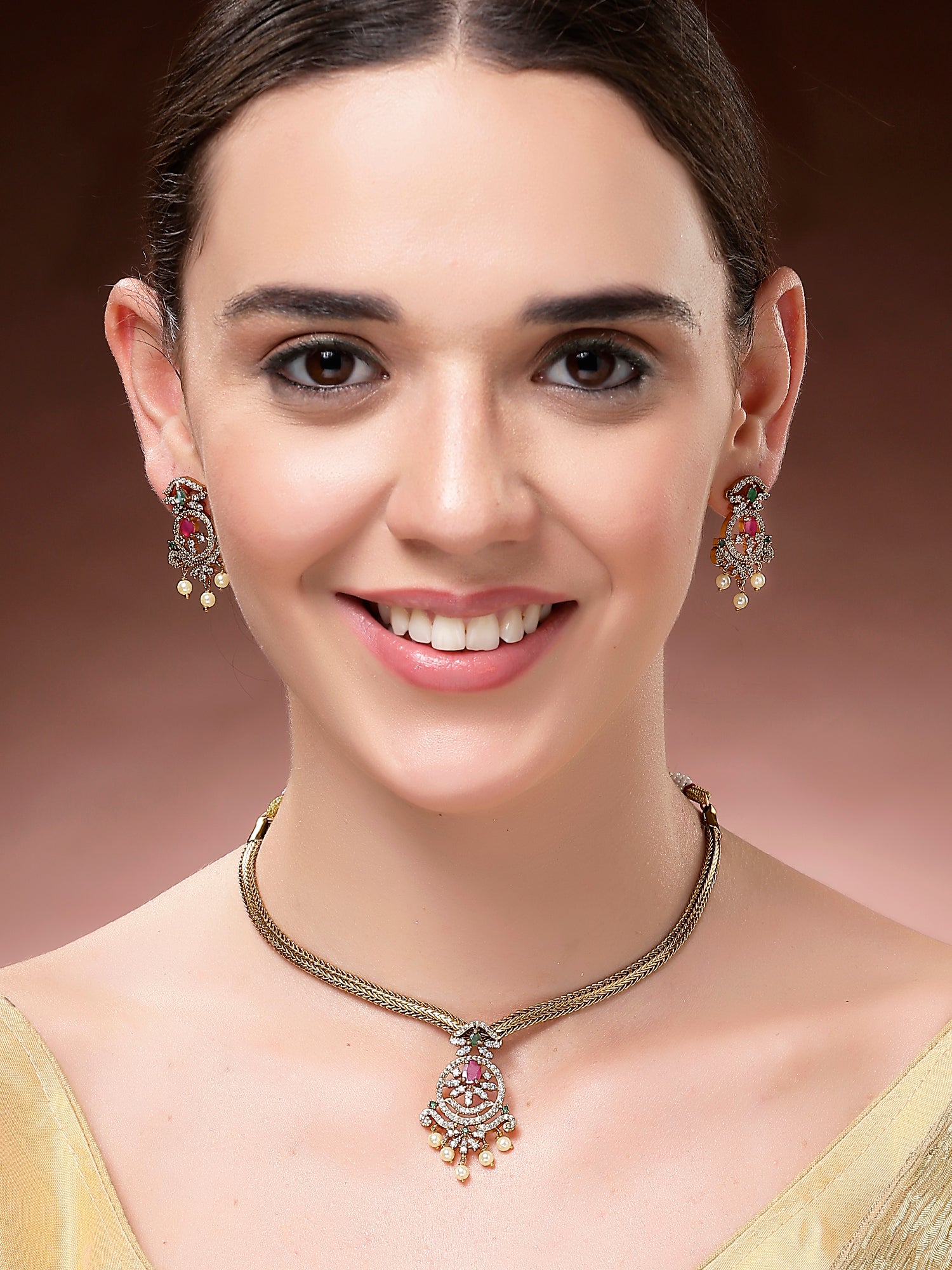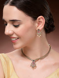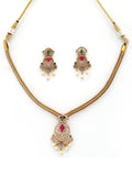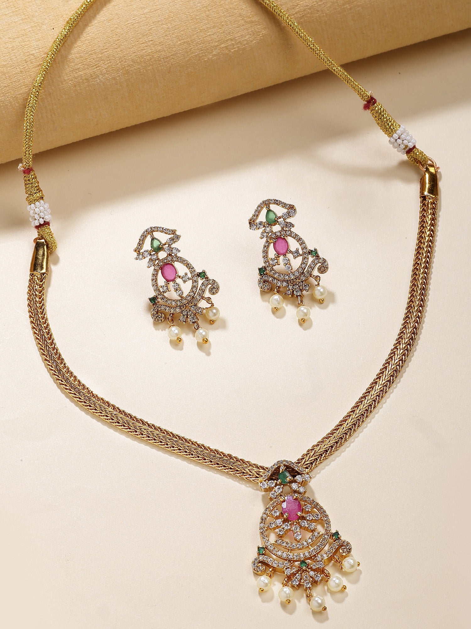 Karatcart Elegant Pink Stone Floral Design Gold Plated Necklace Set for Women
