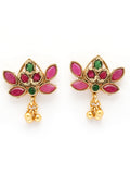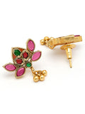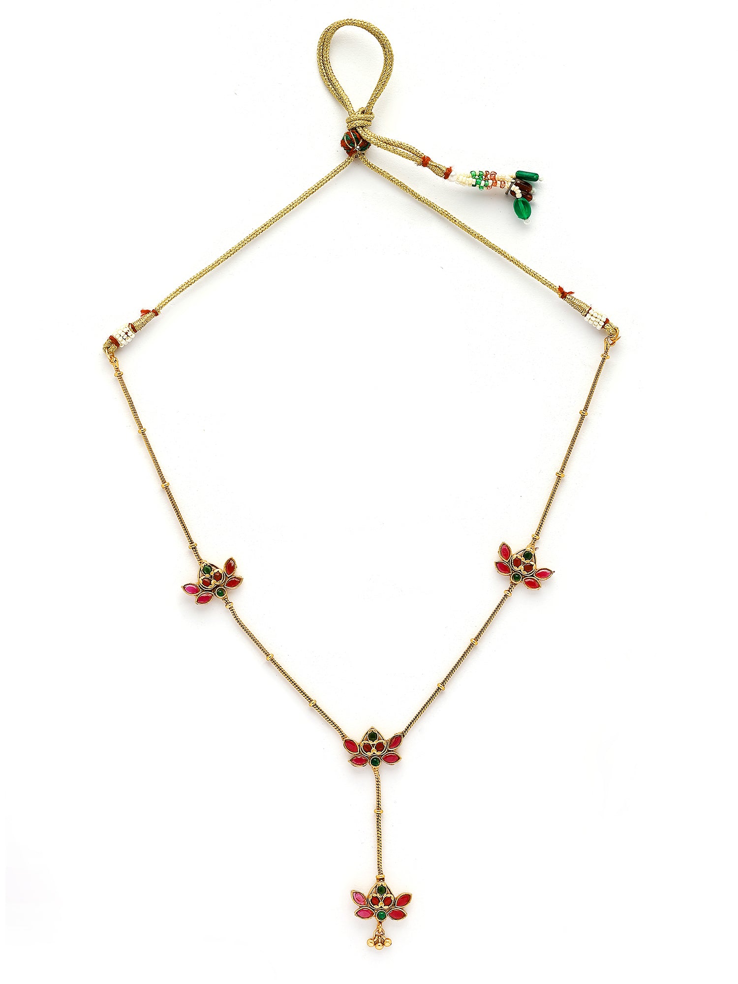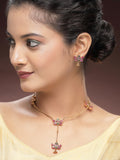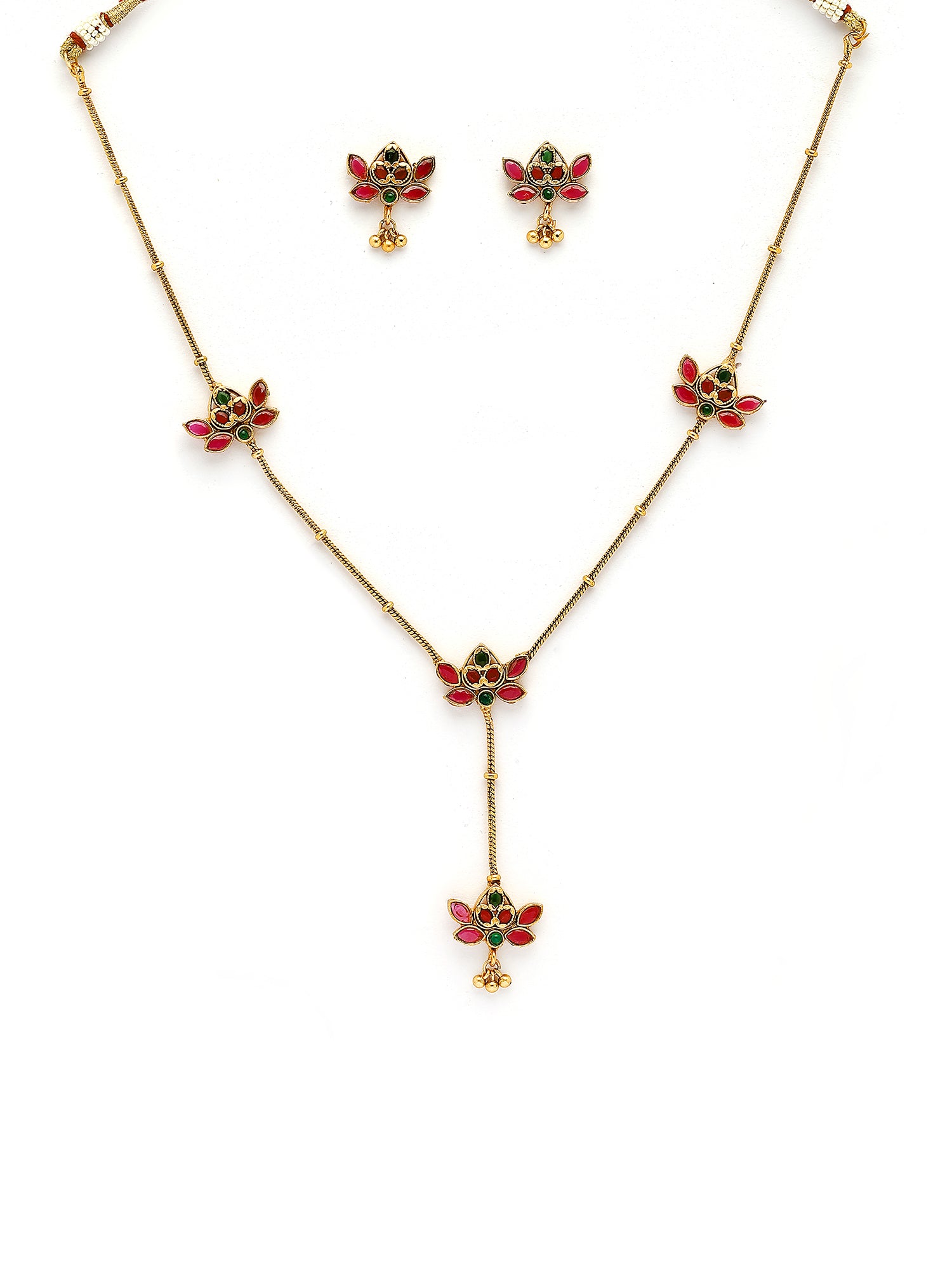 KARATCART Minimalist Gold-Plated Red and Green Stone Lotus Design Necklace Set for Women