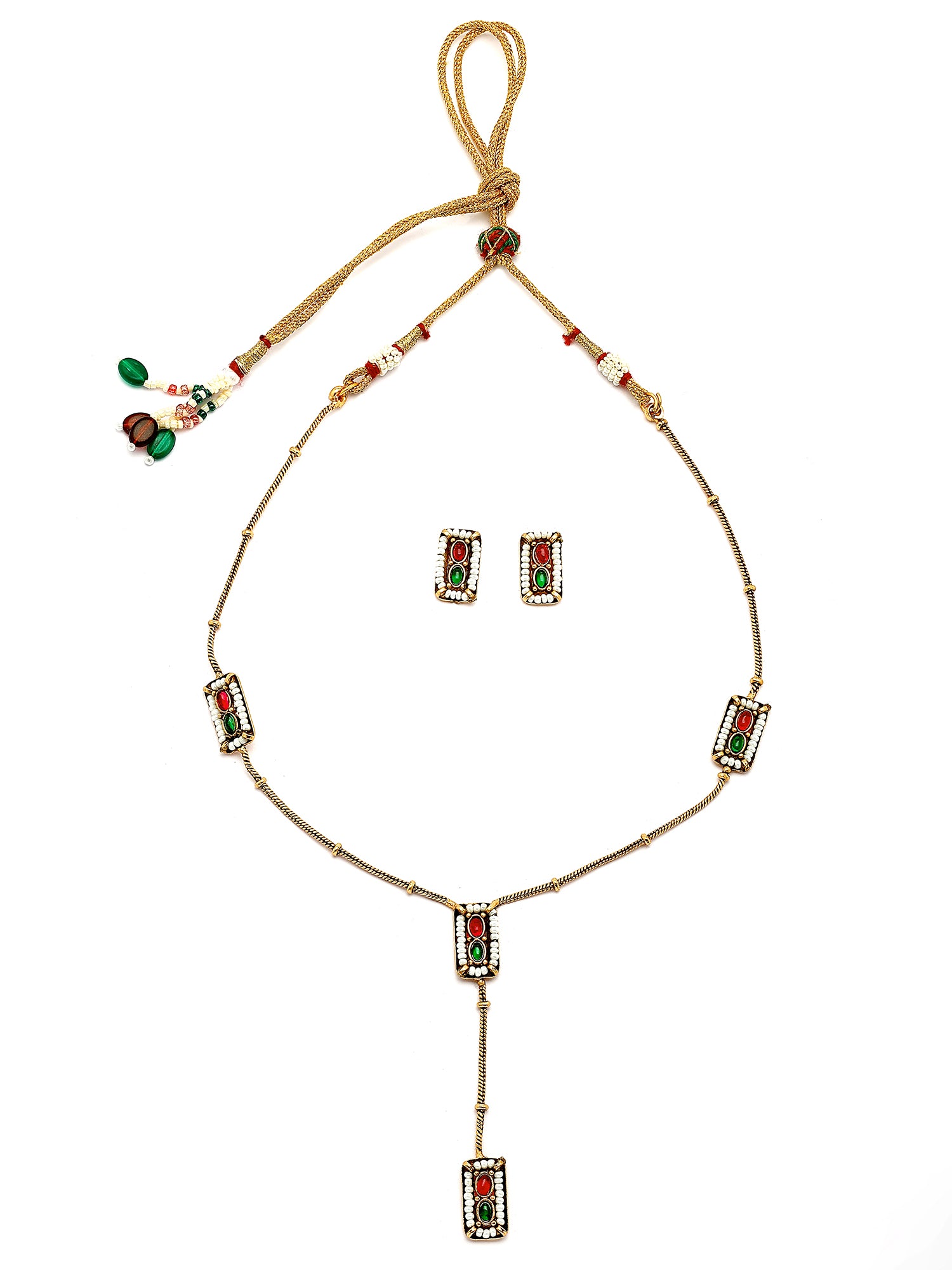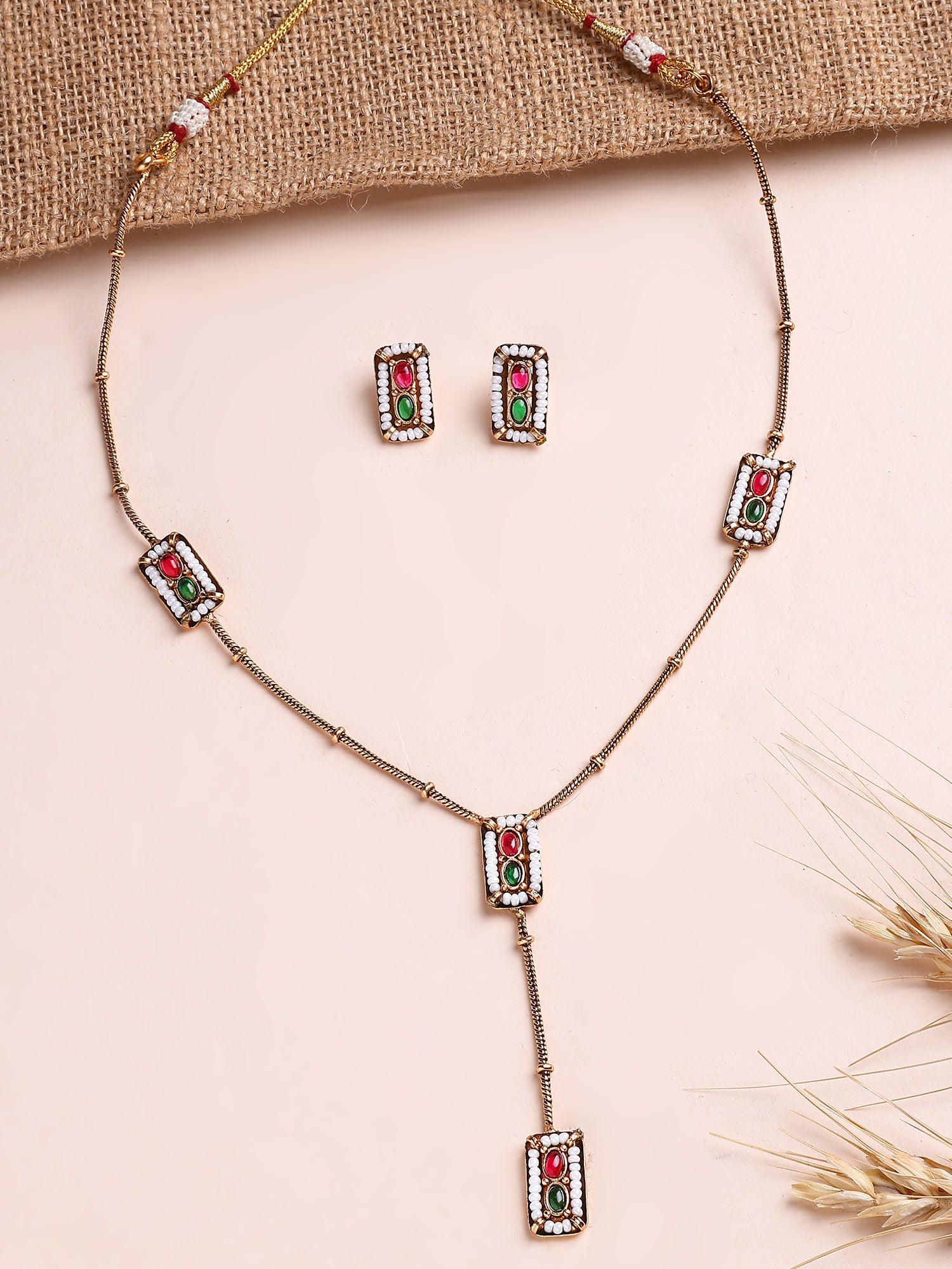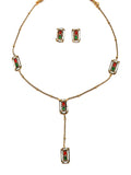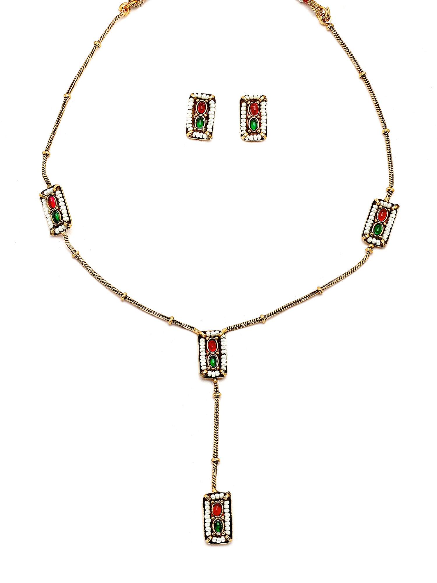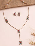 KARATCART Minimalist Gold-Plated Red and Green Stone Necklace Set for Women