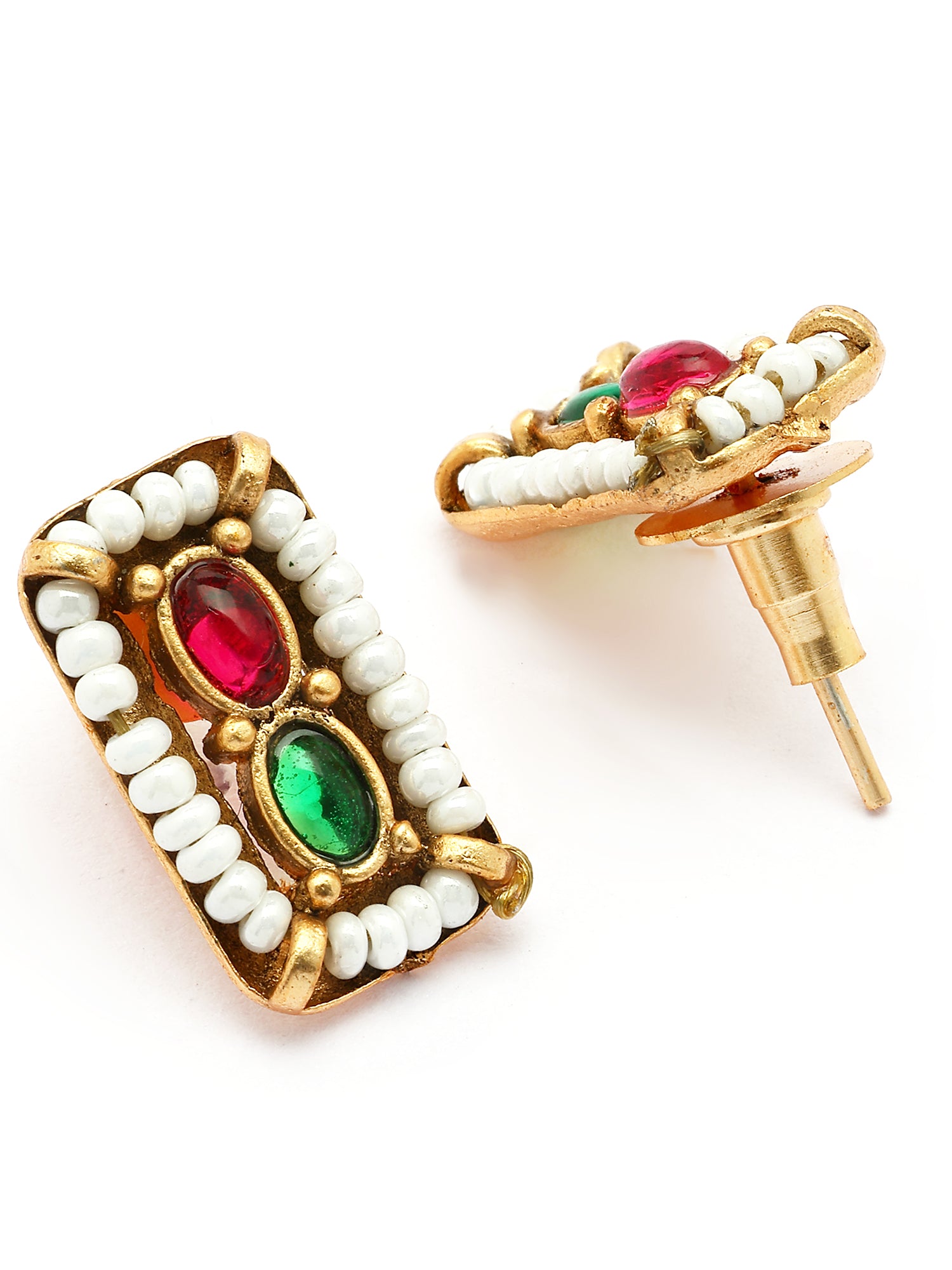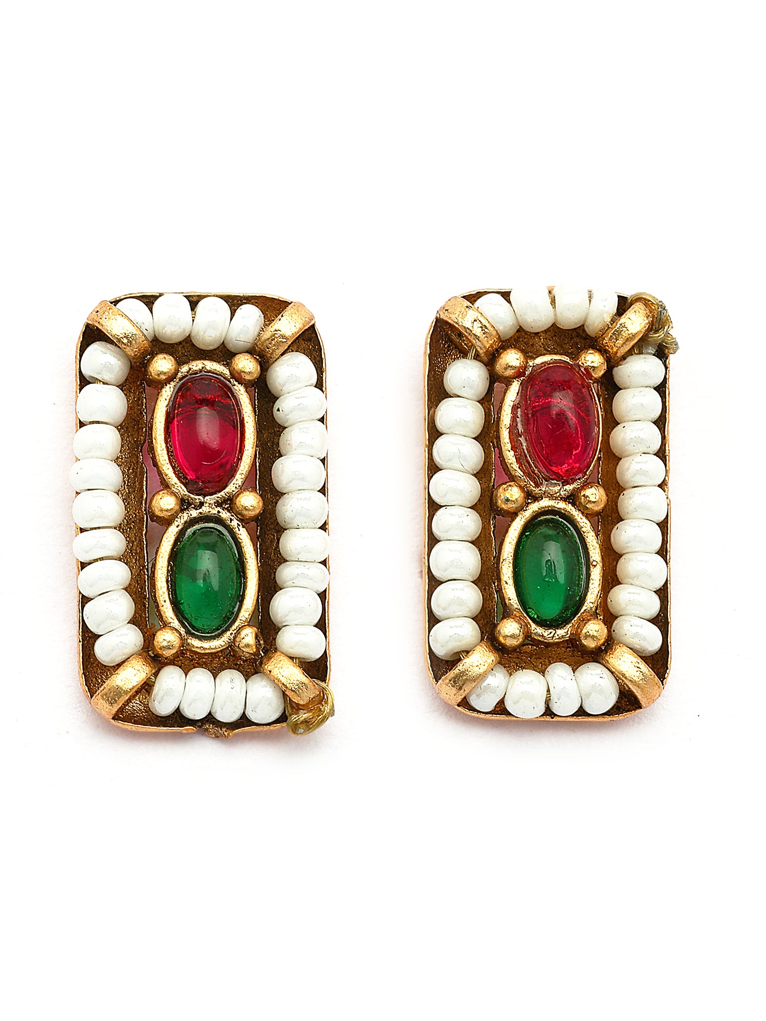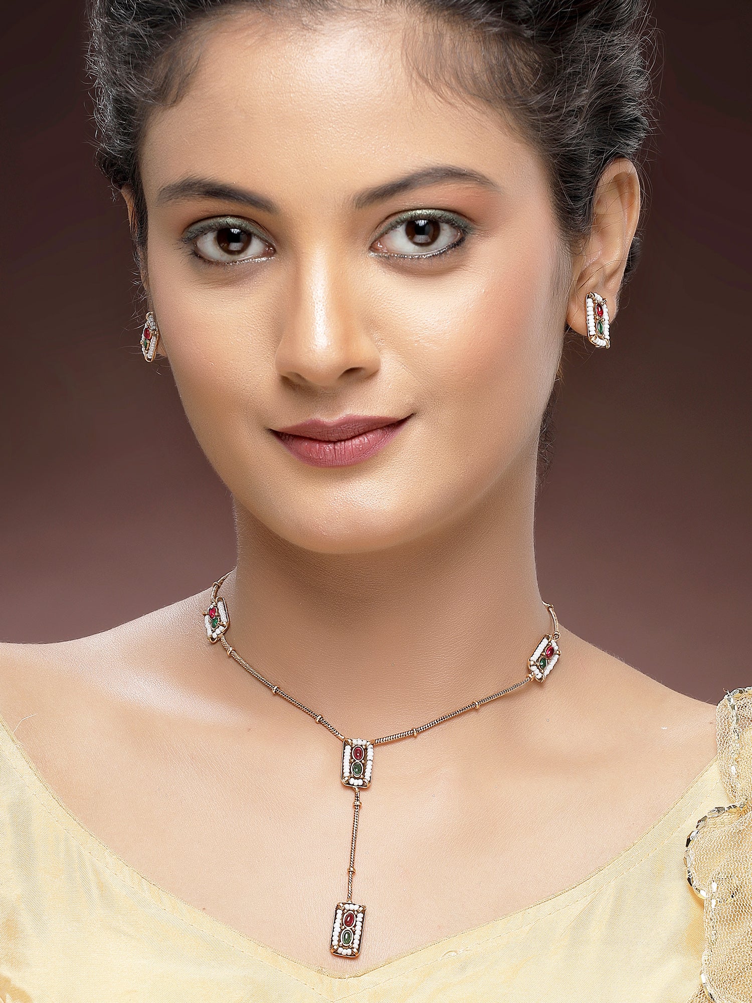 KARATCART Minimalist Gold-Plated Red and Green Stone Necklace Set for Women
