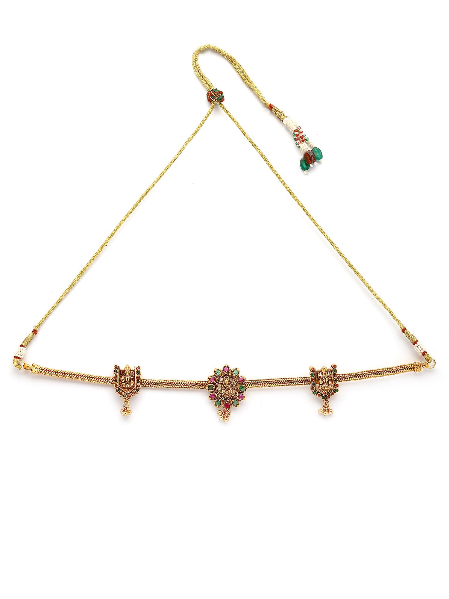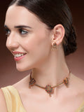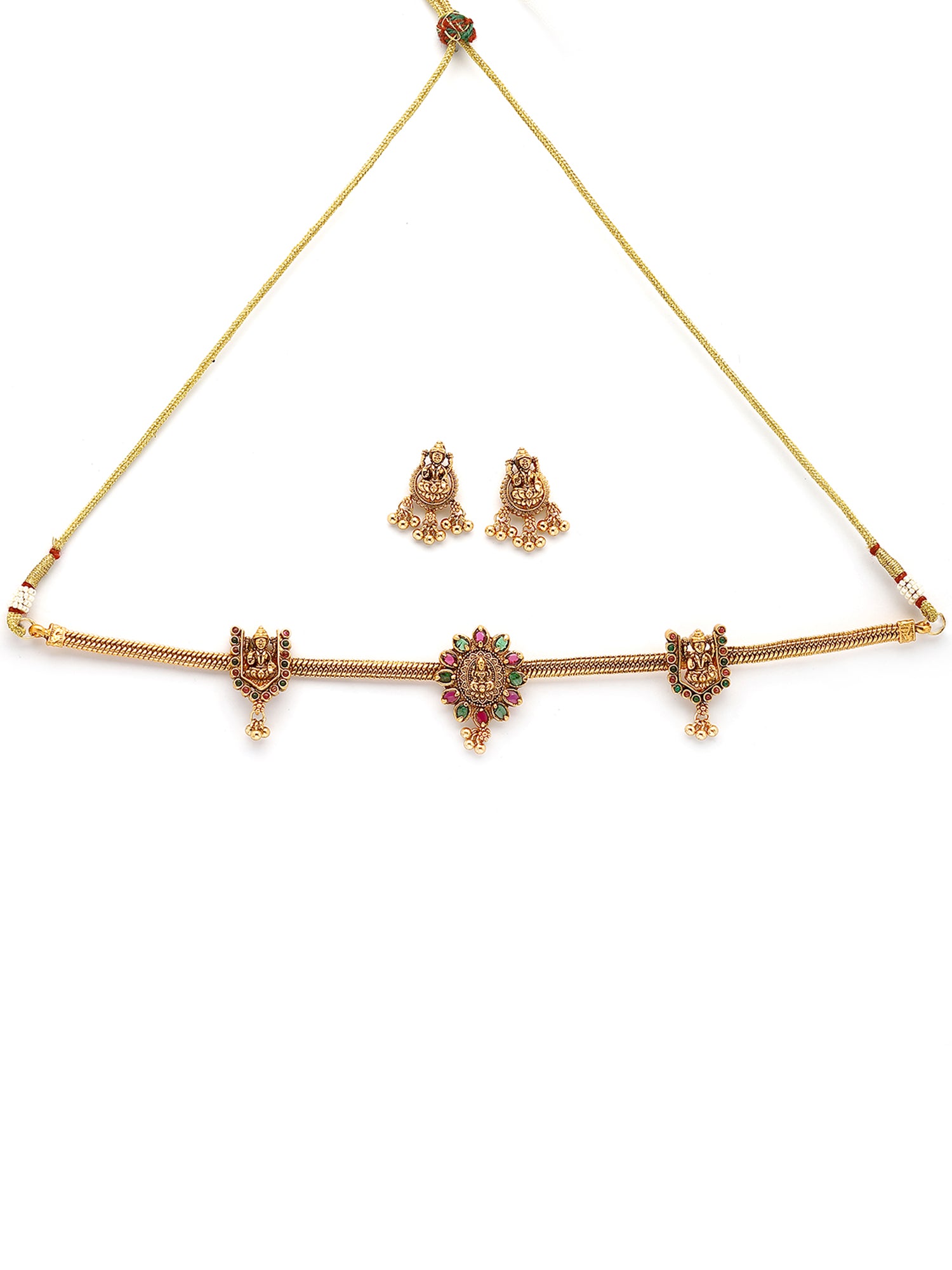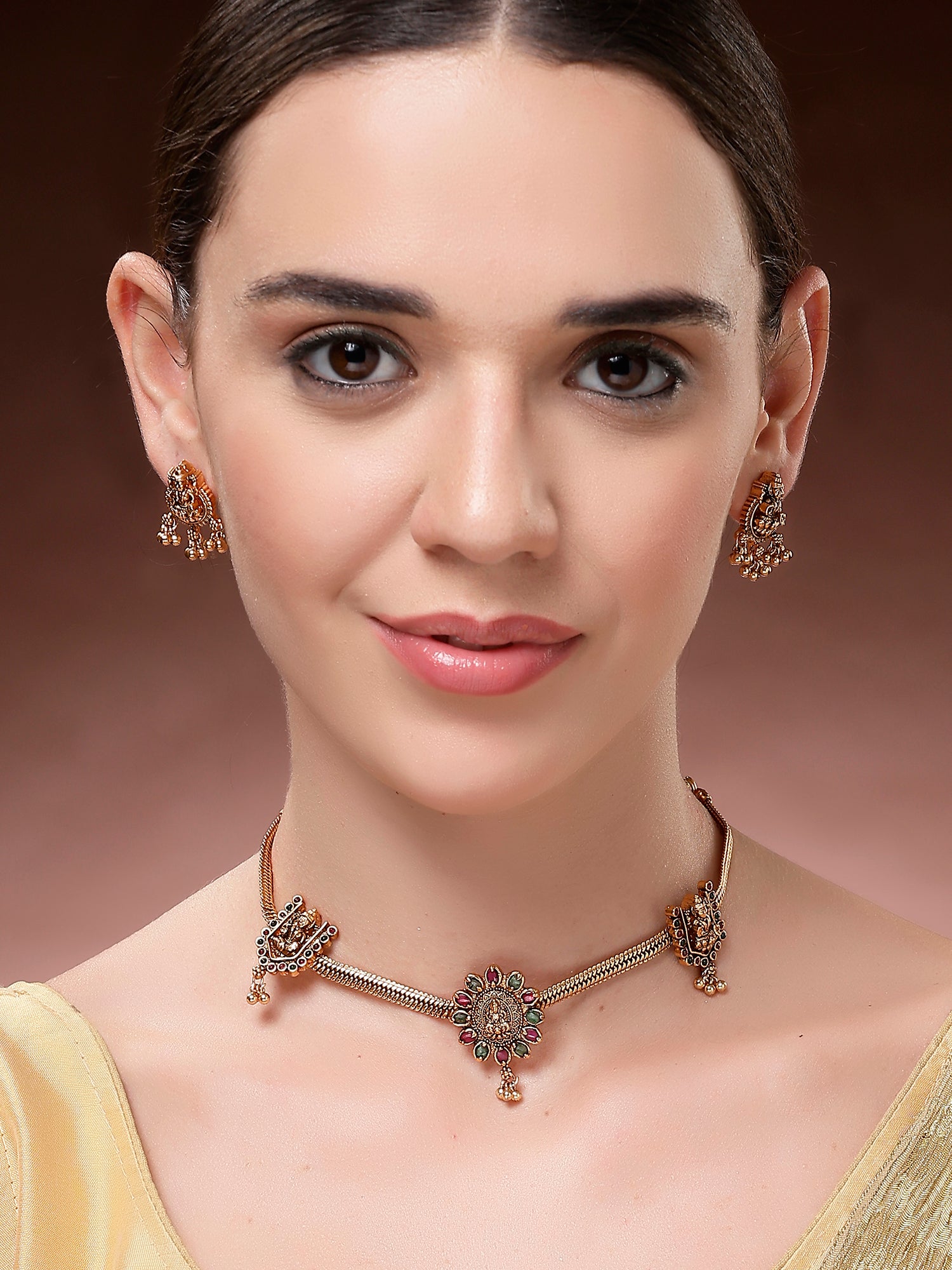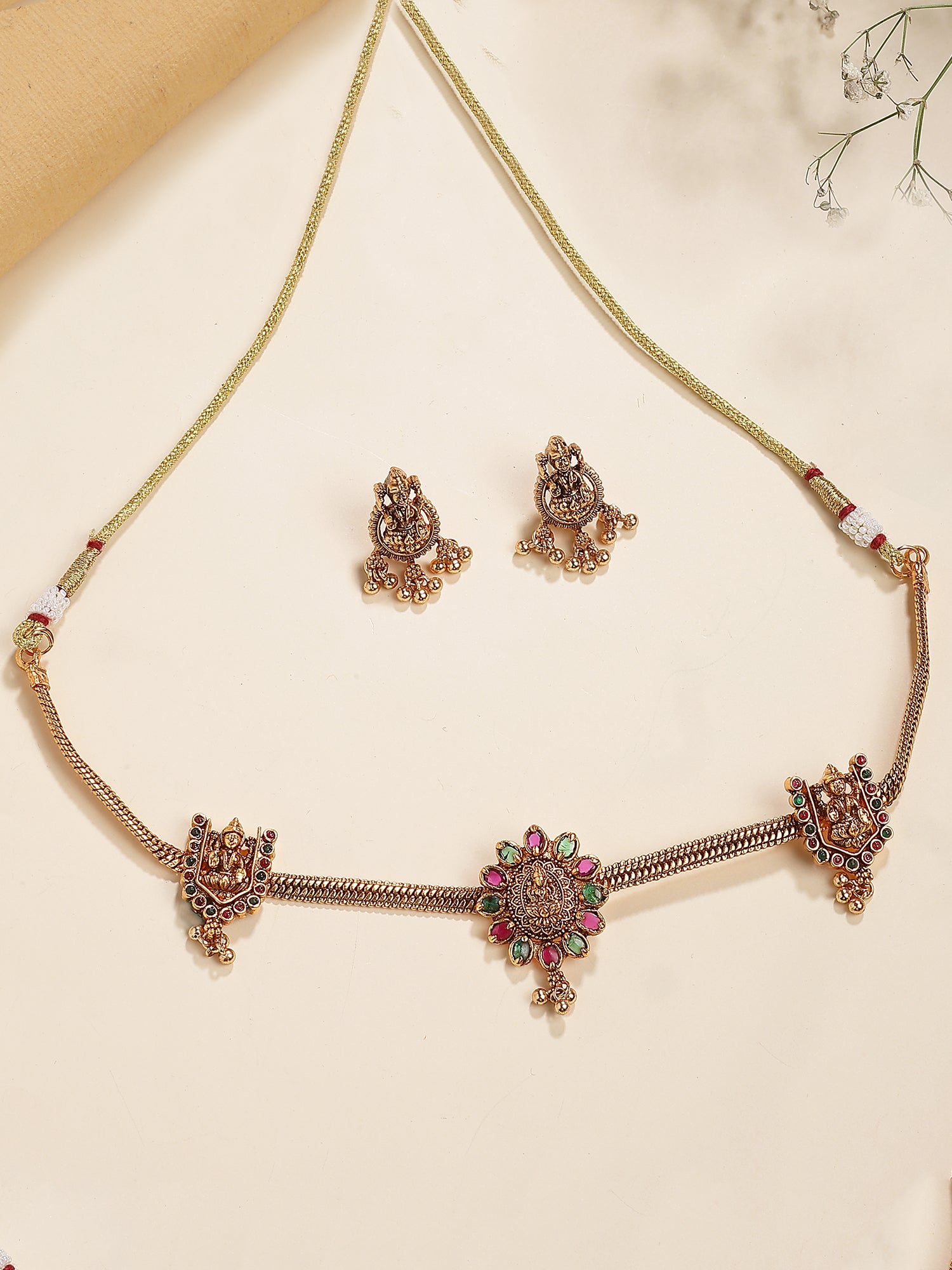 Karatcart Pink and Green Floral Shape Laxmi Mata Temple Choker Neckalce Set for Women