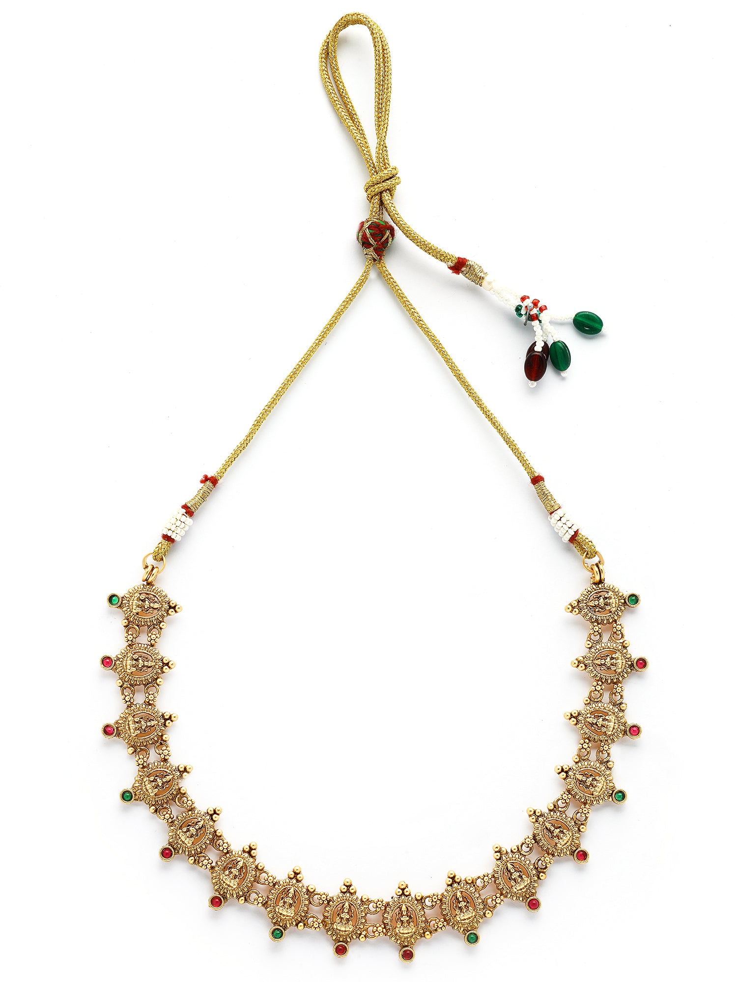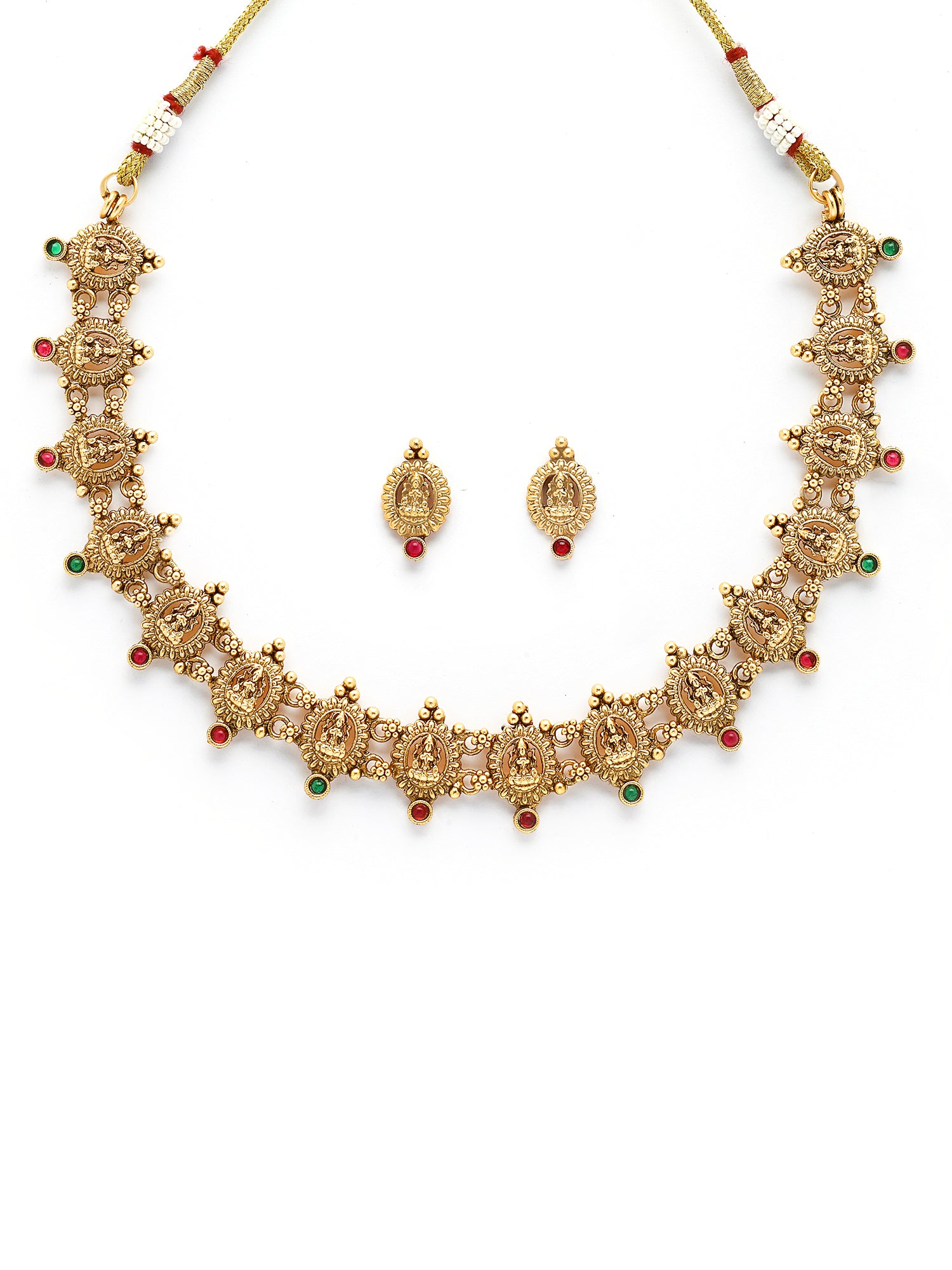 KARATCART Traditional Gold-Plated Laxmi Mata Coin Temple Jewellery Set for Women