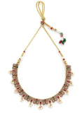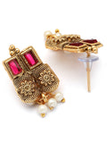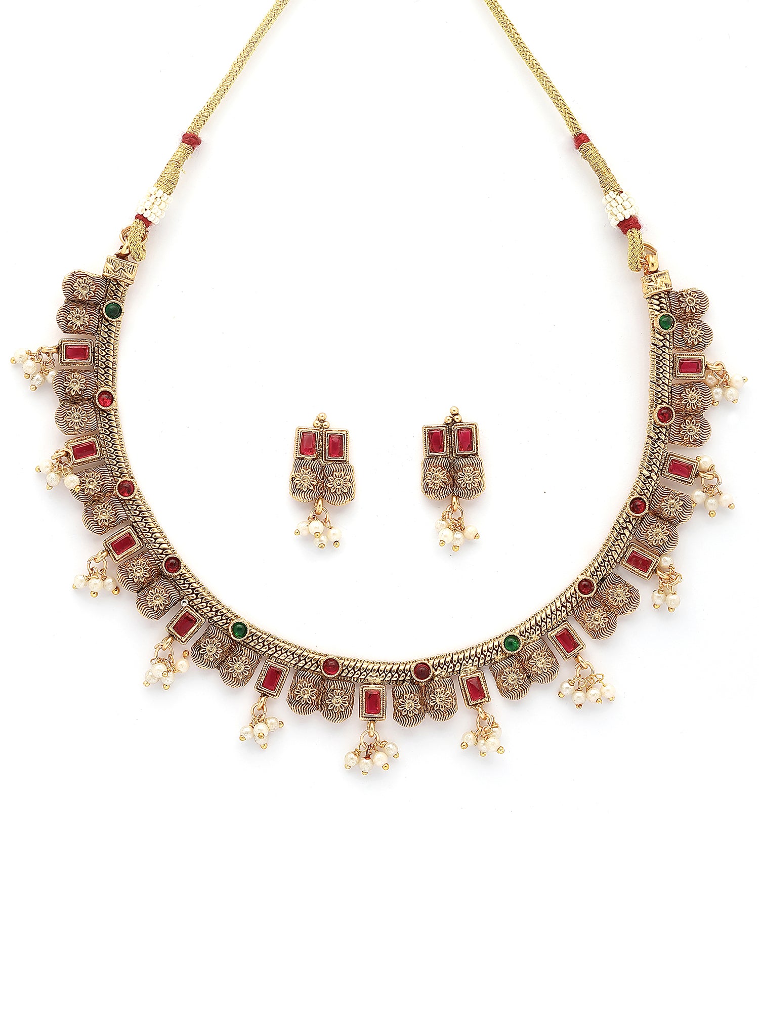 Karatcart Karatcart Gold Plated Red Stone Floral Design Temple Jewellery Necklace Set for Women