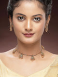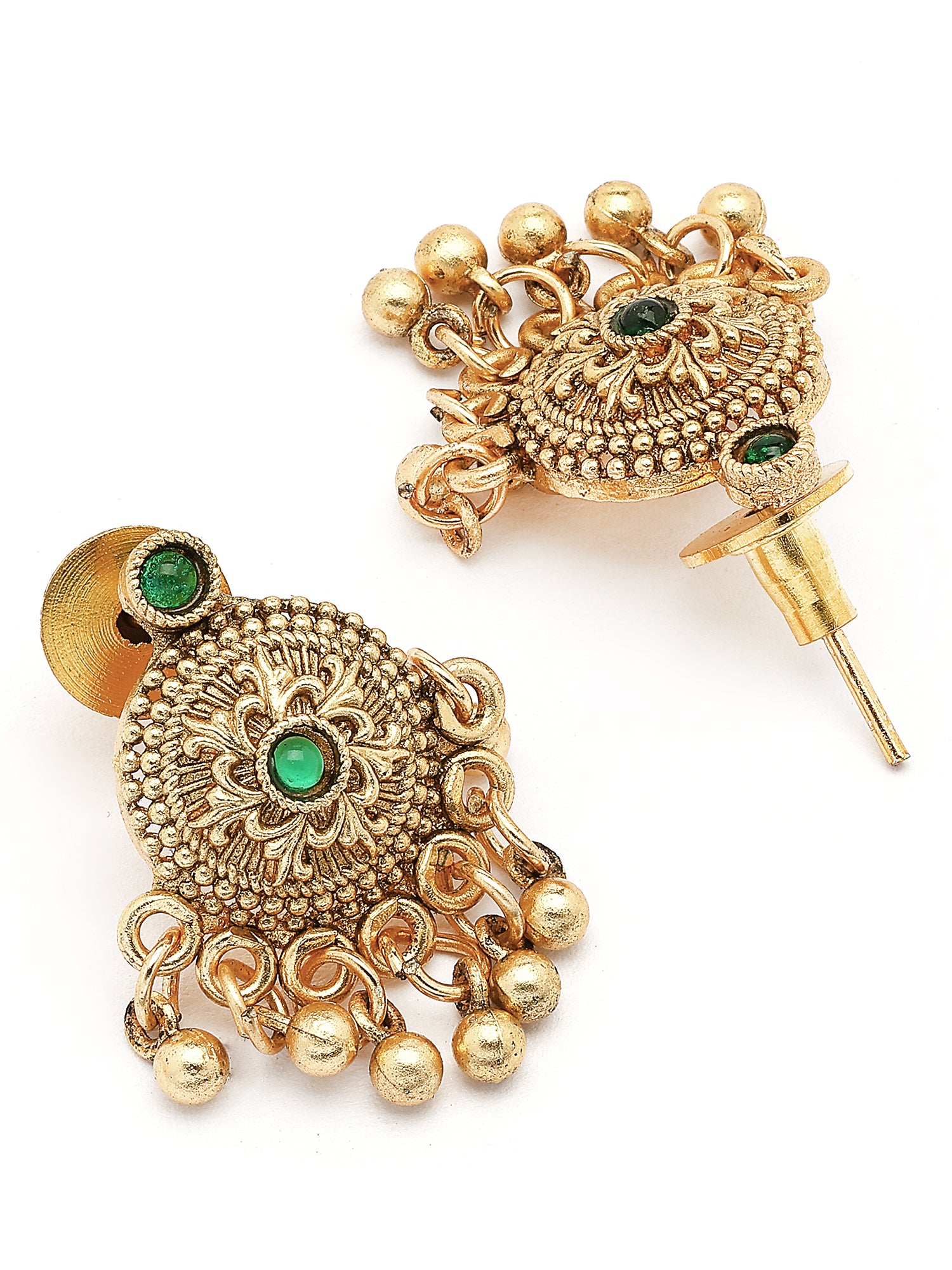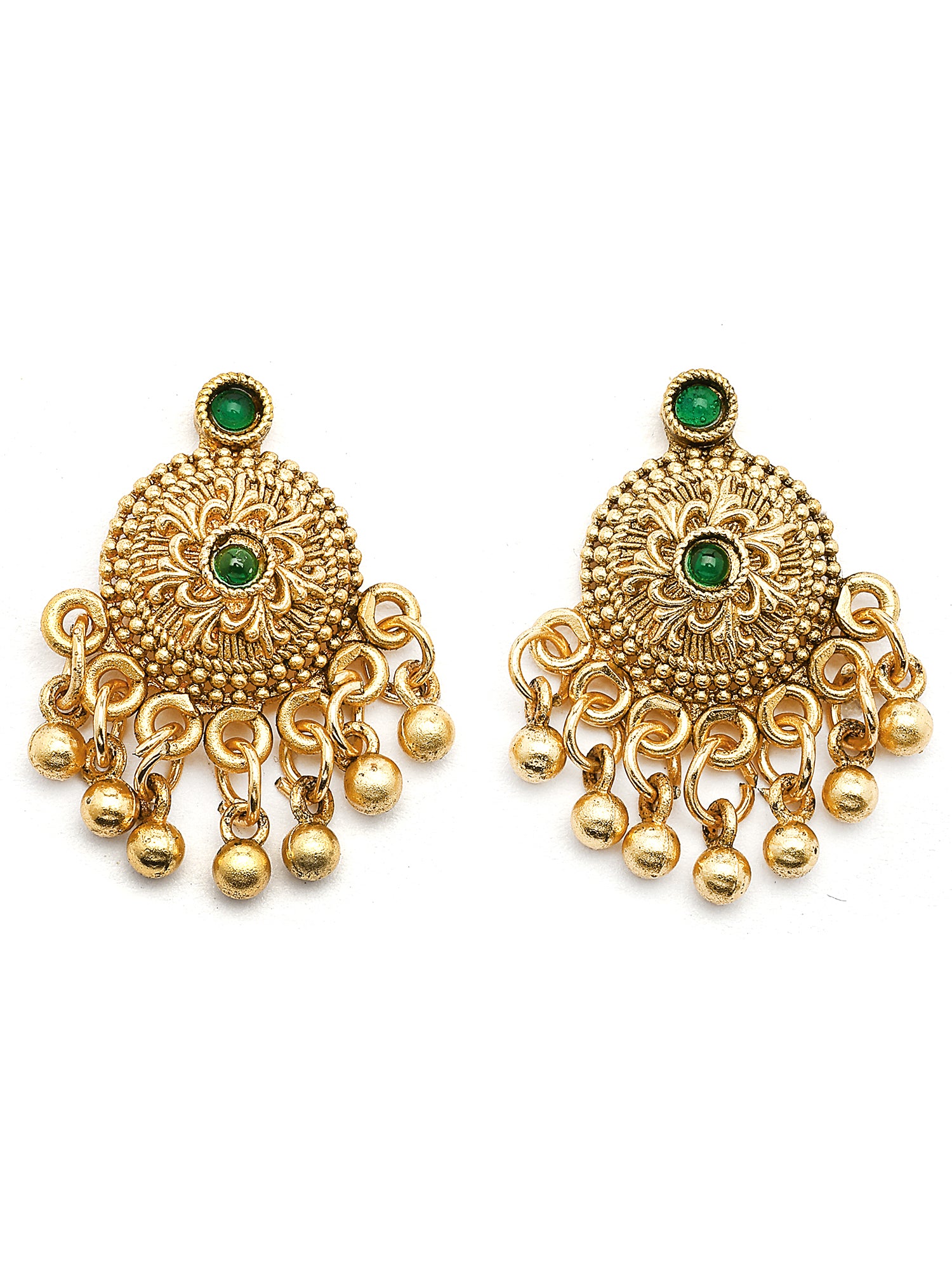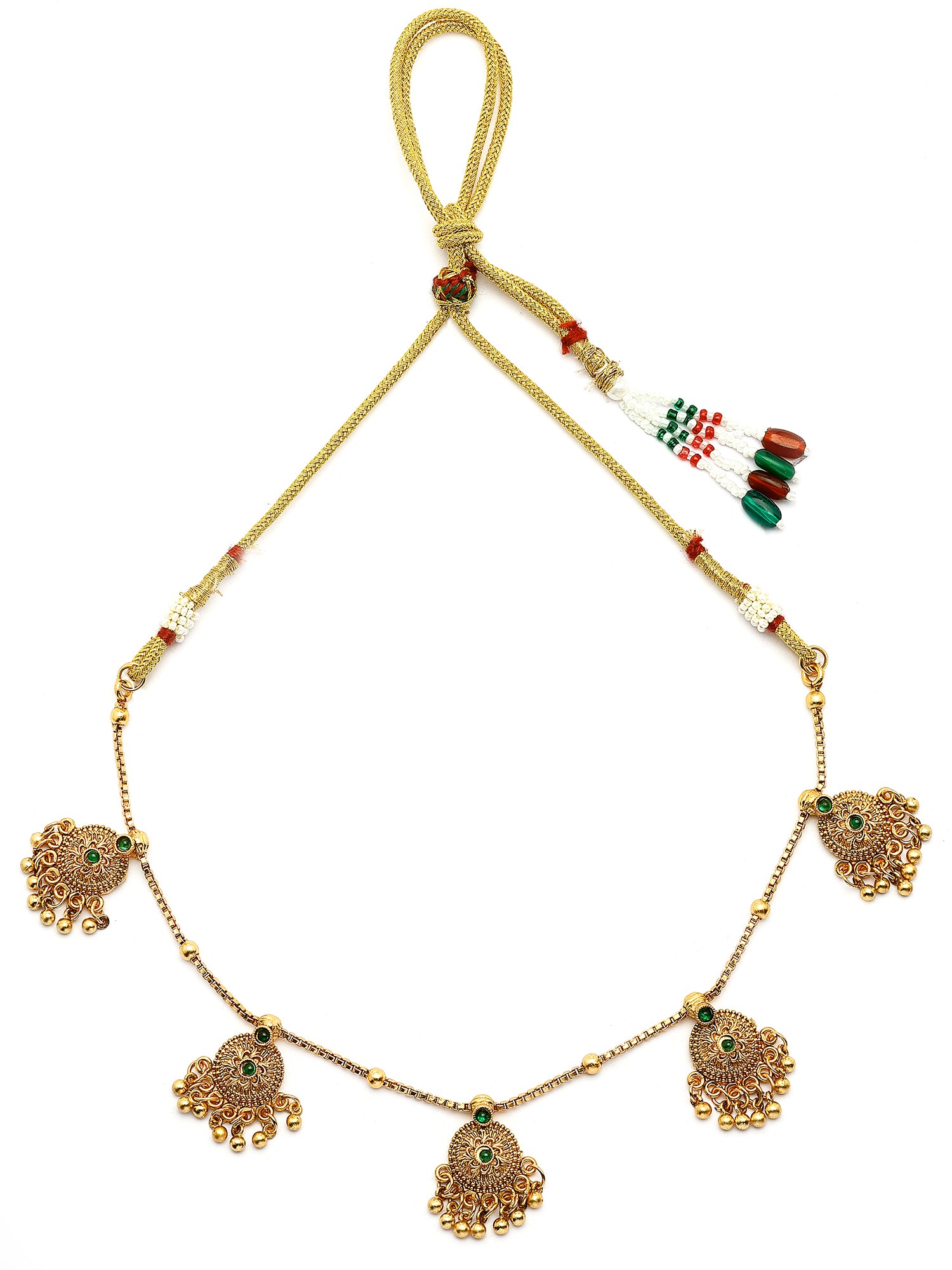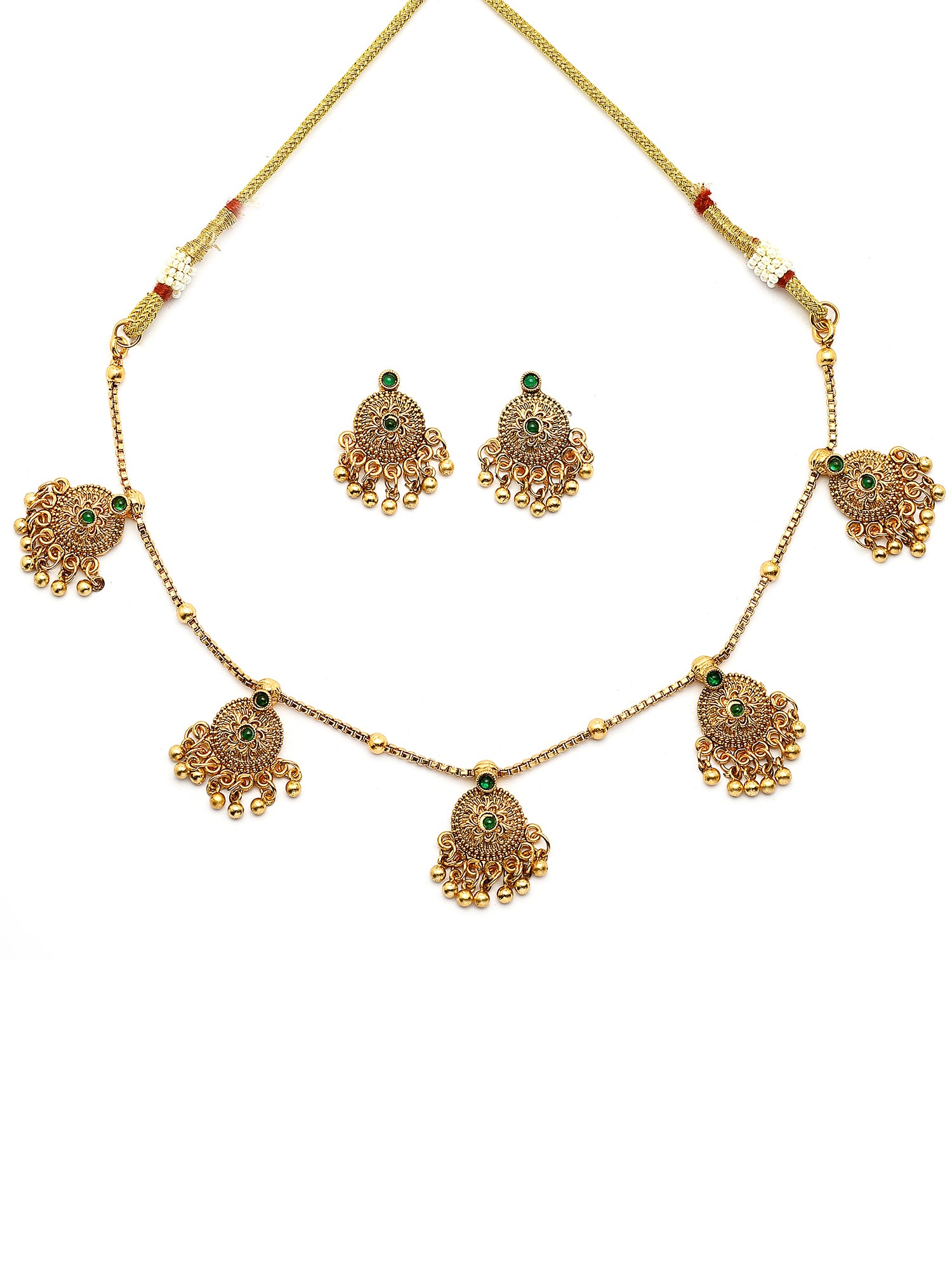 KARATCART Traditional Gold-Plated Green Stone Round Chakra Temple Jewellery Set for Women