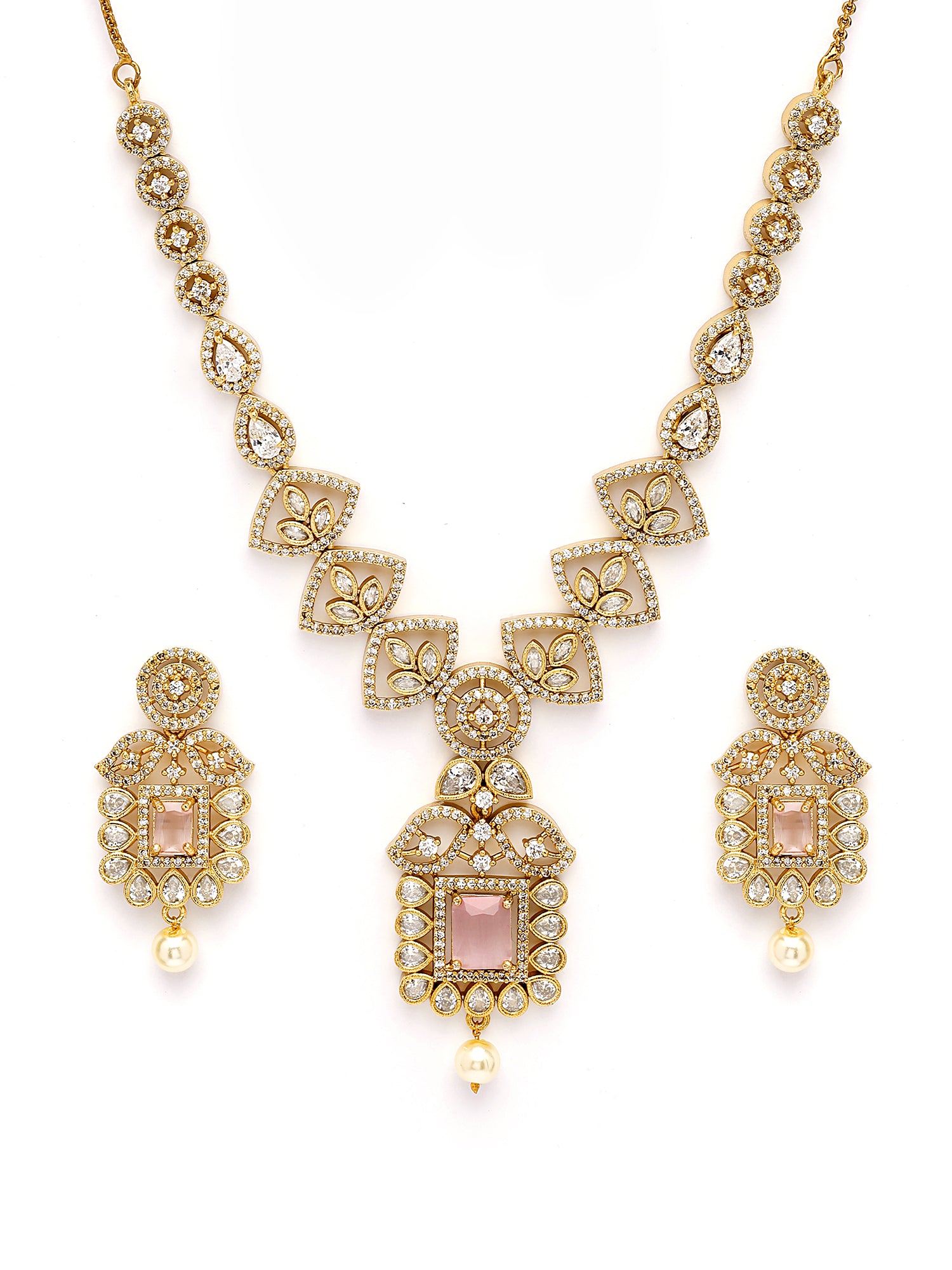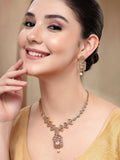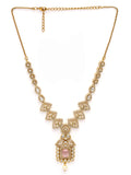 KARATCART Designer Gold Plated Pink American Diamond Necklace Set for Women