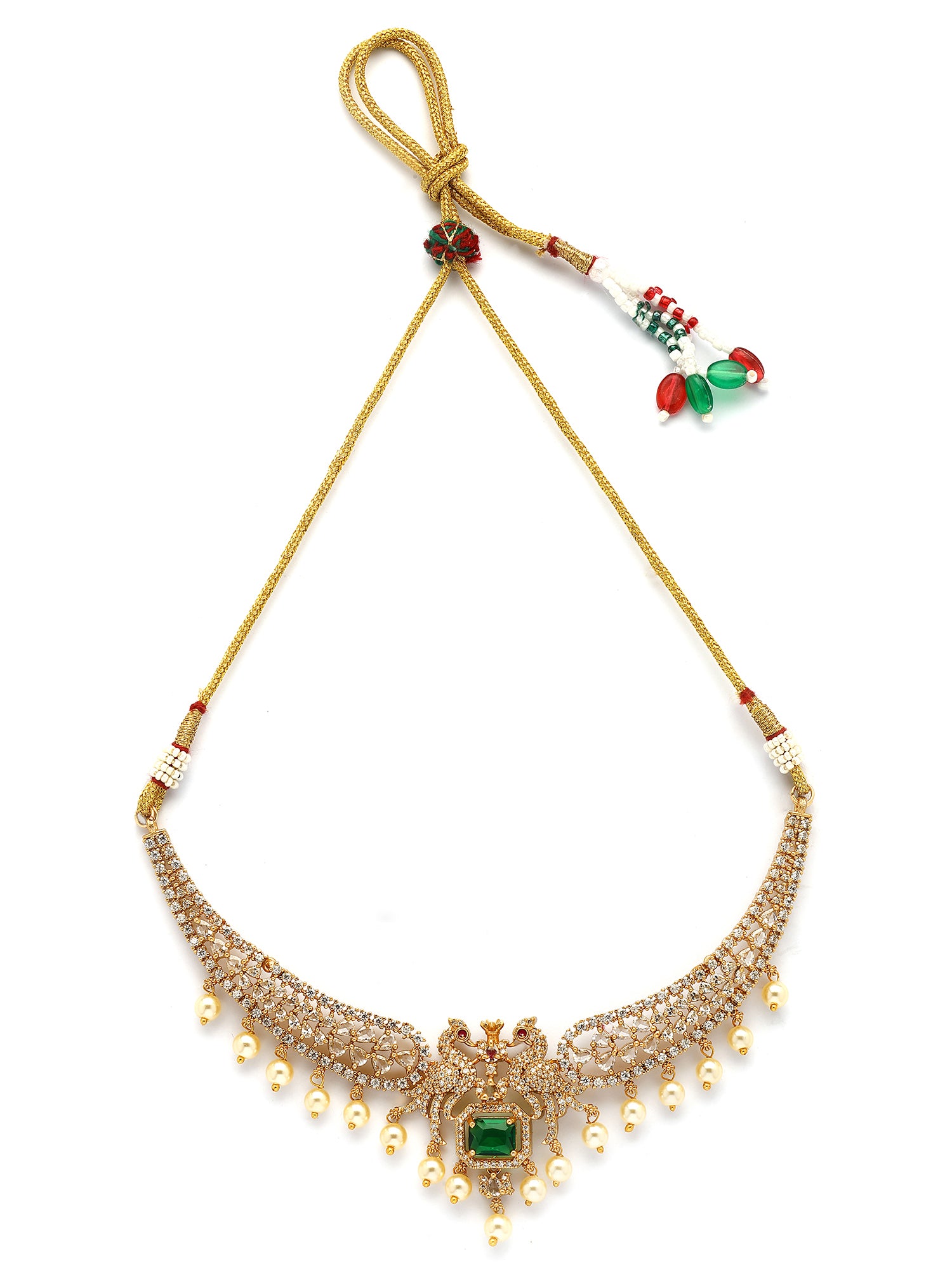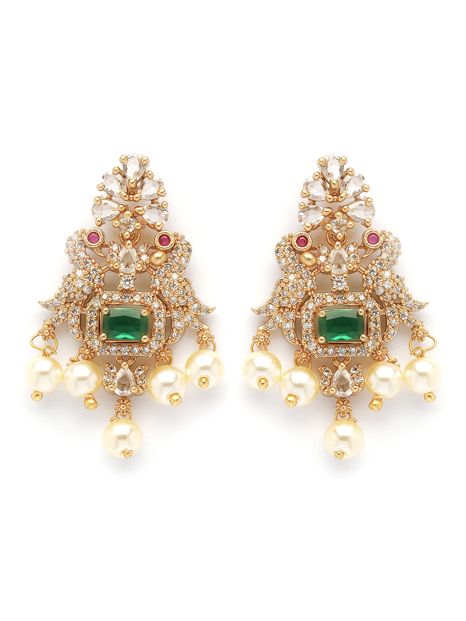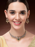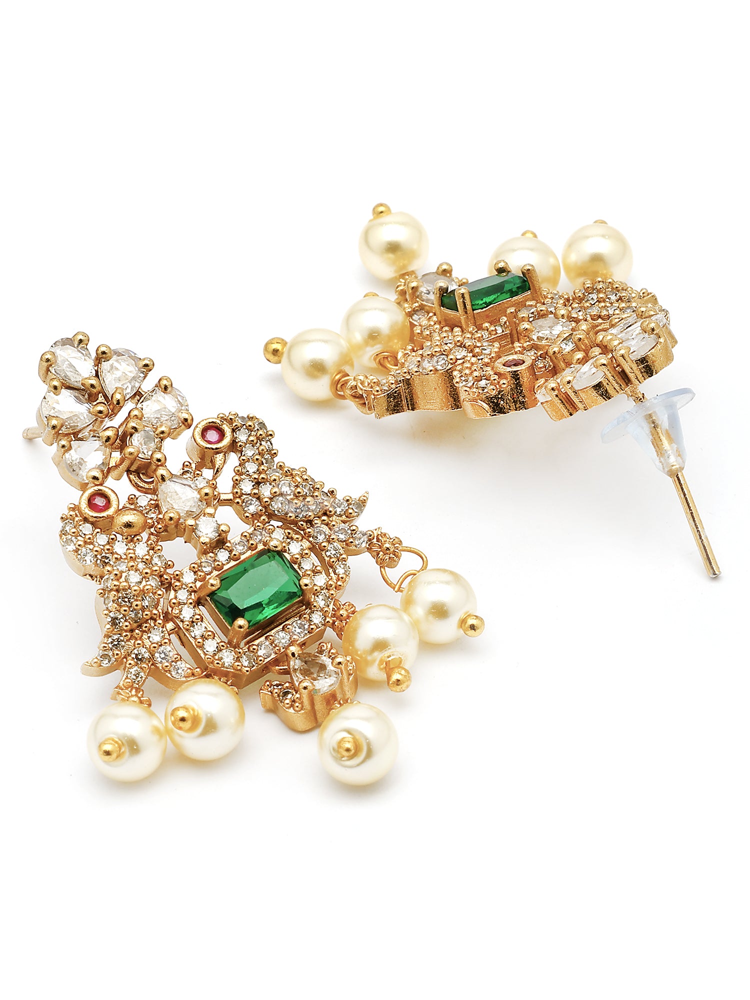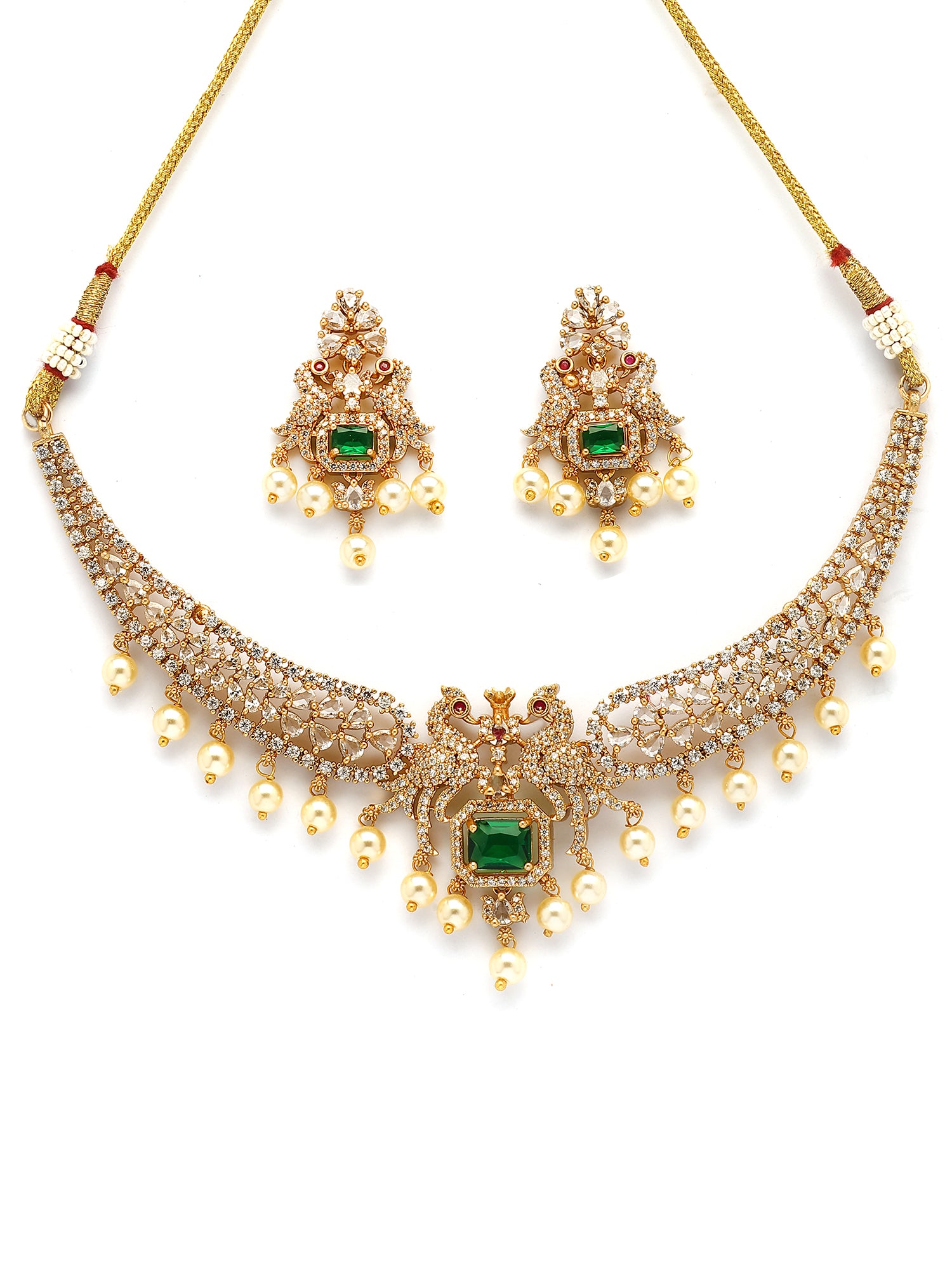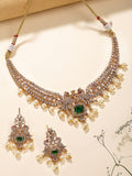 Karatcart Karatcart Royal Green American Diamond Temple Jewellery Set for Women