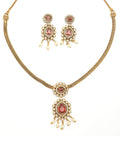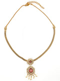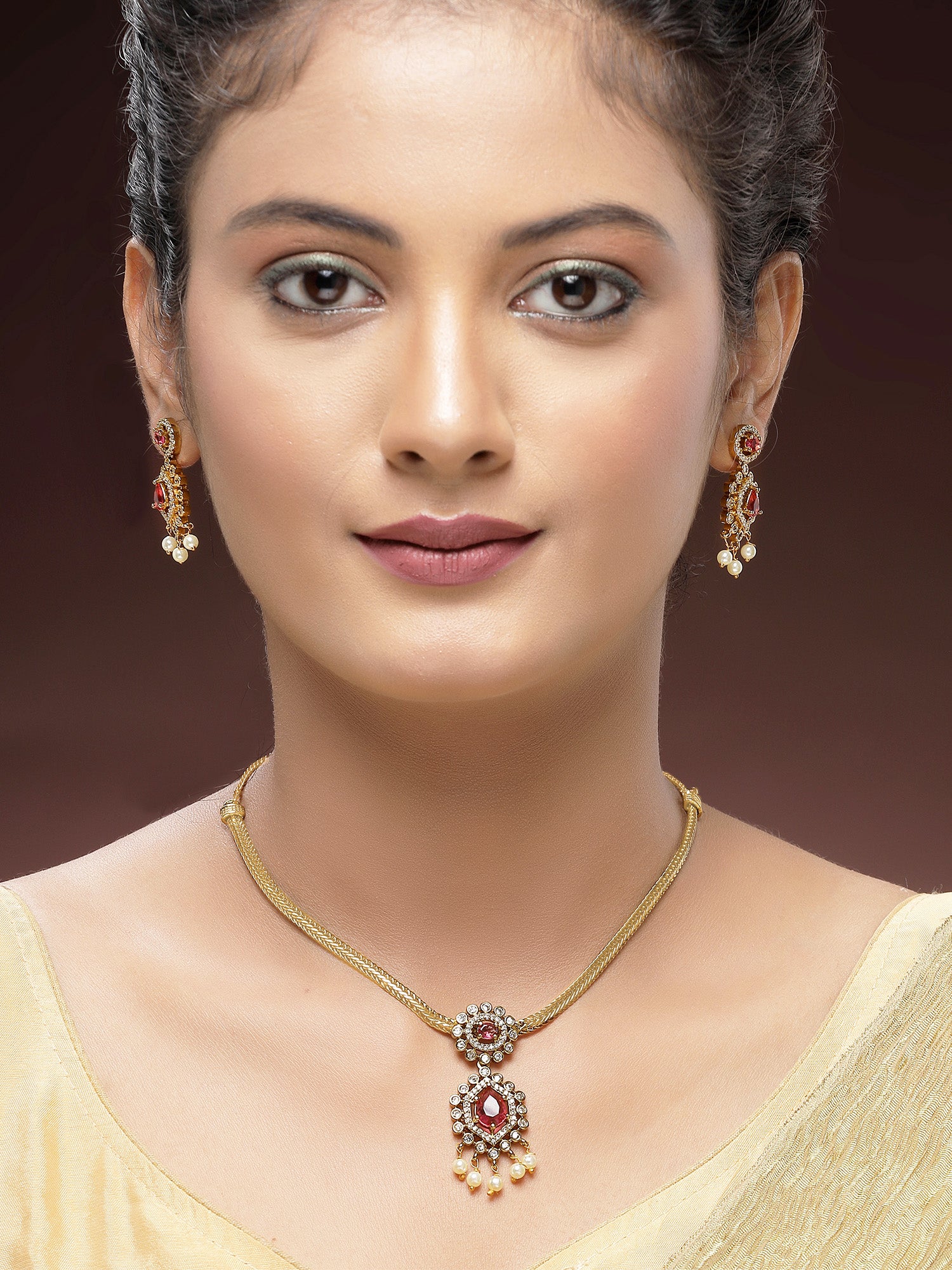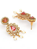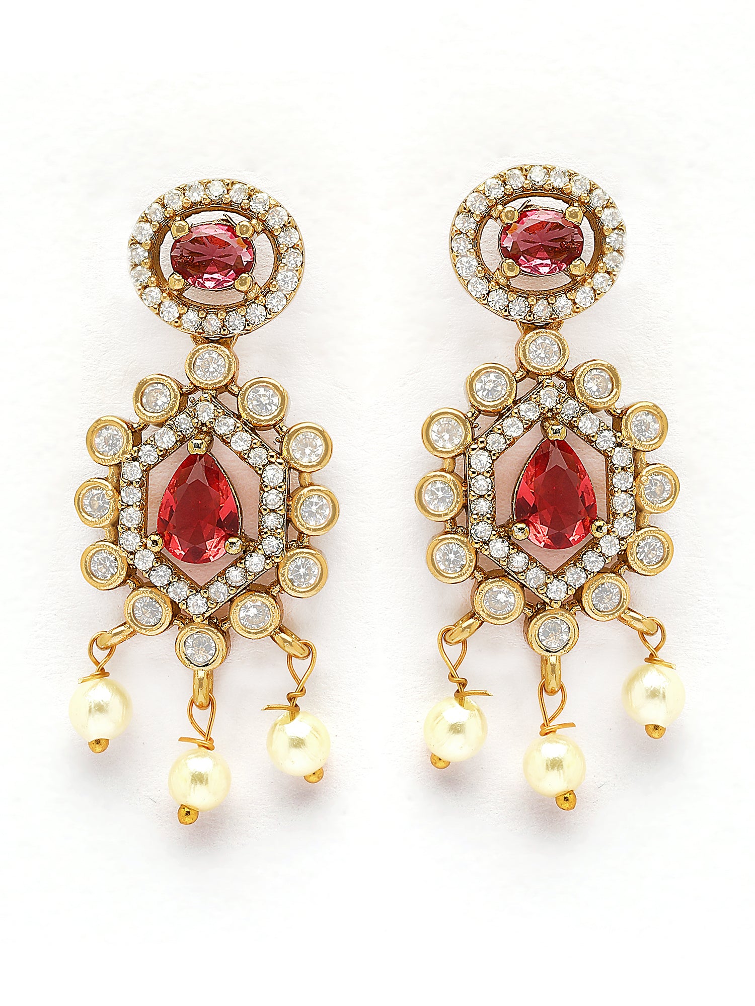KARATCART Elegant Gold-Plated Red Drop American Diamond and Pearl Jewellery Set for Women