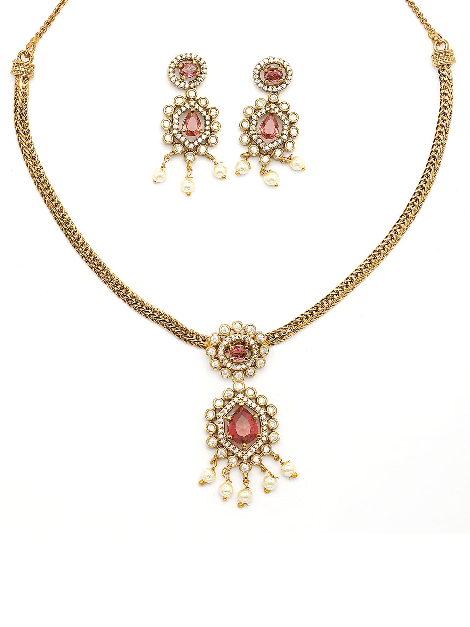 - This is a Pink Jewellery Set by Brand Karatcart which has American Diamond and Pearl stones. This is Gold Plated. We at KARATCART understand your desire to look the best on any day & we thrive in making any day an occasion. Every individual at Karatcart carries a passion for jewellery and it reflects in our beautiful designs as well as in our breathtaking craftsmanship. We create unique jewellery so you can make heads turn.