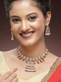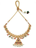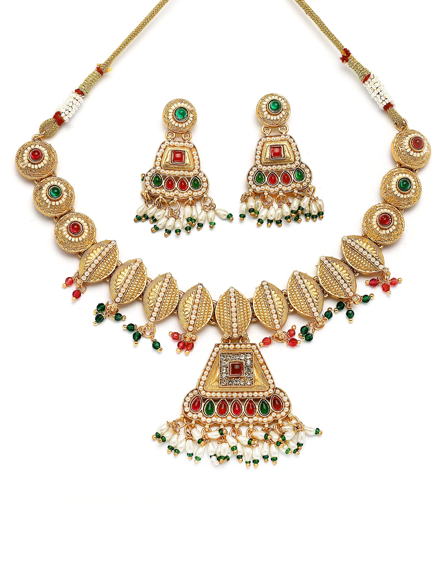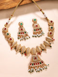 KARATCART Designer Gold-Plated Red and Green Crystal Choker Necklace Set for Women
