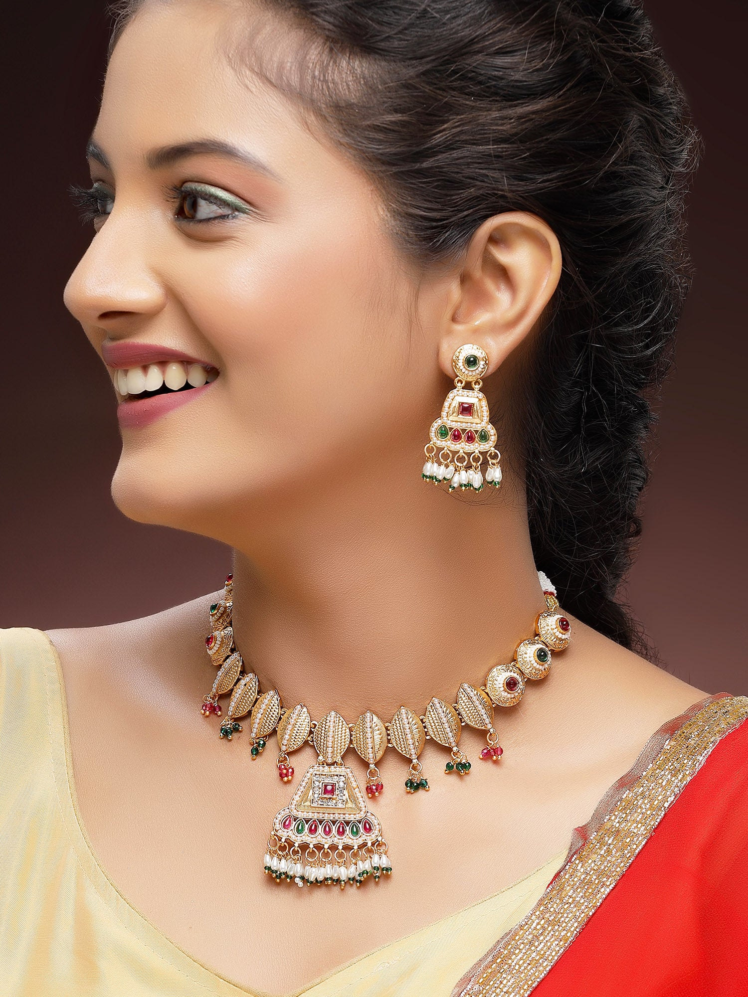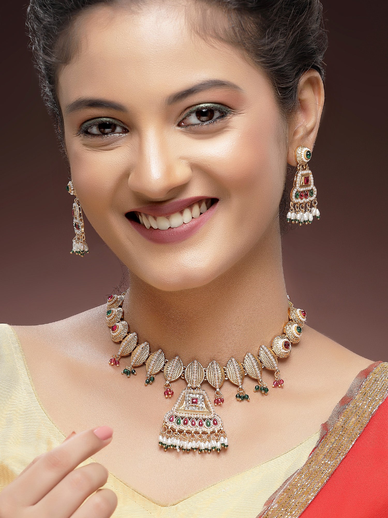 Gracefully pair our jewellery with sarees, kurtis, or any Indo-western outfit to enhance your look for weddings, parties, festivals, and traditional occasions. With Karatcart Jewellery, you're guaranteed to receive compliments wherever you go. Experience luxury gifting like never before with our exquisite collection.