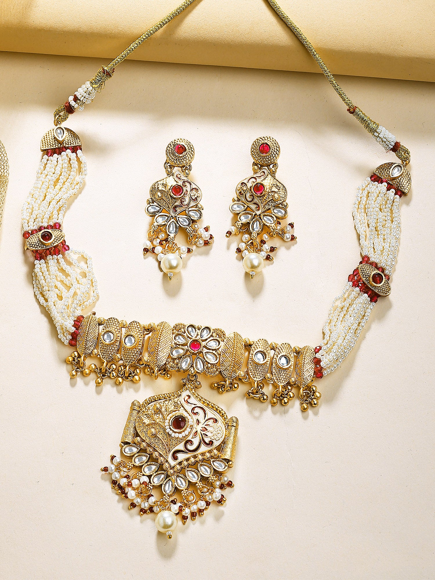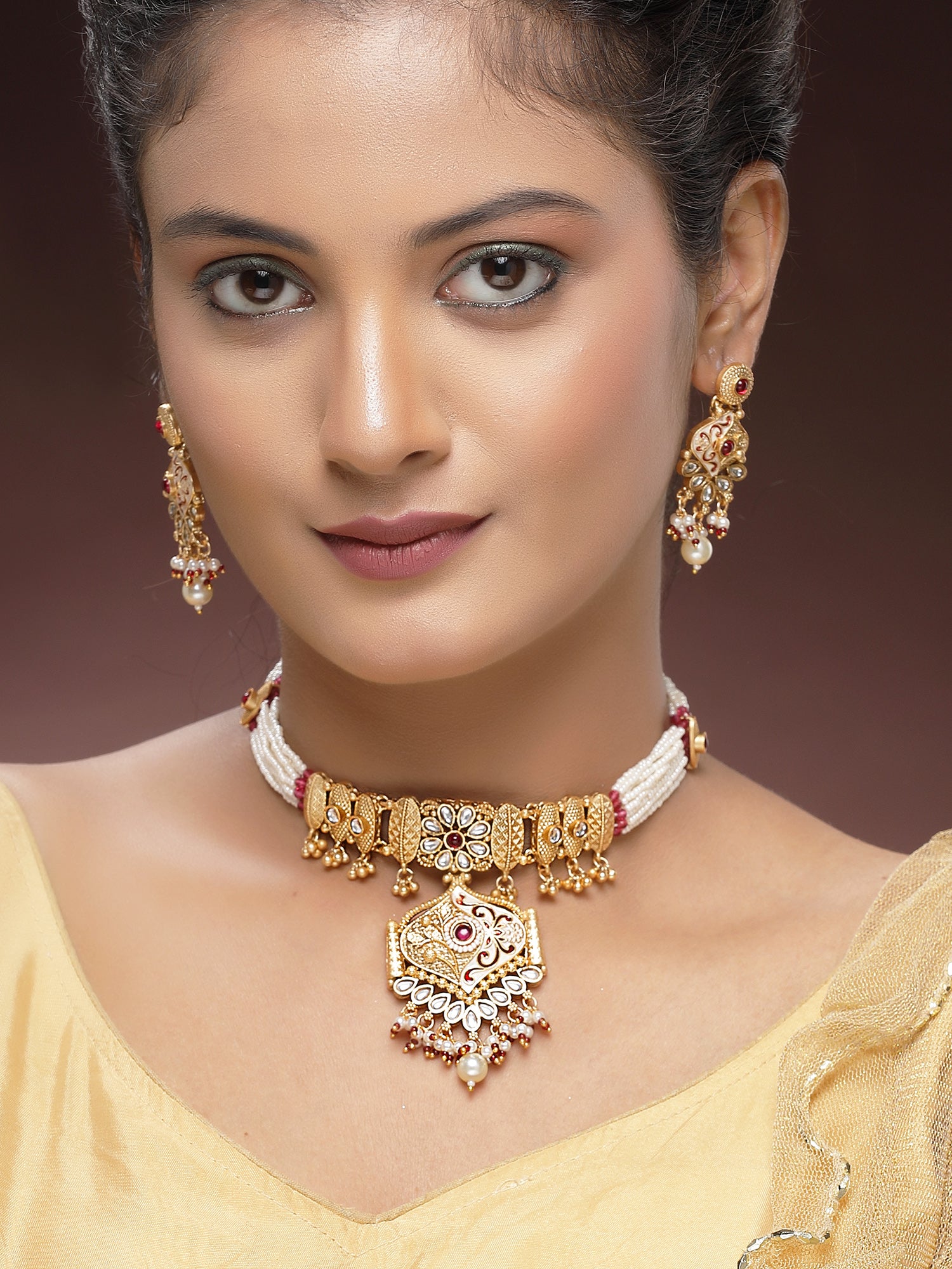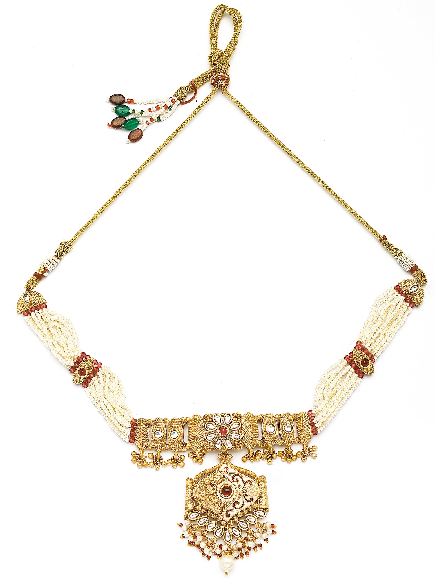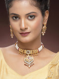KARATCART Elegant Gold-Plated Red Kundan Floral Choker Necklace Set for Women