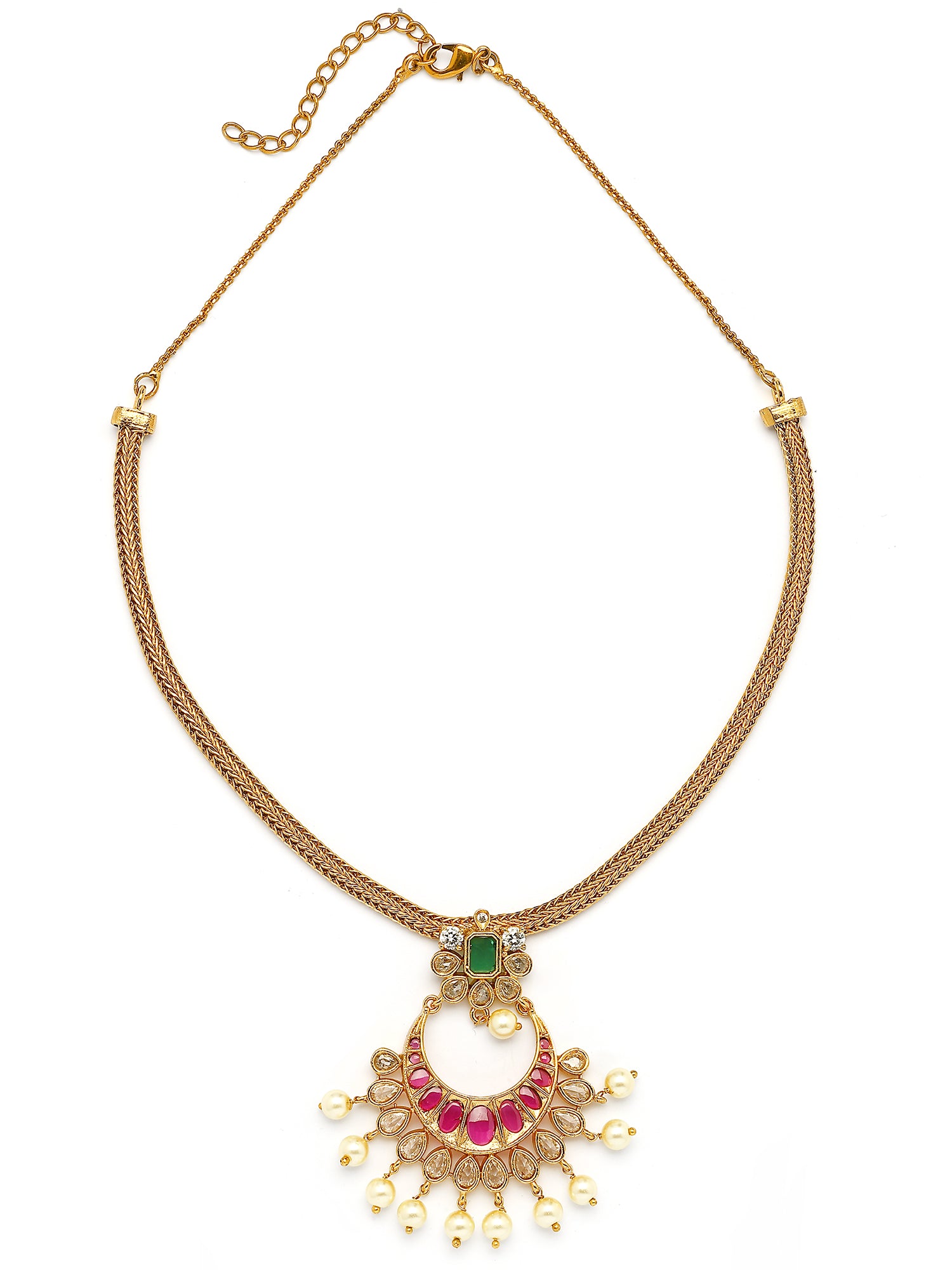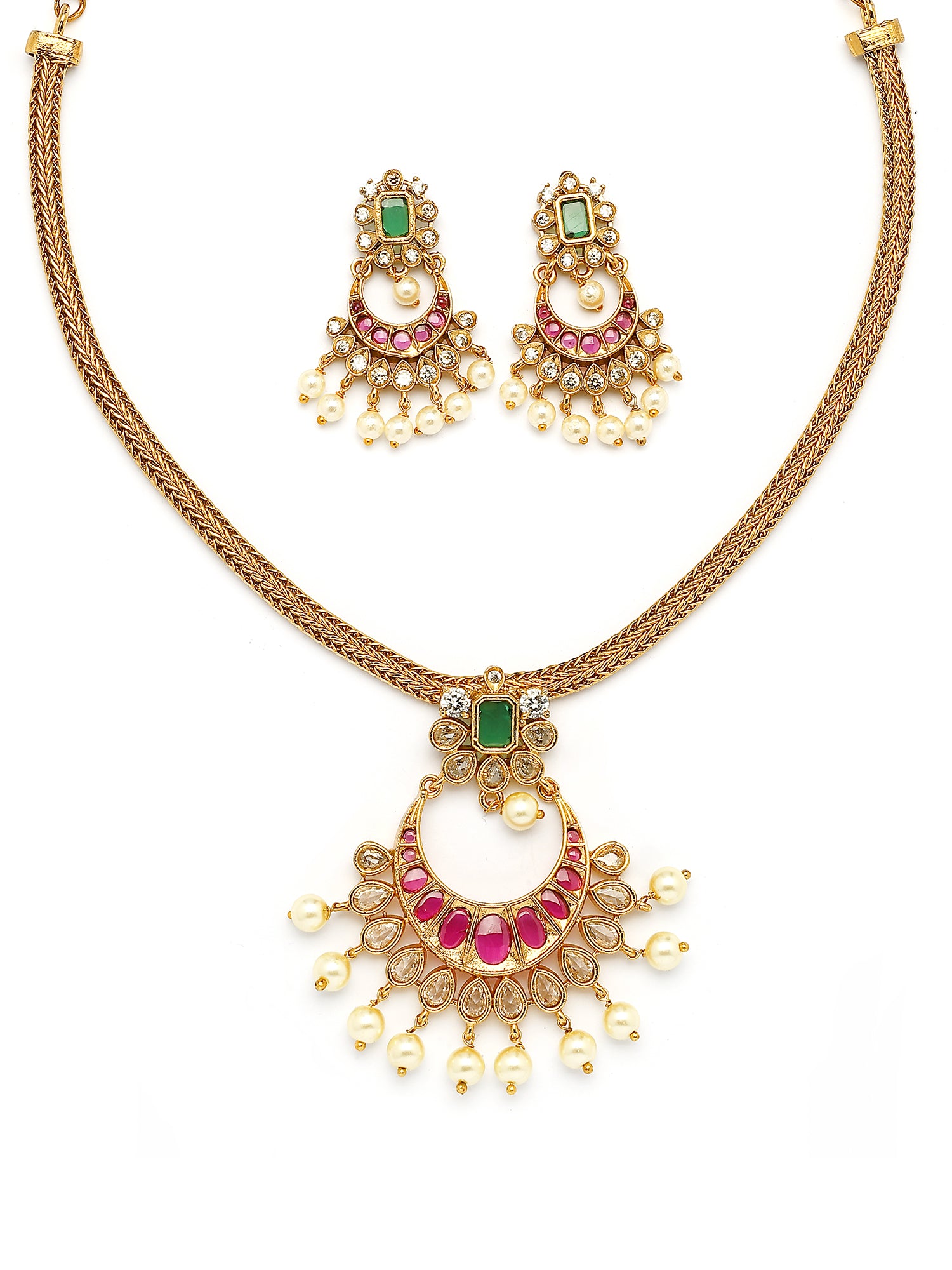 KARATCART Elegant Gold Plated Red and Green Stone Jewellery Set for Women