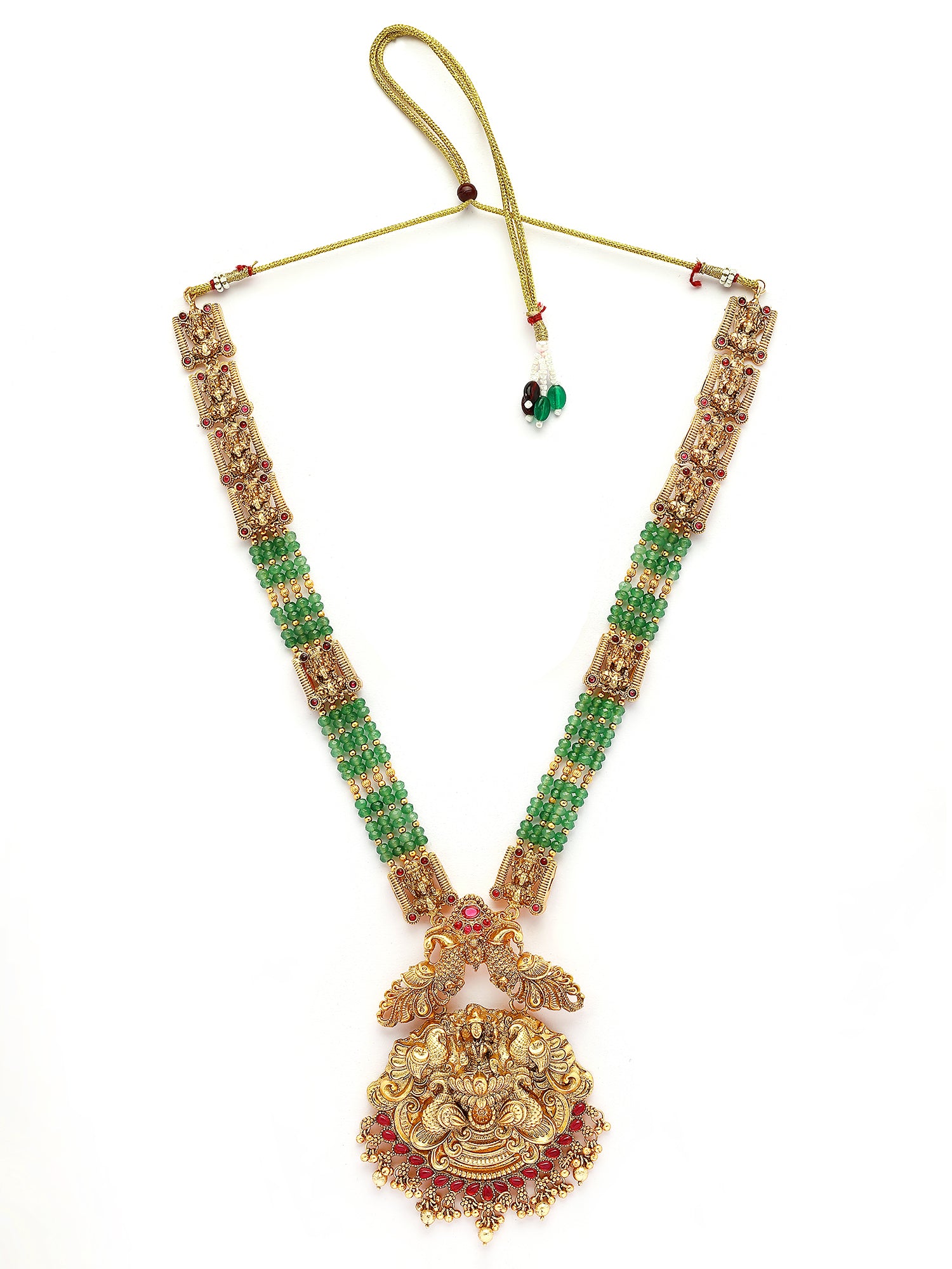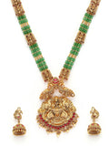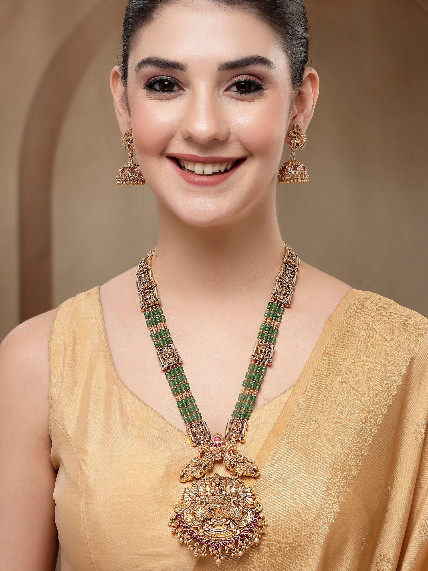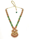 KARATCART Traditional Gold Plated Green Crystal Laxmi Mata Rani Haar Temple Jewellery Set