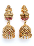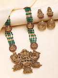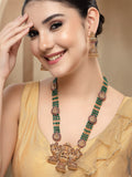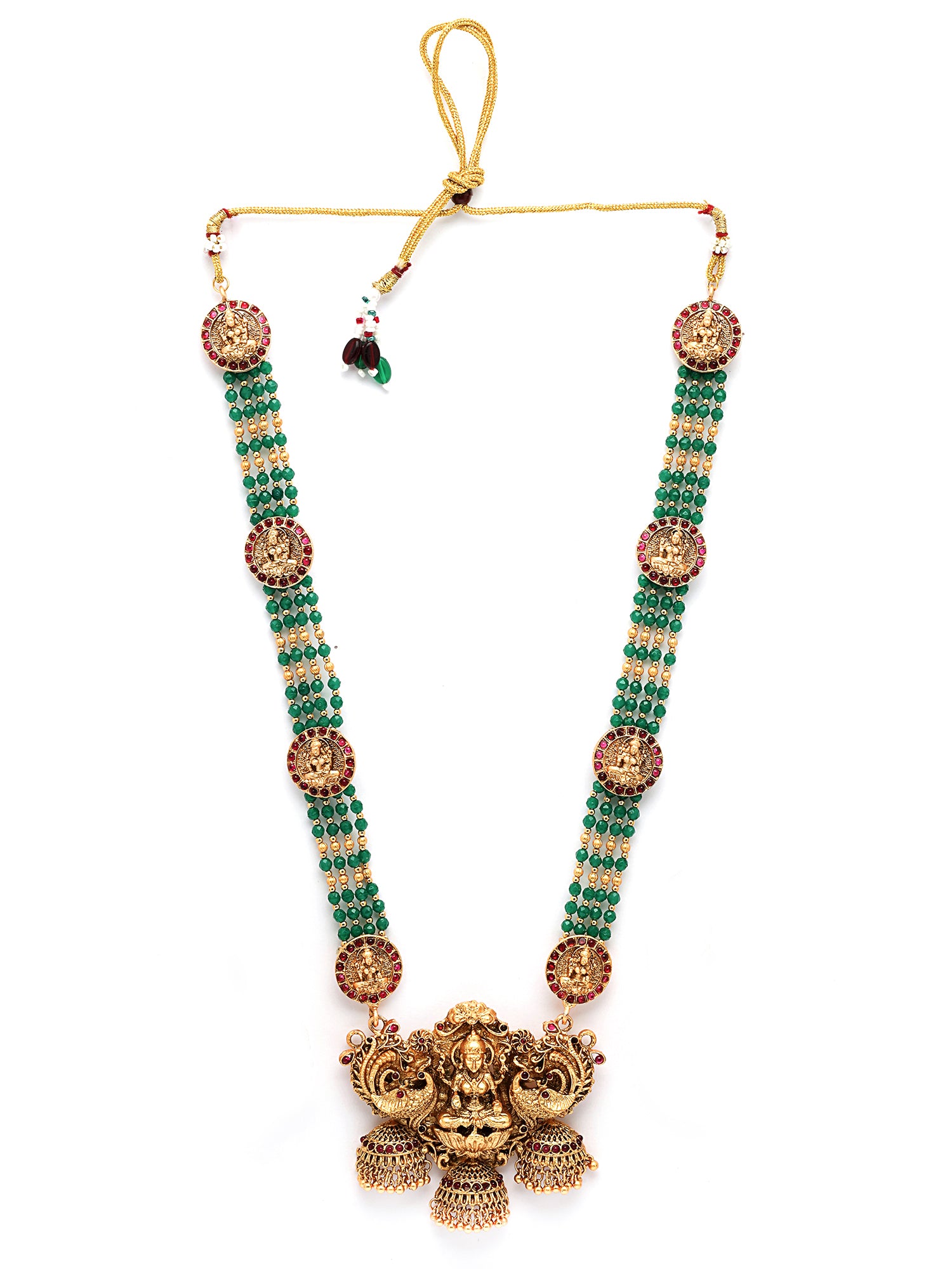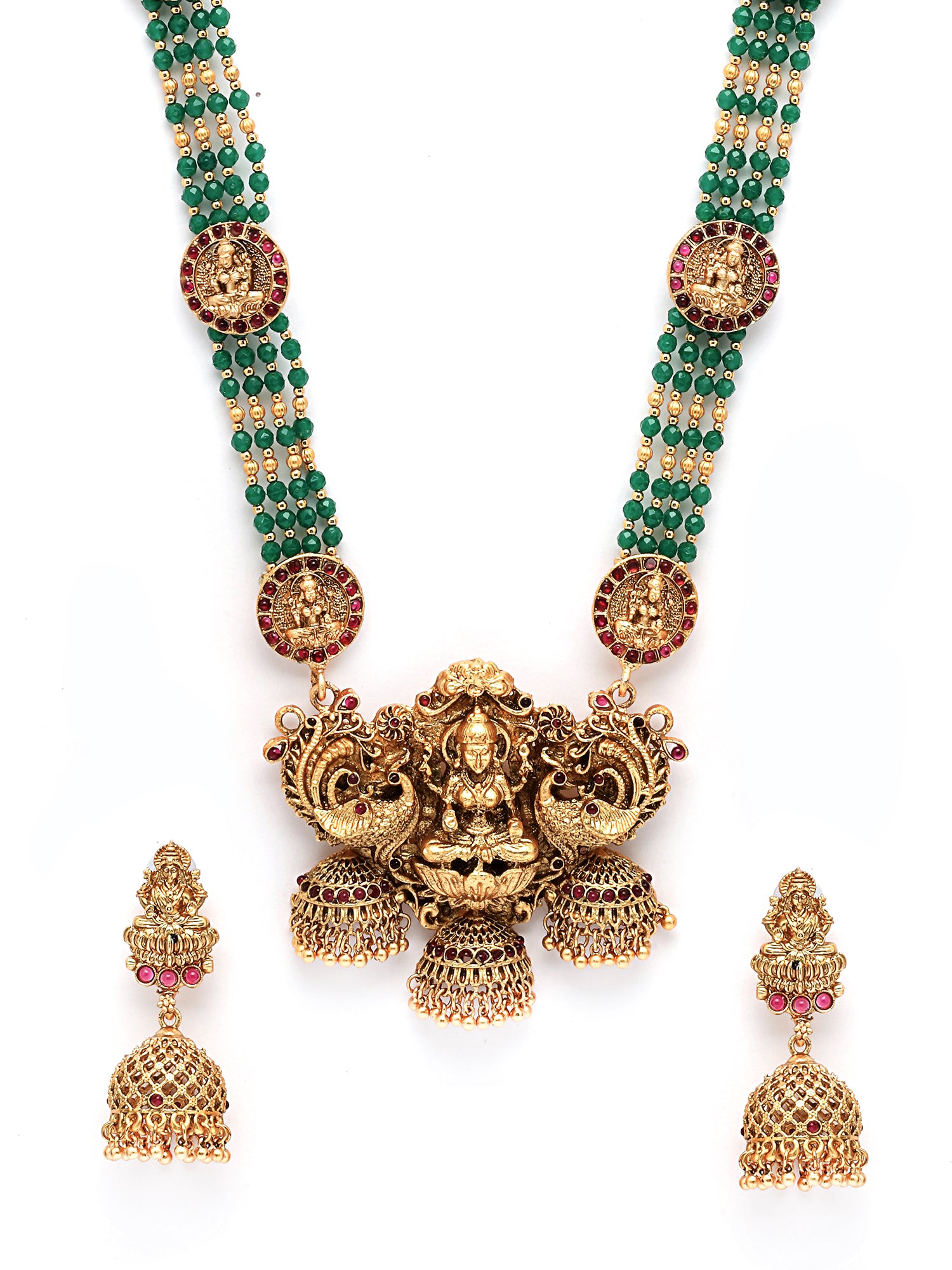 KARATCART Traditional Gold Plated Green Crystal Beaded Lakshmi Mata Rani Haar Necklace Set