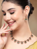 KARATCART Gold-Plated American Diamond Classic Green Jewellery Set for Women