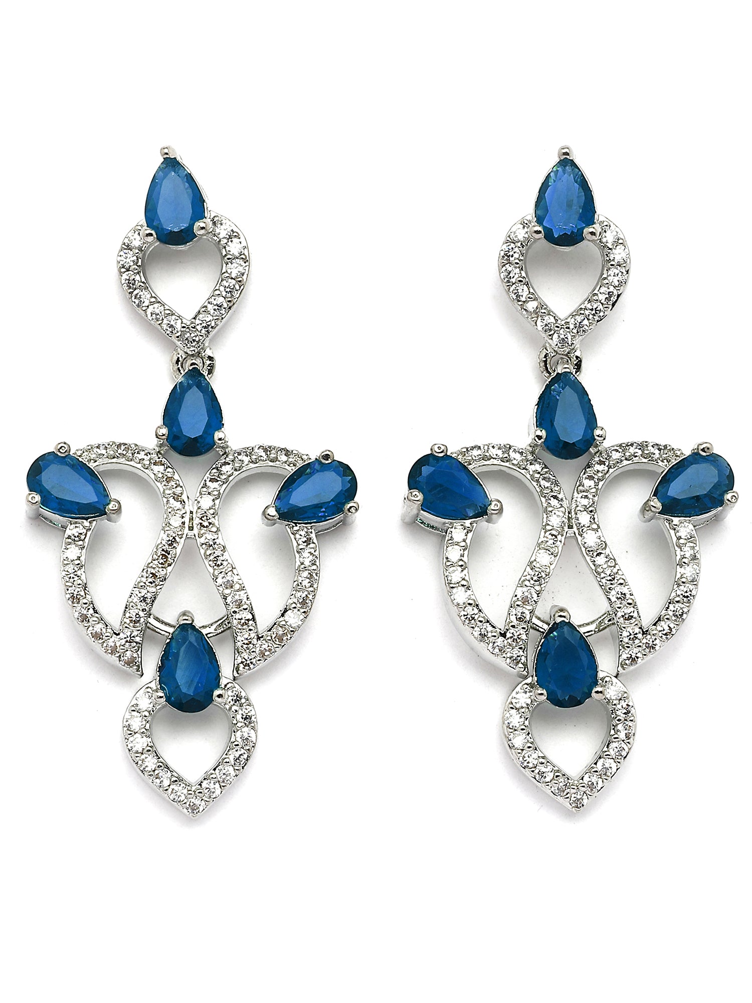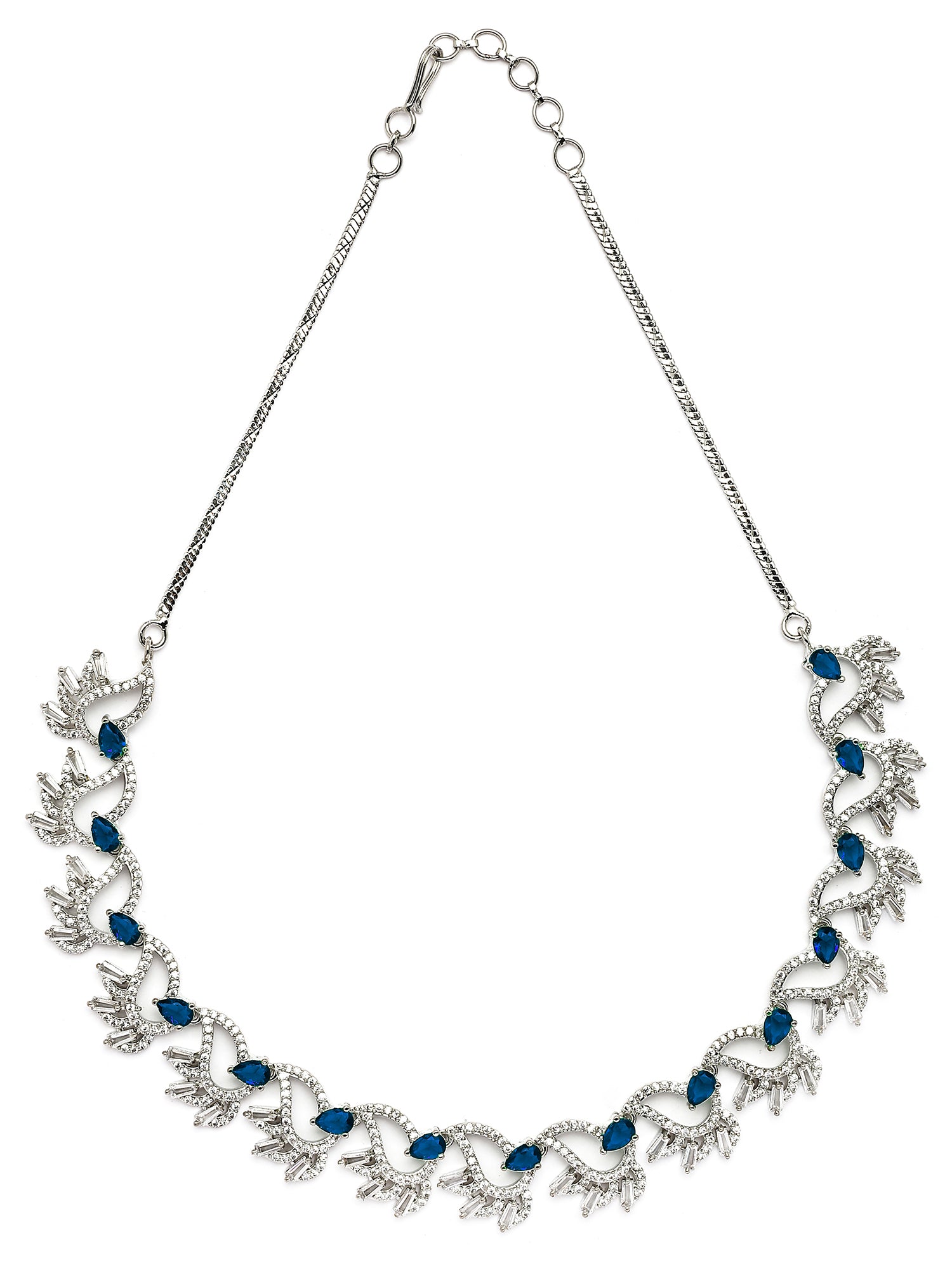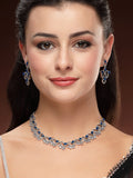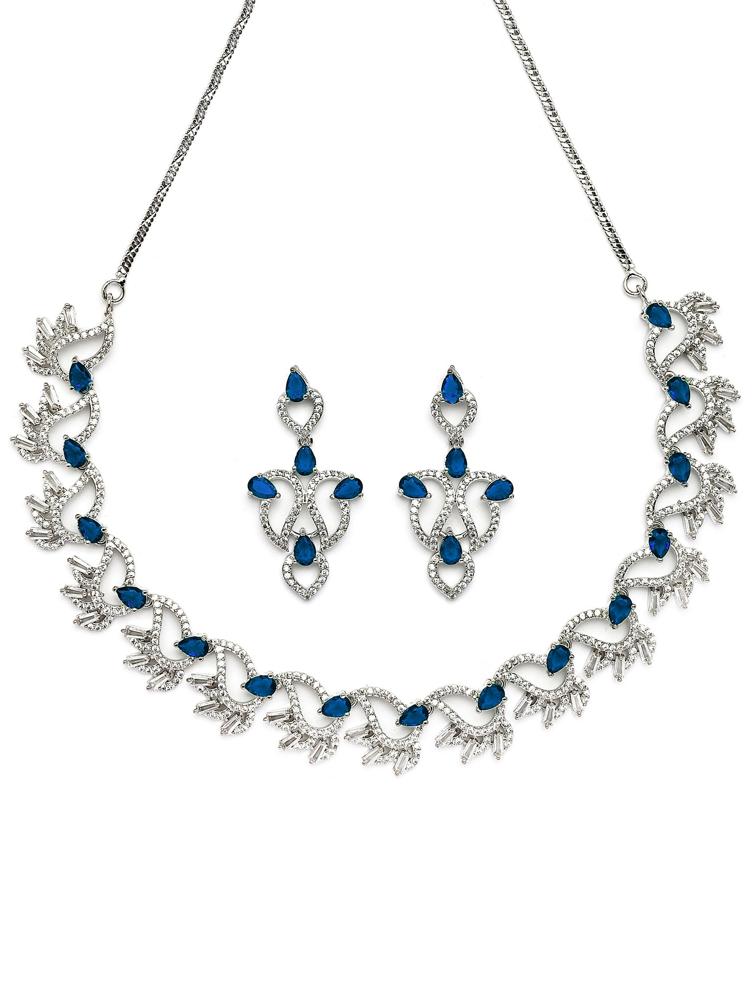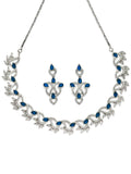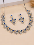 KARATCART Designer Silver-Plated Leaf Motif Blue American Diamond Jewellery Set for Women