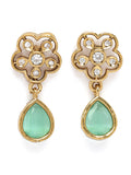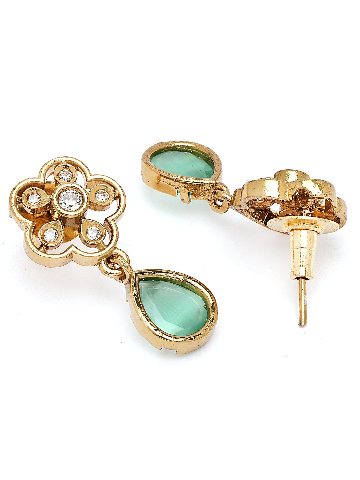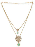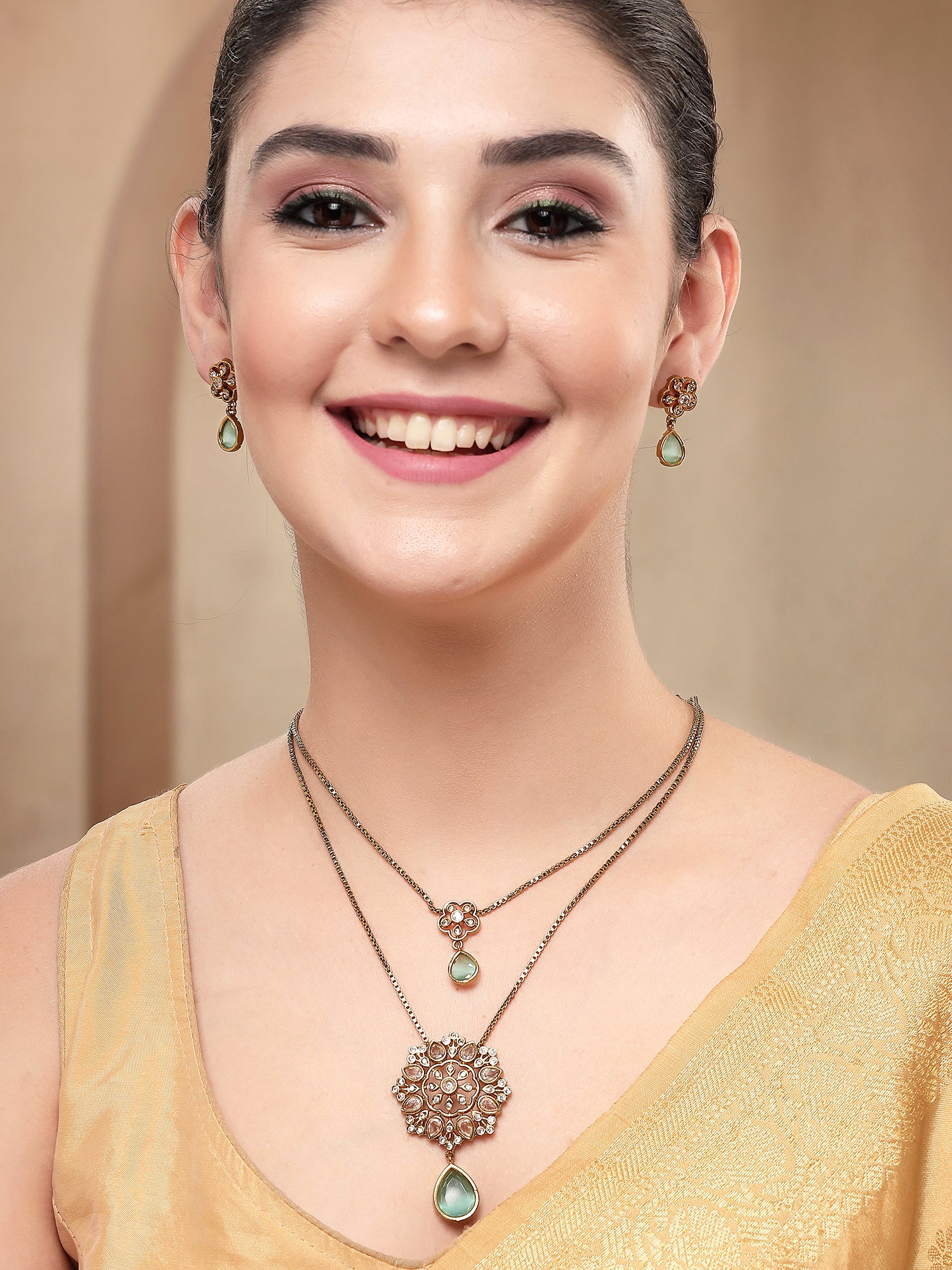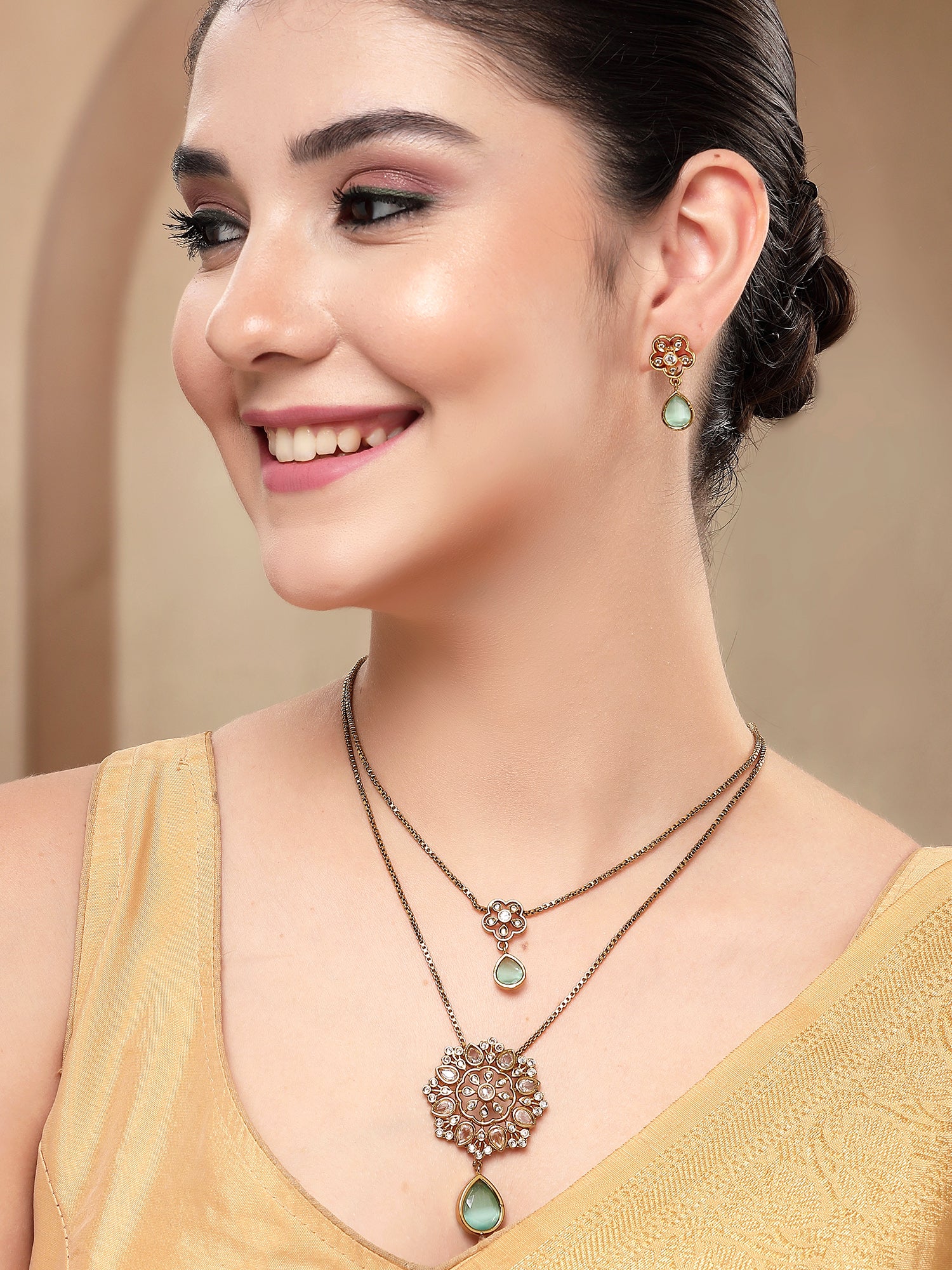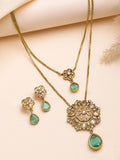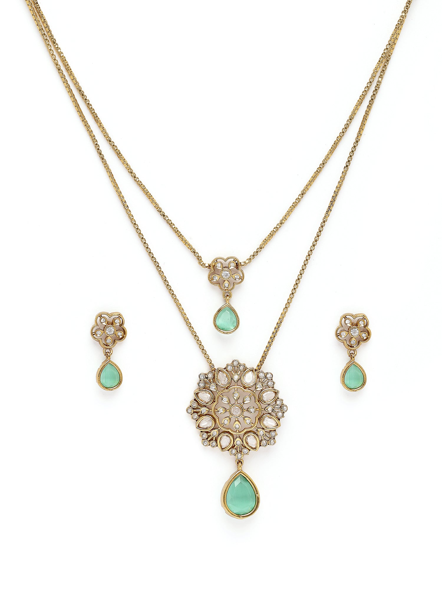 KARATCART Traditional Dual-Layered Lime Green American Diamond Pendant Jewellery Set for Women