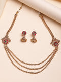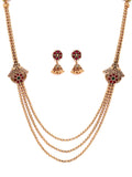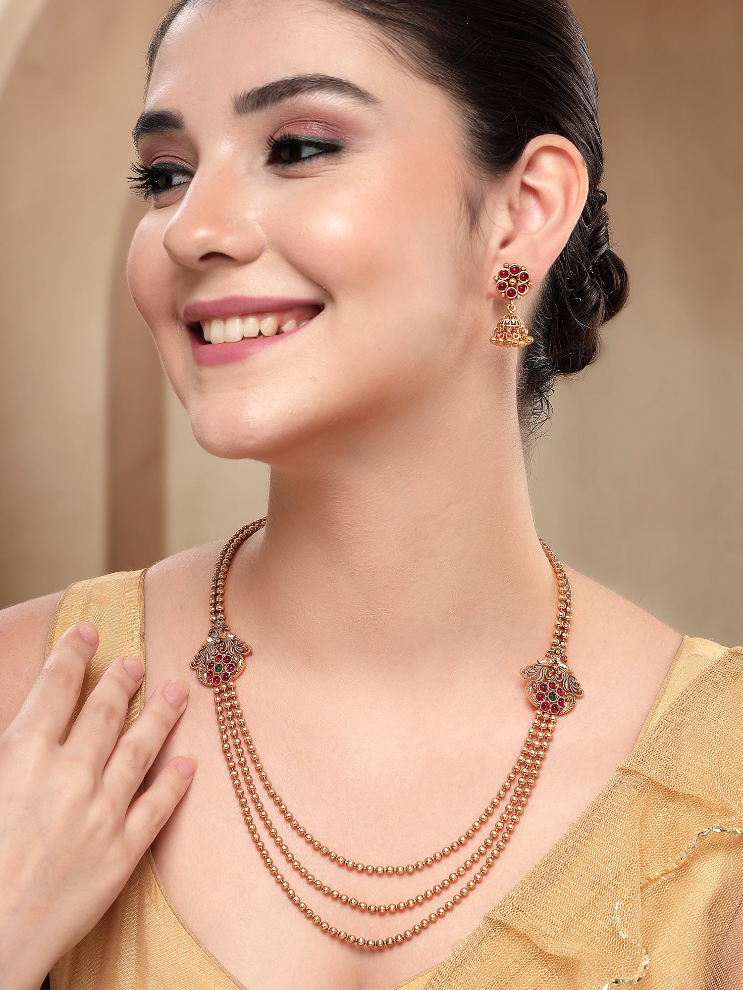 KARATCART Gold-Plated Traditional Triple-Layer Beaded Temple Jewellery Set for Women