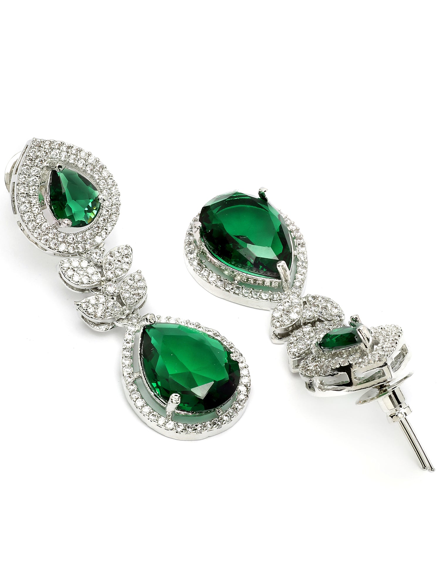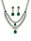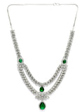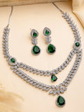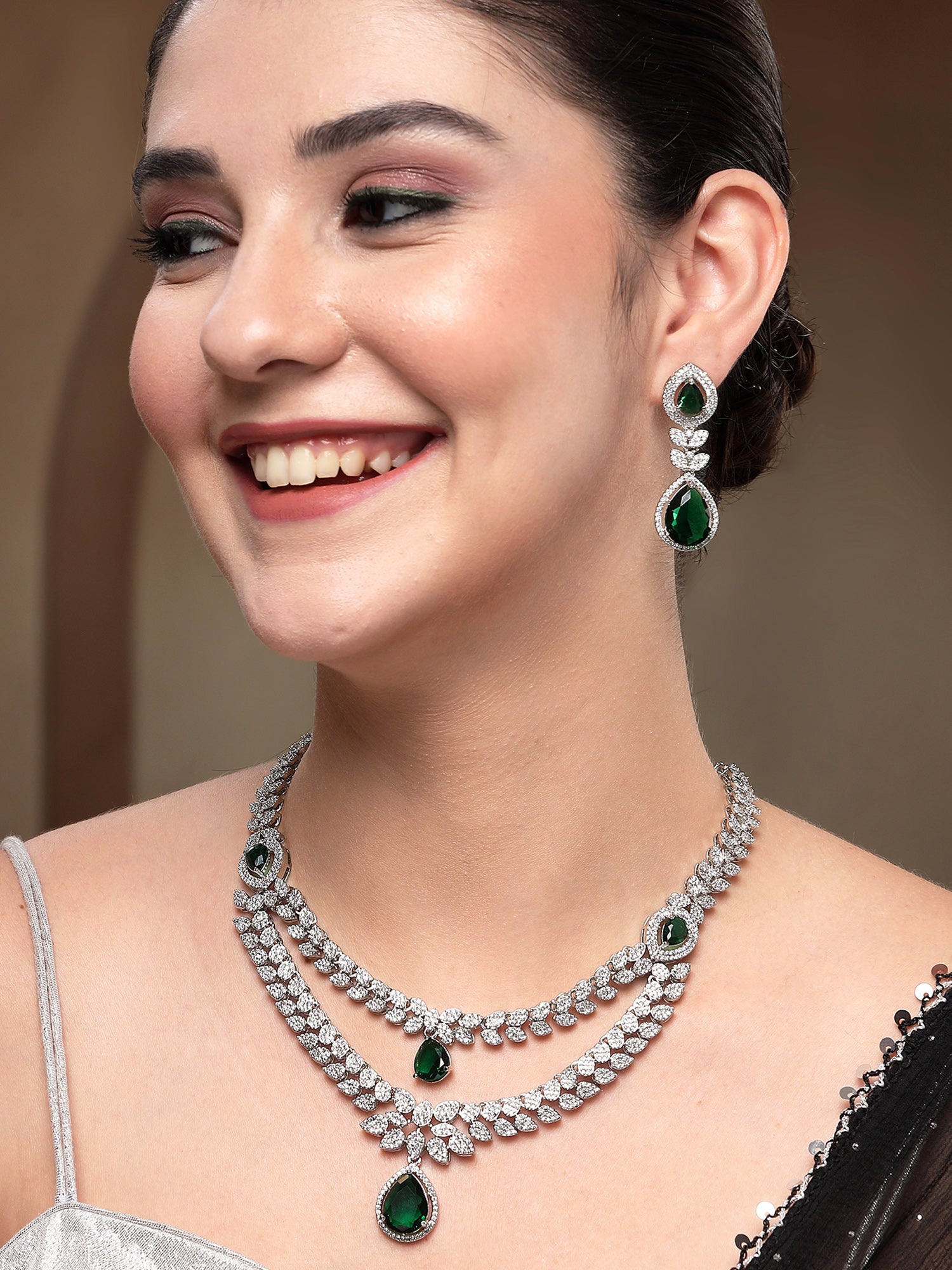 KARATCART Designer Silver-Plated Green American Diamond Jewellery Set for Women