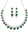 KARATCART Classic Oval Green Floral American Diamond Silver-Plated Jewellery Set for Women