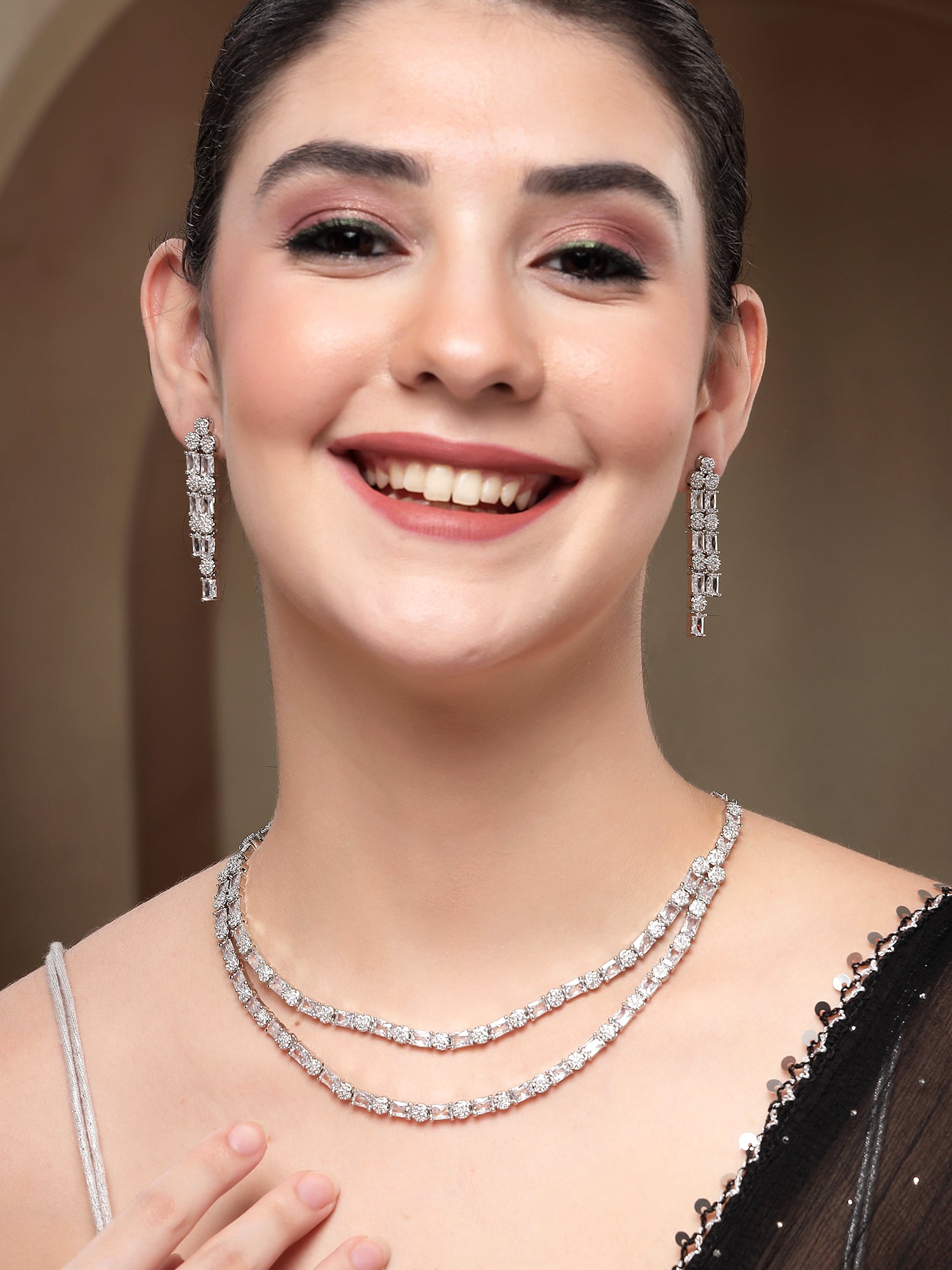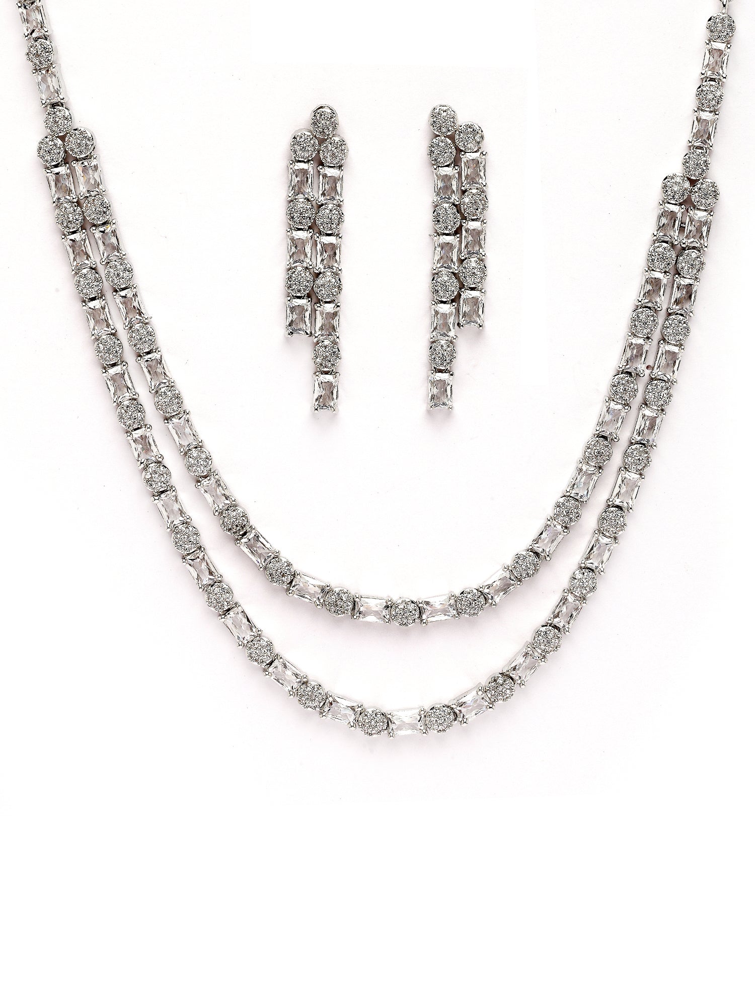 KARATCART Sparkling American Diamond Lightweight Silver-Tone Jewellery Set for Women