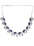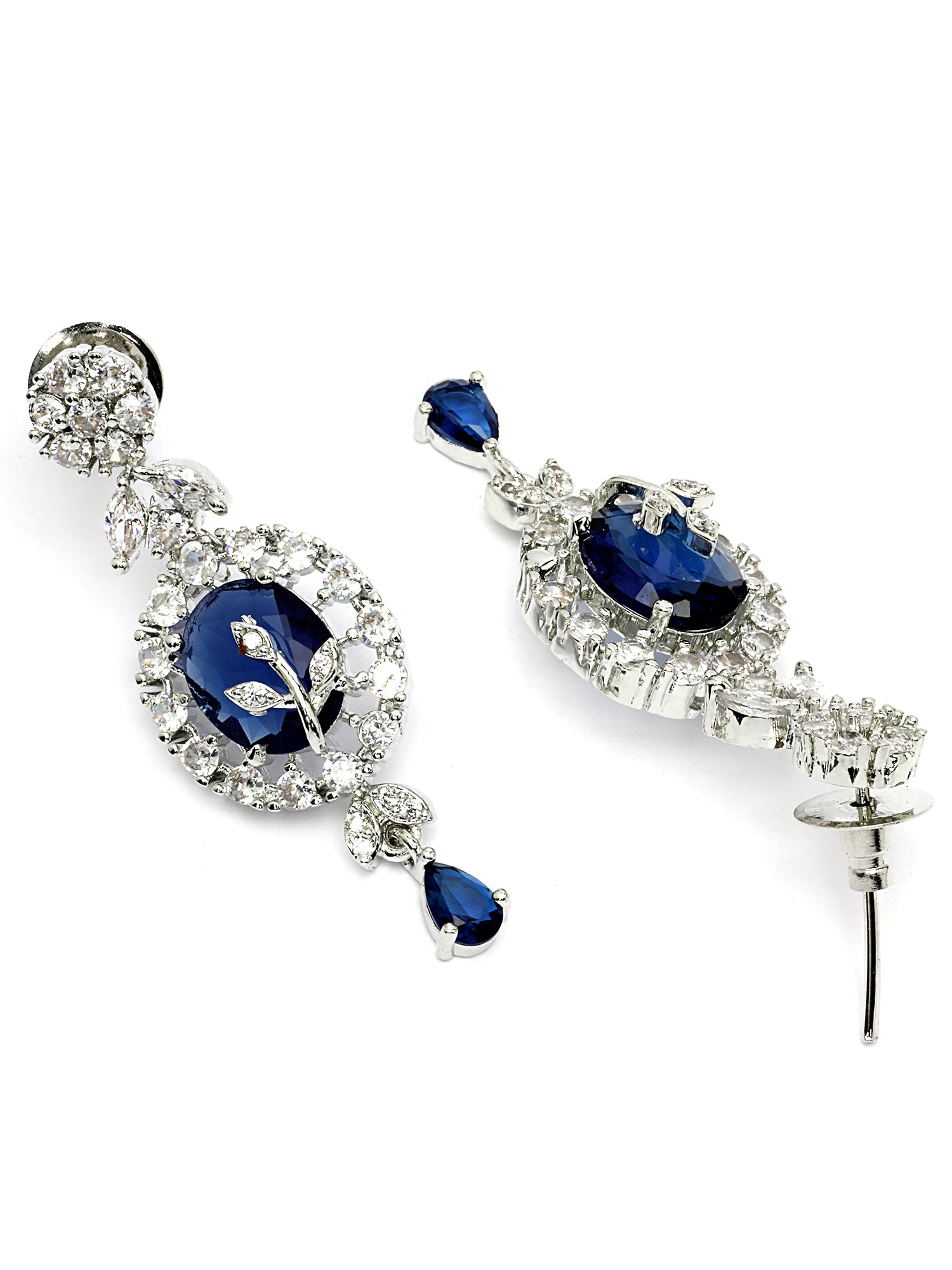 KARATCART Classic Oval Blue Leaf Design American Diamond Silver-Plated Jewellery Set for Women