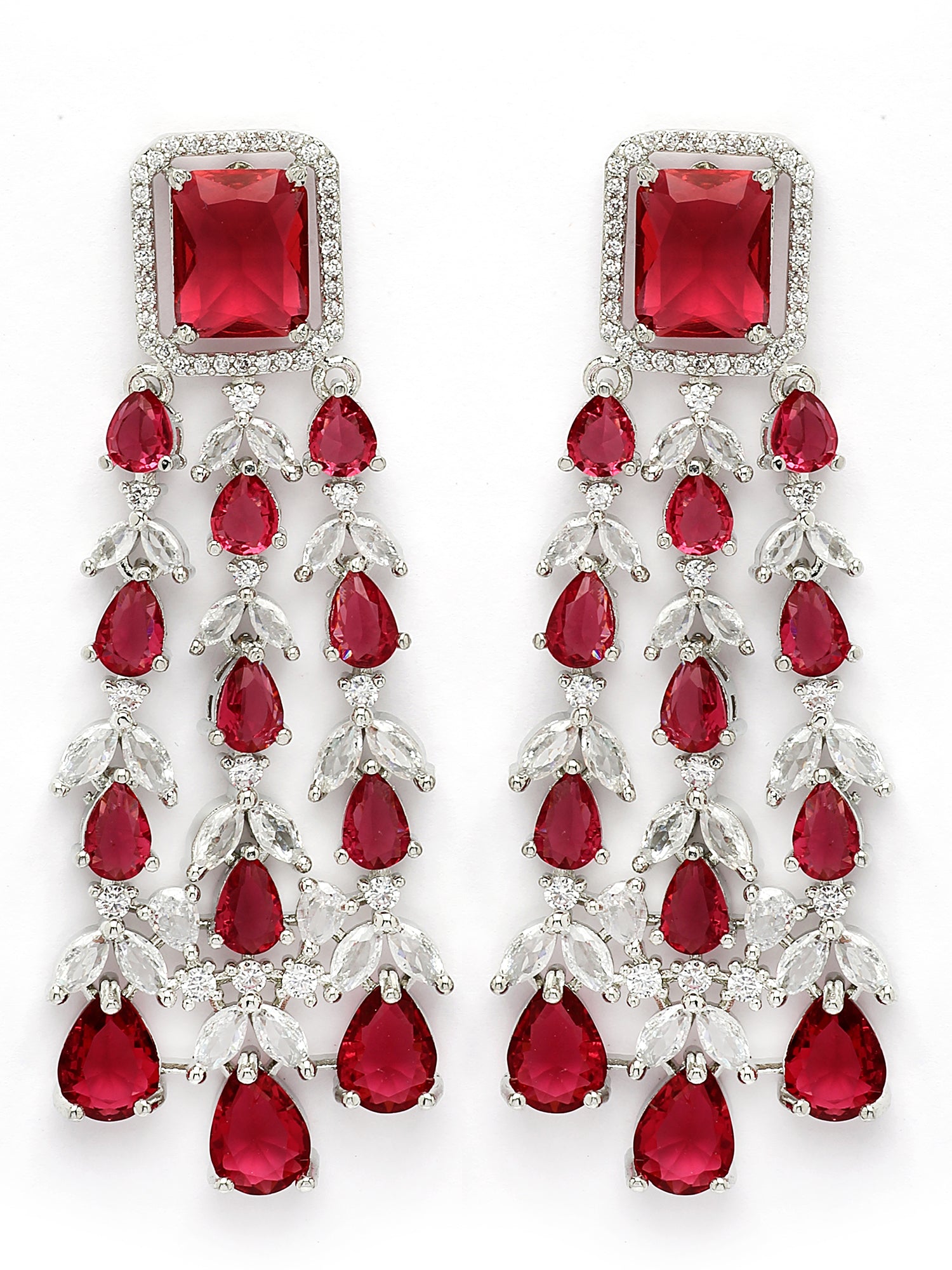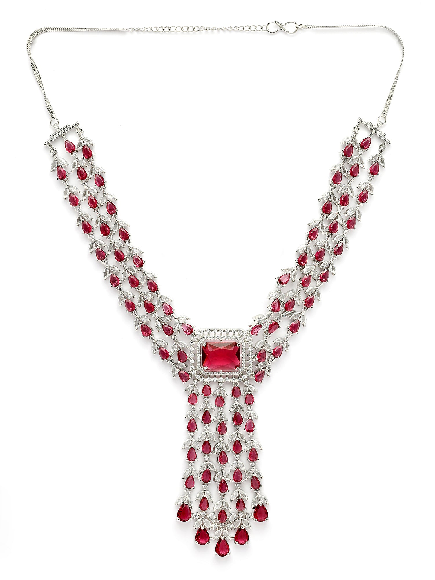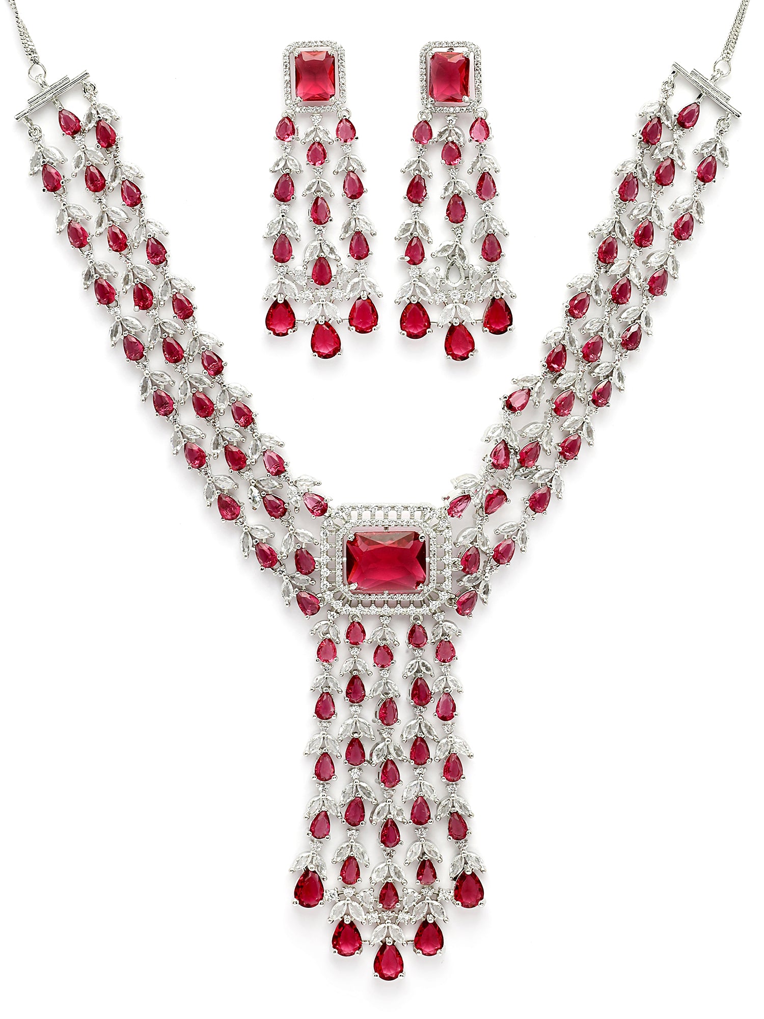 KARATCART Dazzling Red Multi-Layer American Diamond Silver-Plated Jewellery Set for Women
