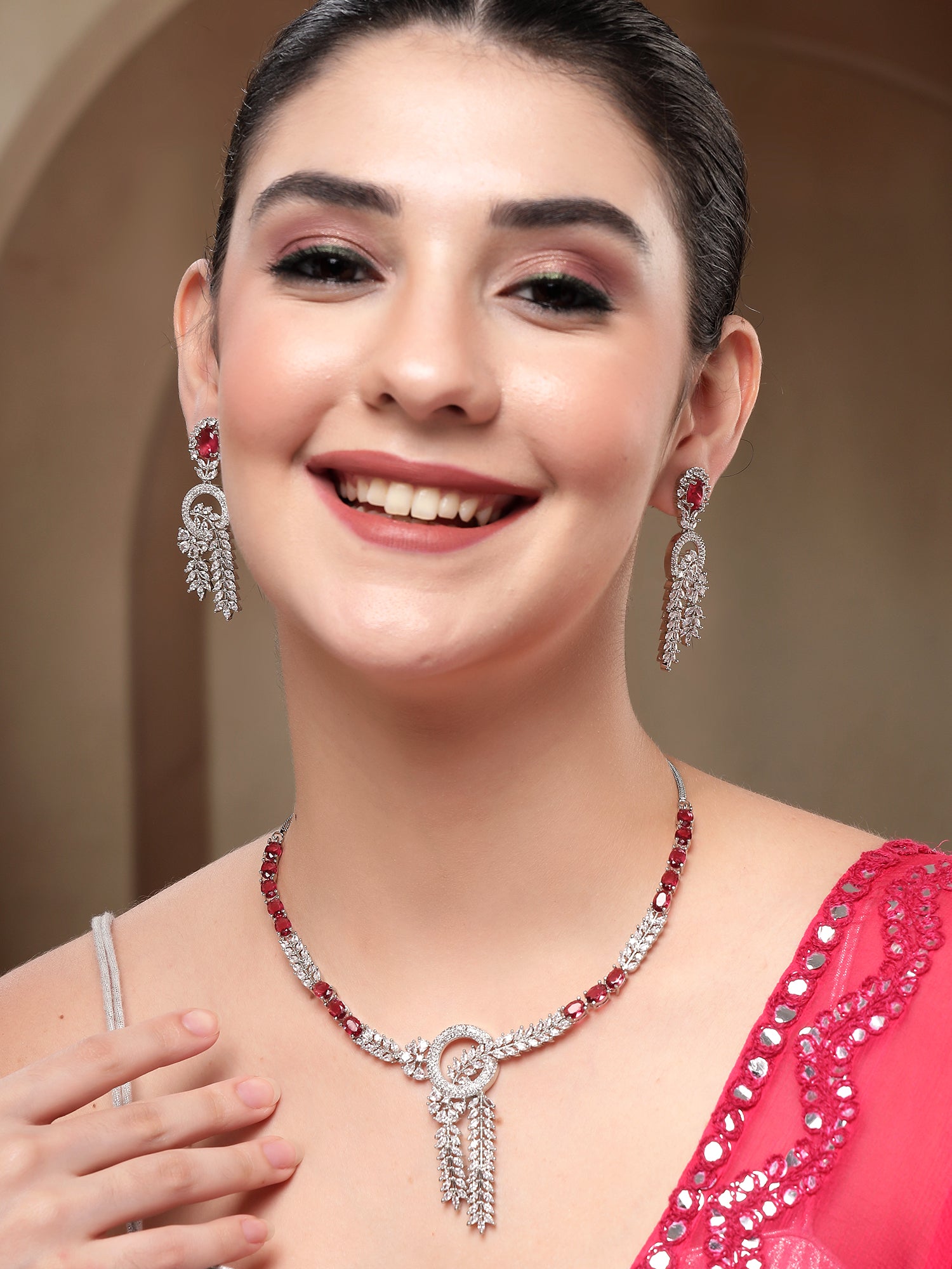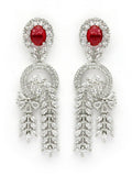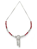 KARATCART Classic Oval Red Leaf Design American Diamond Silver-Plated Jewellery Set for Women
