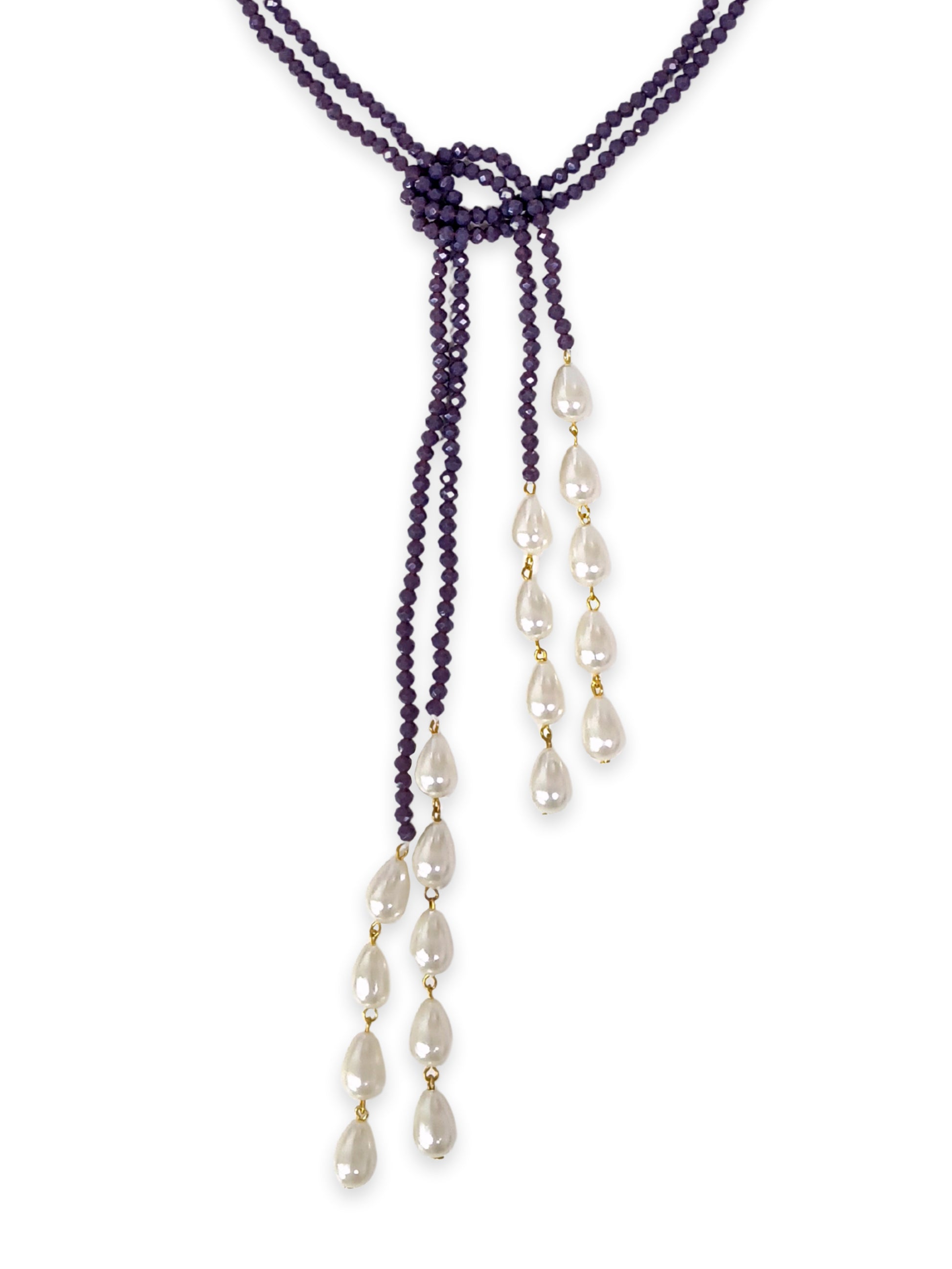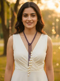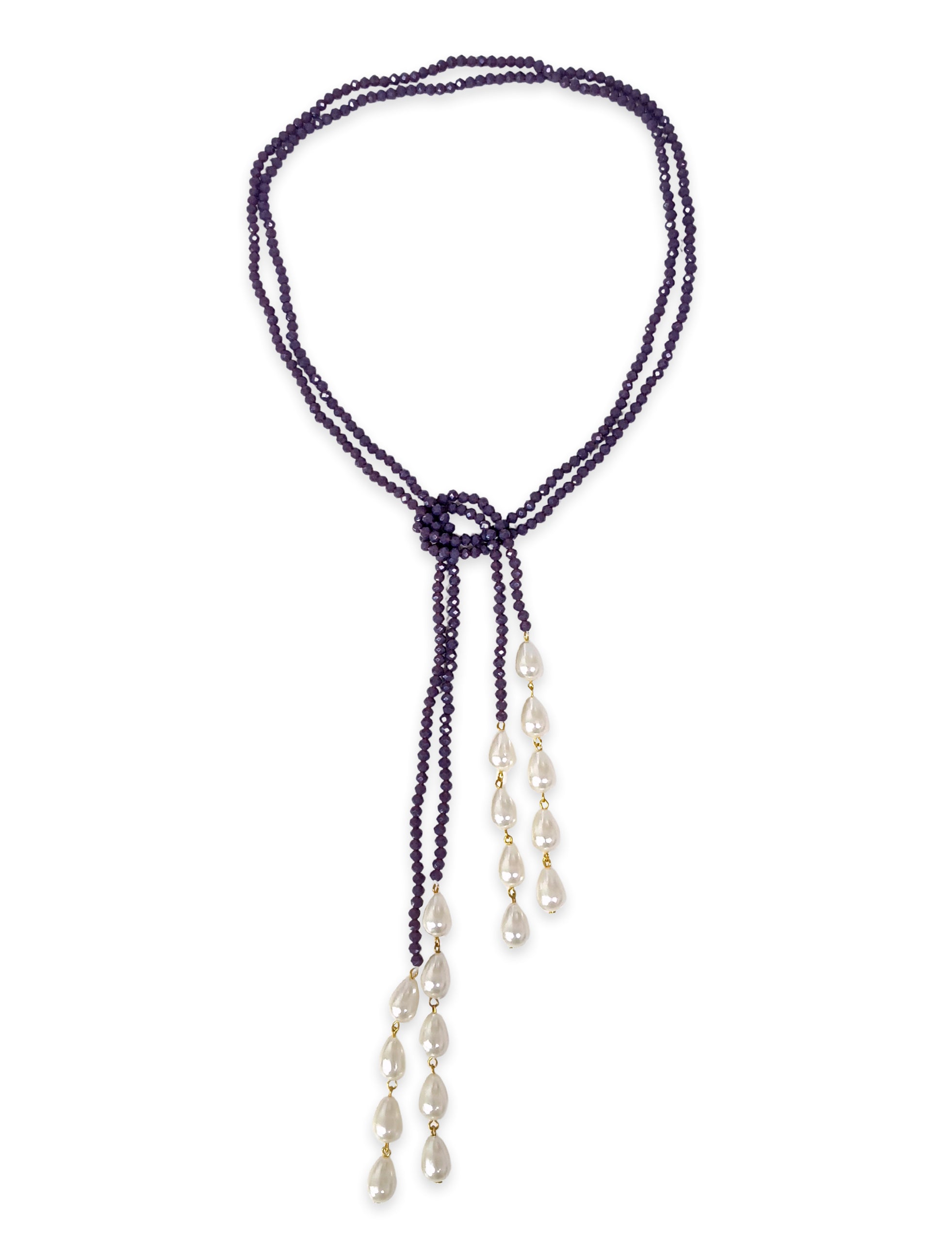 KARATCART Purple Crystal and Drop Pearl Beaded Necklace for Women