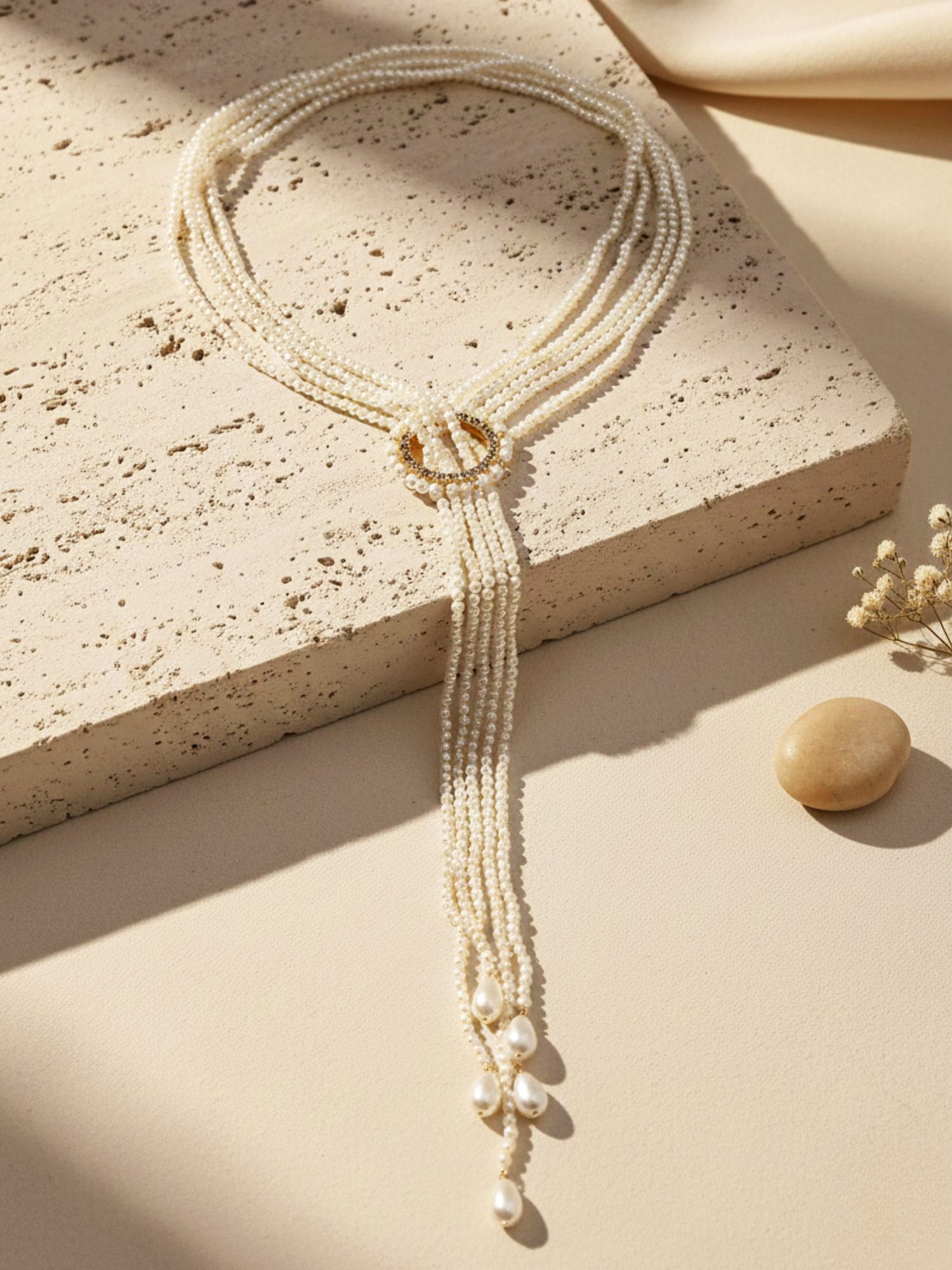 KARATCART Designer Multi Layer Pearl Beaded Kundan Necklace for Women