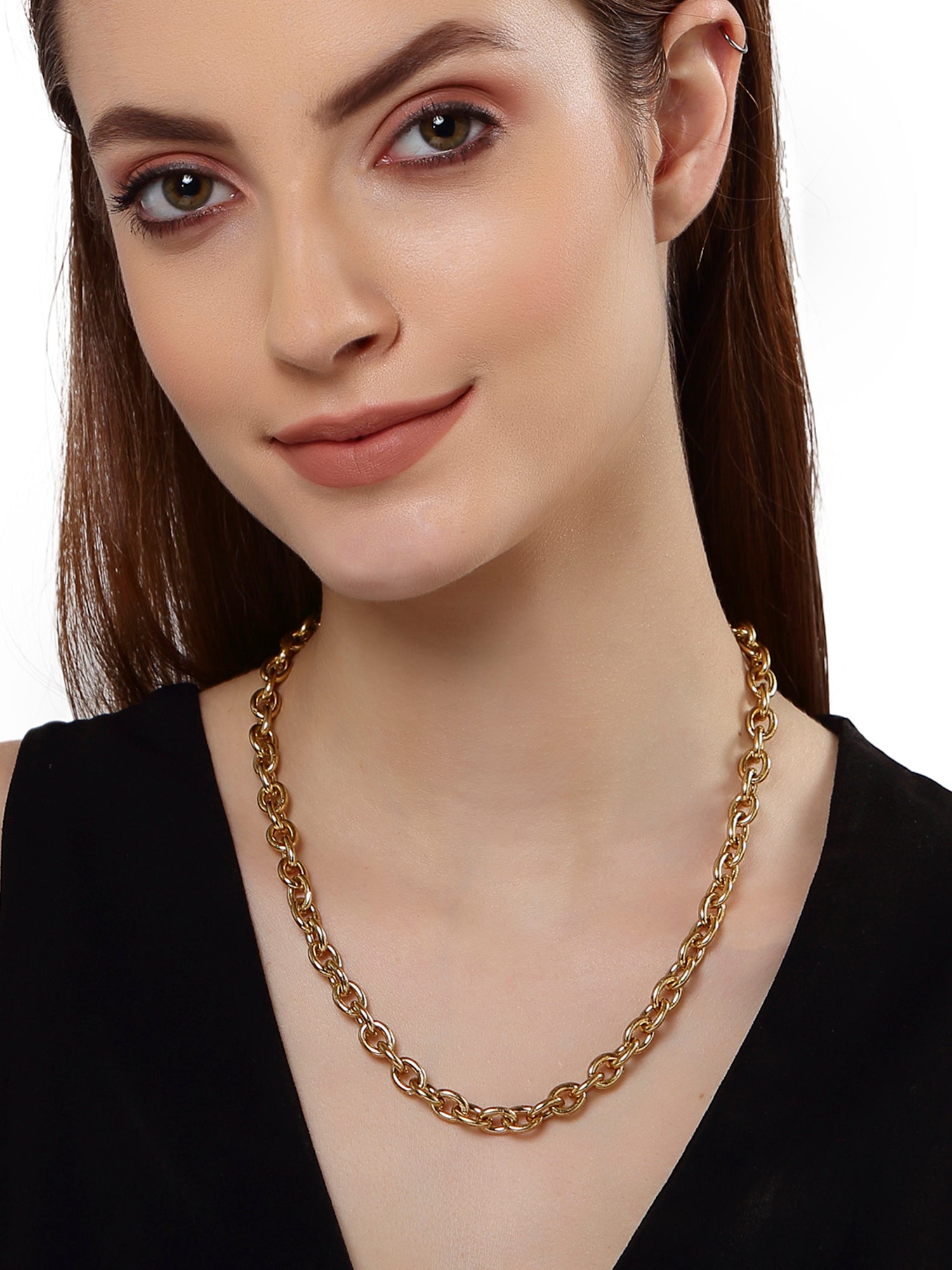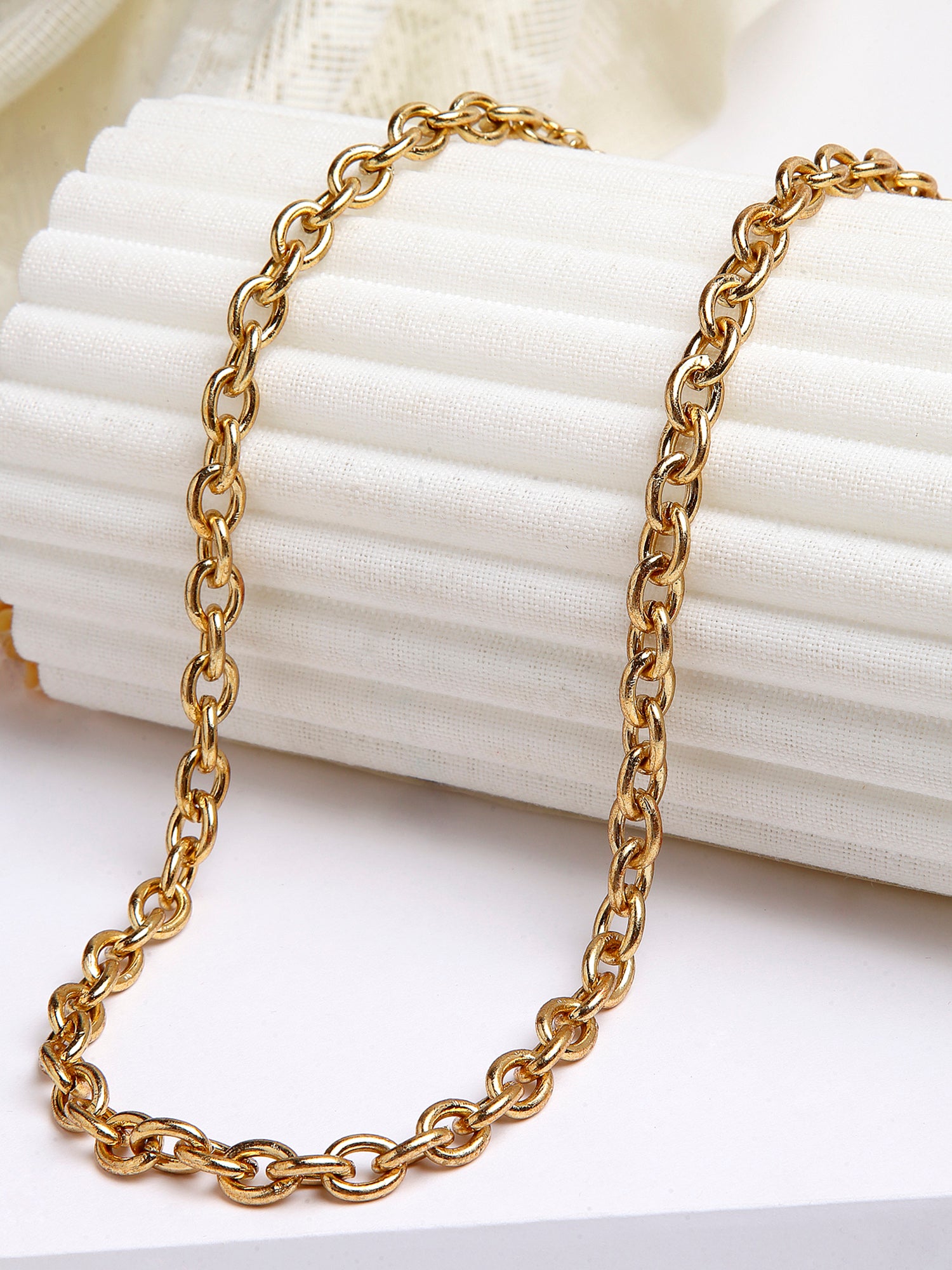 - Karatcart Gold Plated Neck Chain for Men and Women. Contemporary Solid Gold Link Chain Necklaces are beautifully handcrafted with high-quality alloy metal which makes them very skin-friendly.