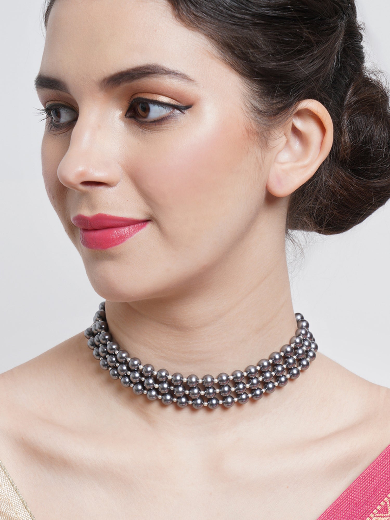 - Karatcart Grey Pearl Beaded Choker Necklace for Women. These beautifully handcrafted Gold-Plated Necklace are made with high-quality Kundan and Pearls which makes them very skin-friendly.