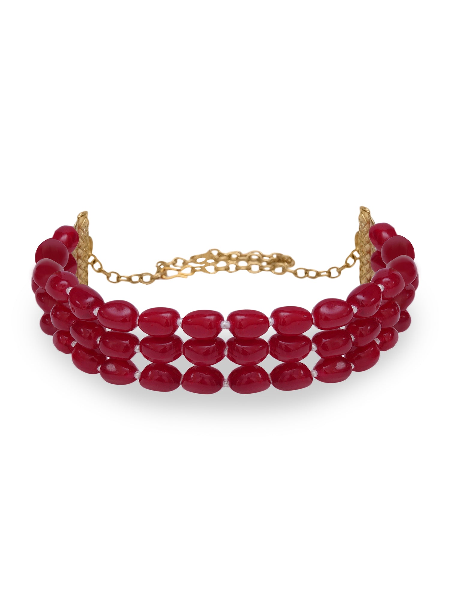 - Karatcart Red Stone Studded Beaded Choker Necklace for Women. These beautifully handcrafted Gold-Plated Necklace are made with high-quality Kundan and Tumble Stones which makes them very skin-friendly.