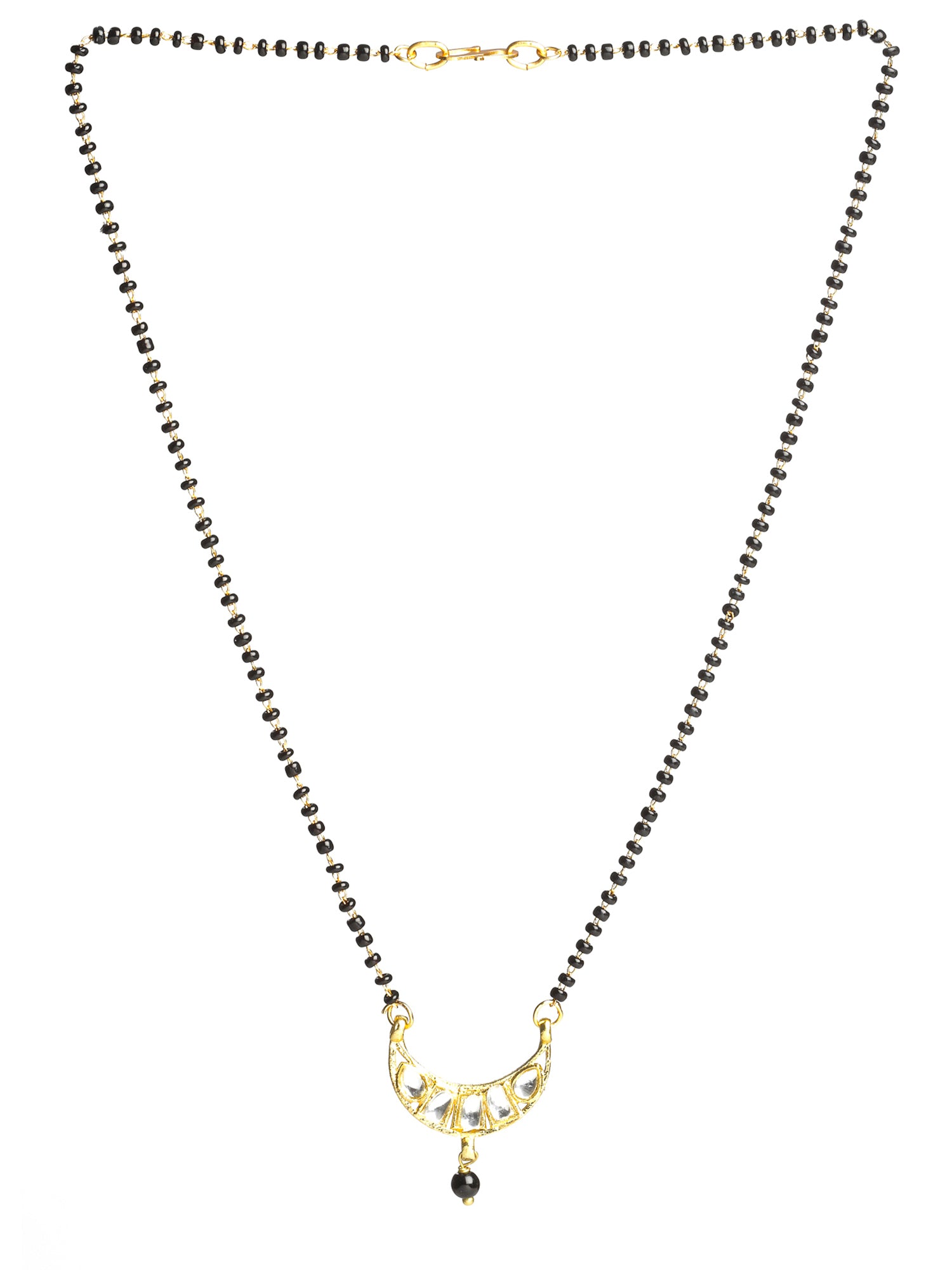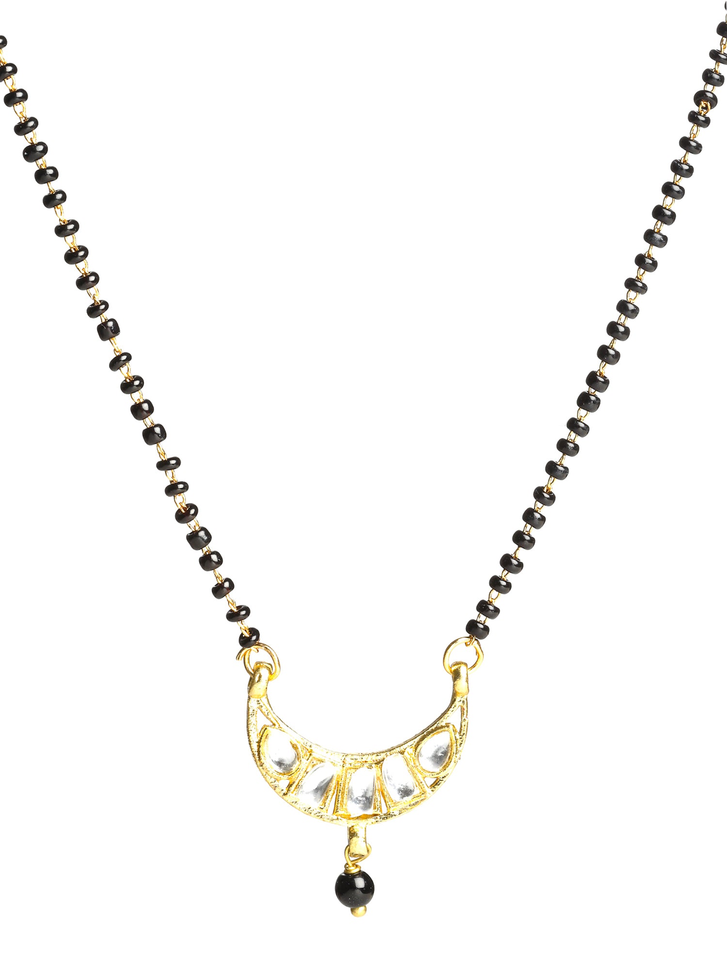 - Karatcart Gold Plated Tanmaniya Moon Shape Kundan Mangalsutra for Women. It is made with high-quality Kundan Stones which makes them very skin-friendly. Perfect for Weddings, Parties, Festivals, and Traditional Occasions.
