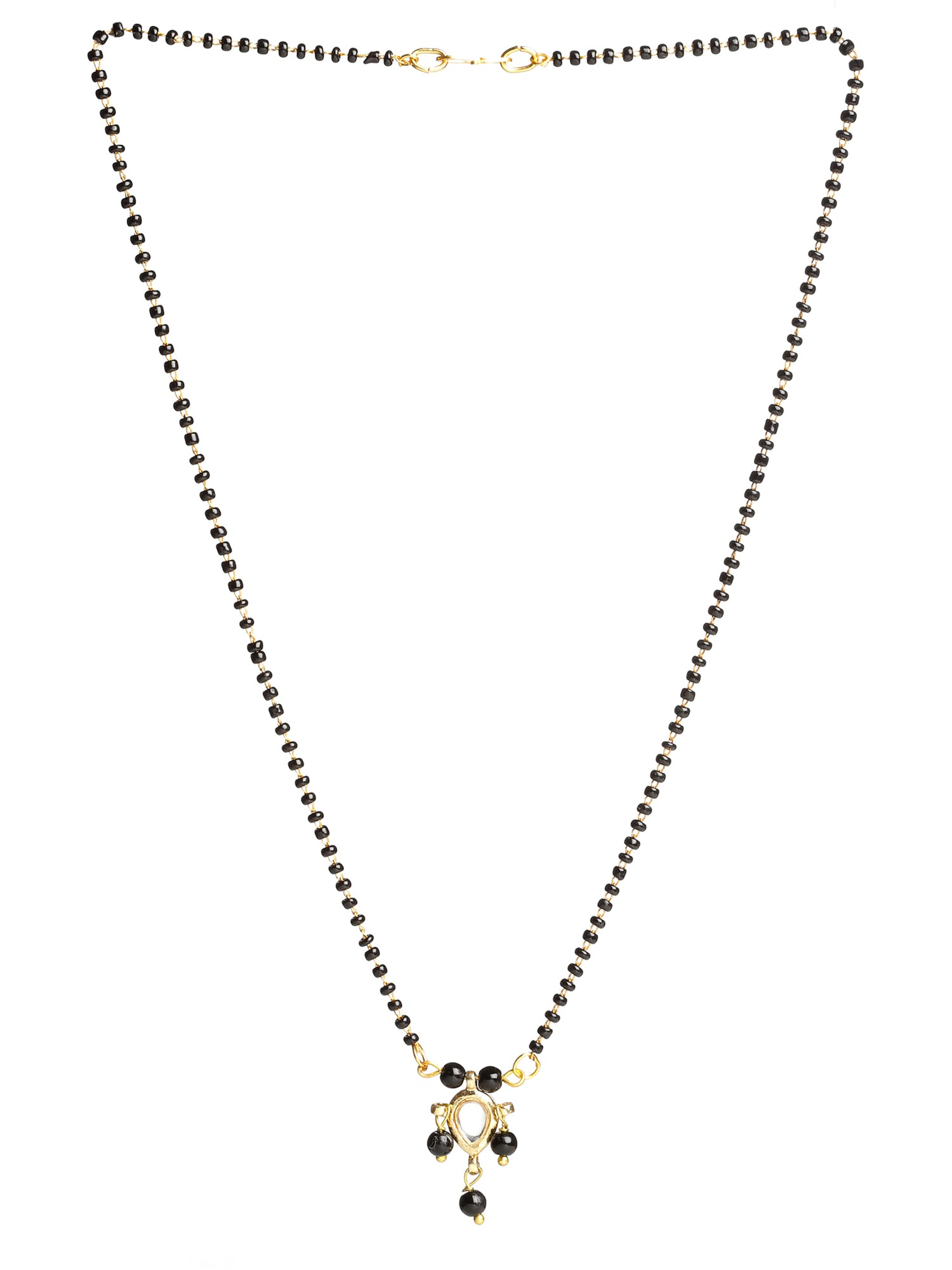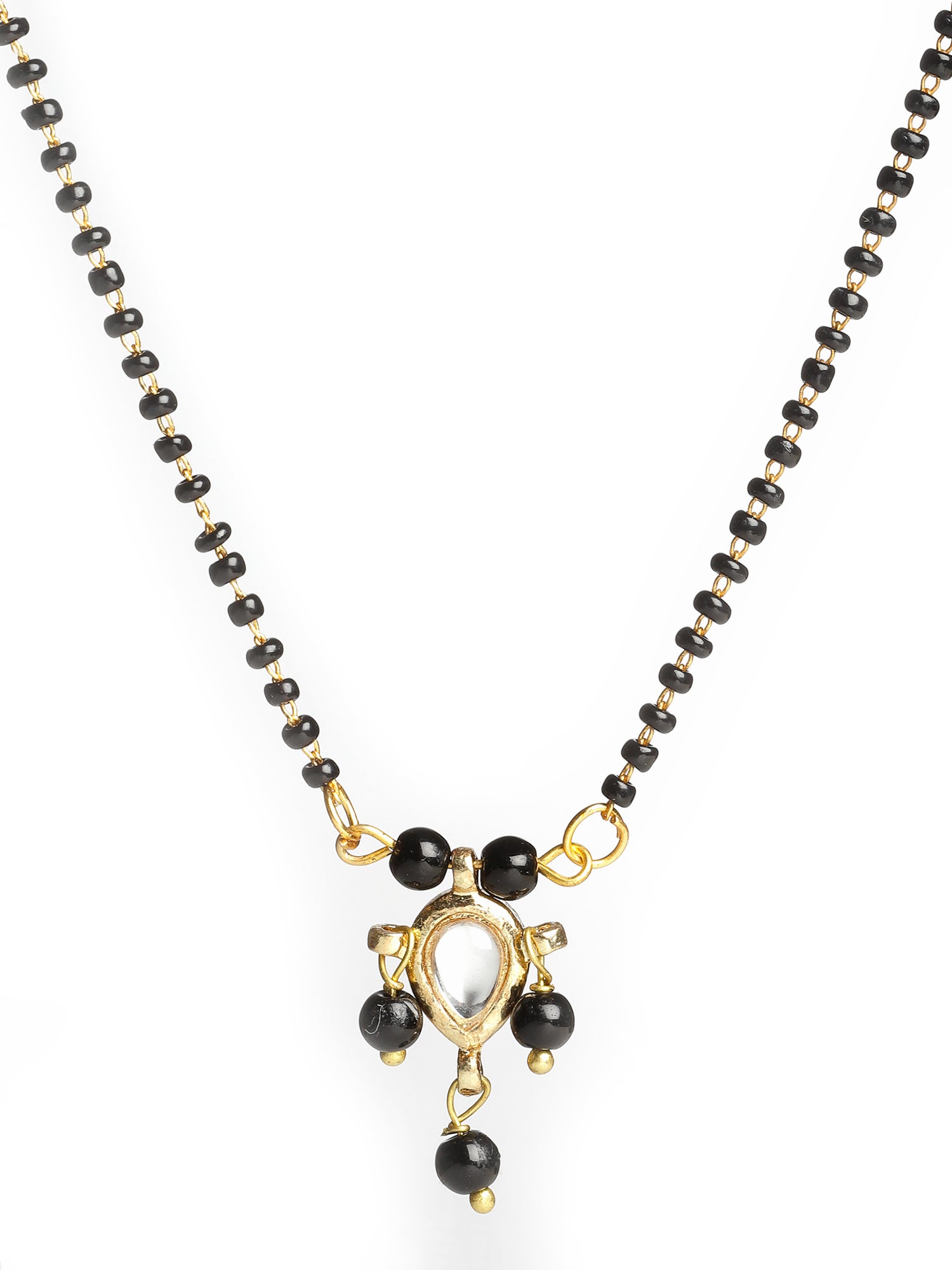- Karatcart Gold-Plated Tanmaniya Black Drop Kundan Mangalsutra for Women. It is made with high-quality Kundan Stones which makes them very skin-friendly. Perfect for Weddings, Parties, Festivals, and Traditional Occasions.