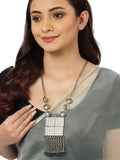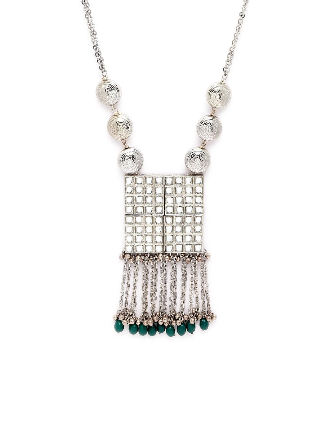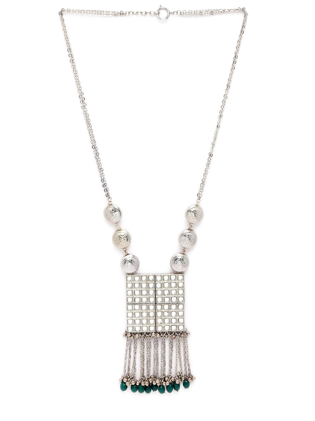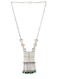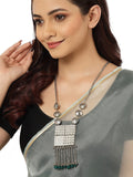 Silver-Toned & Green Silver-Plated Oxidised Necklace