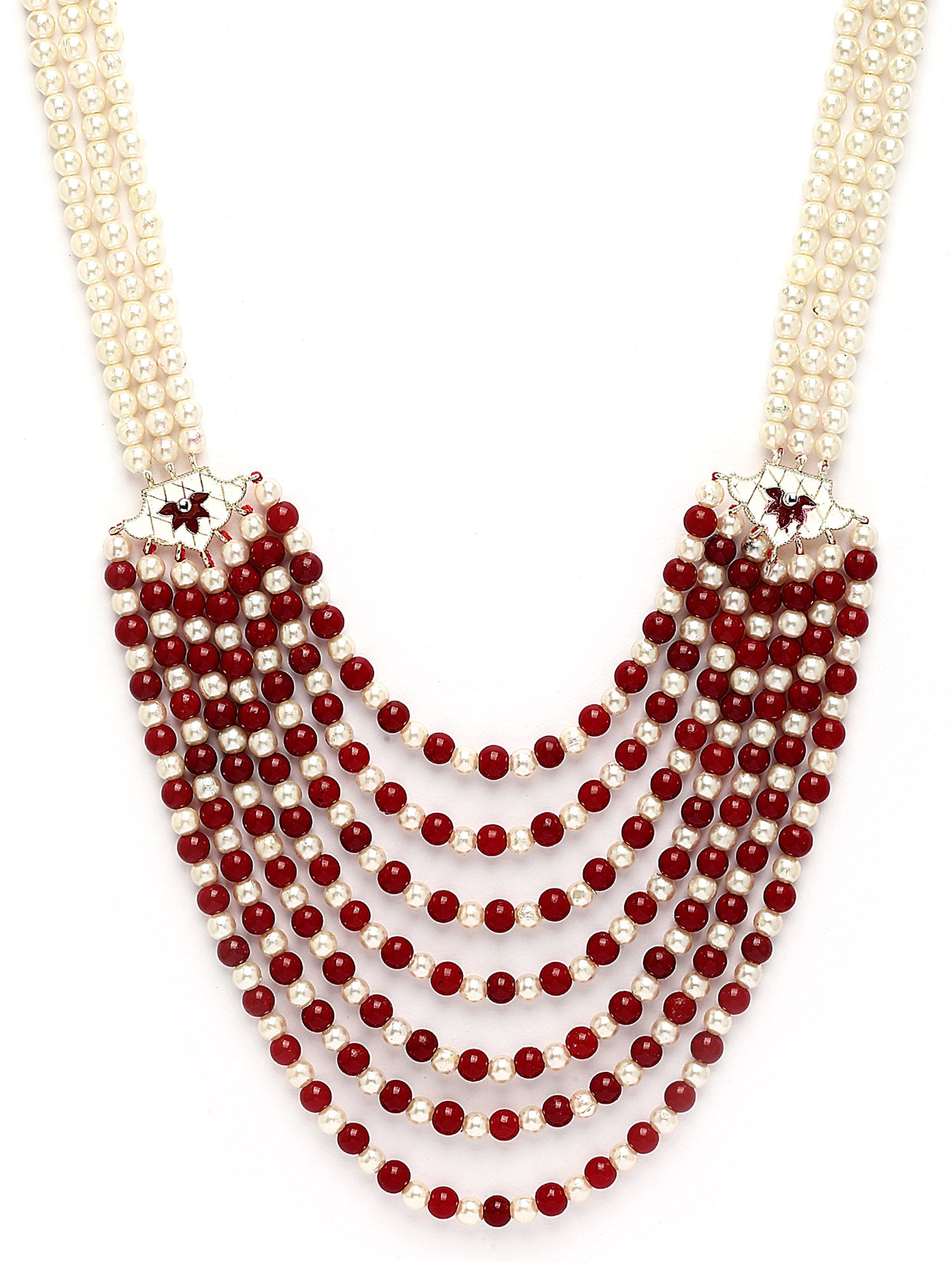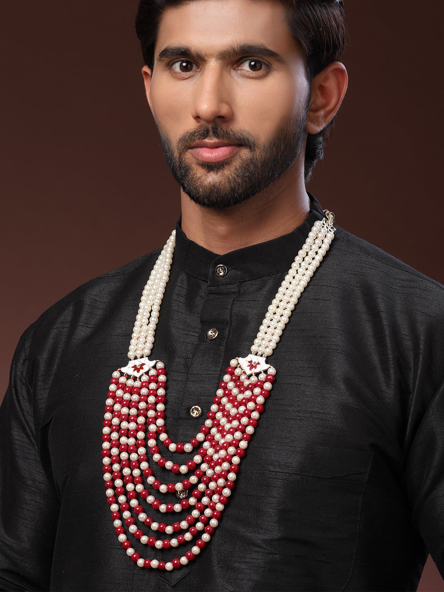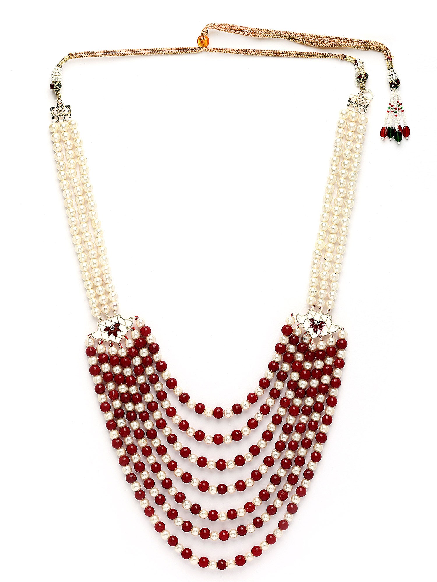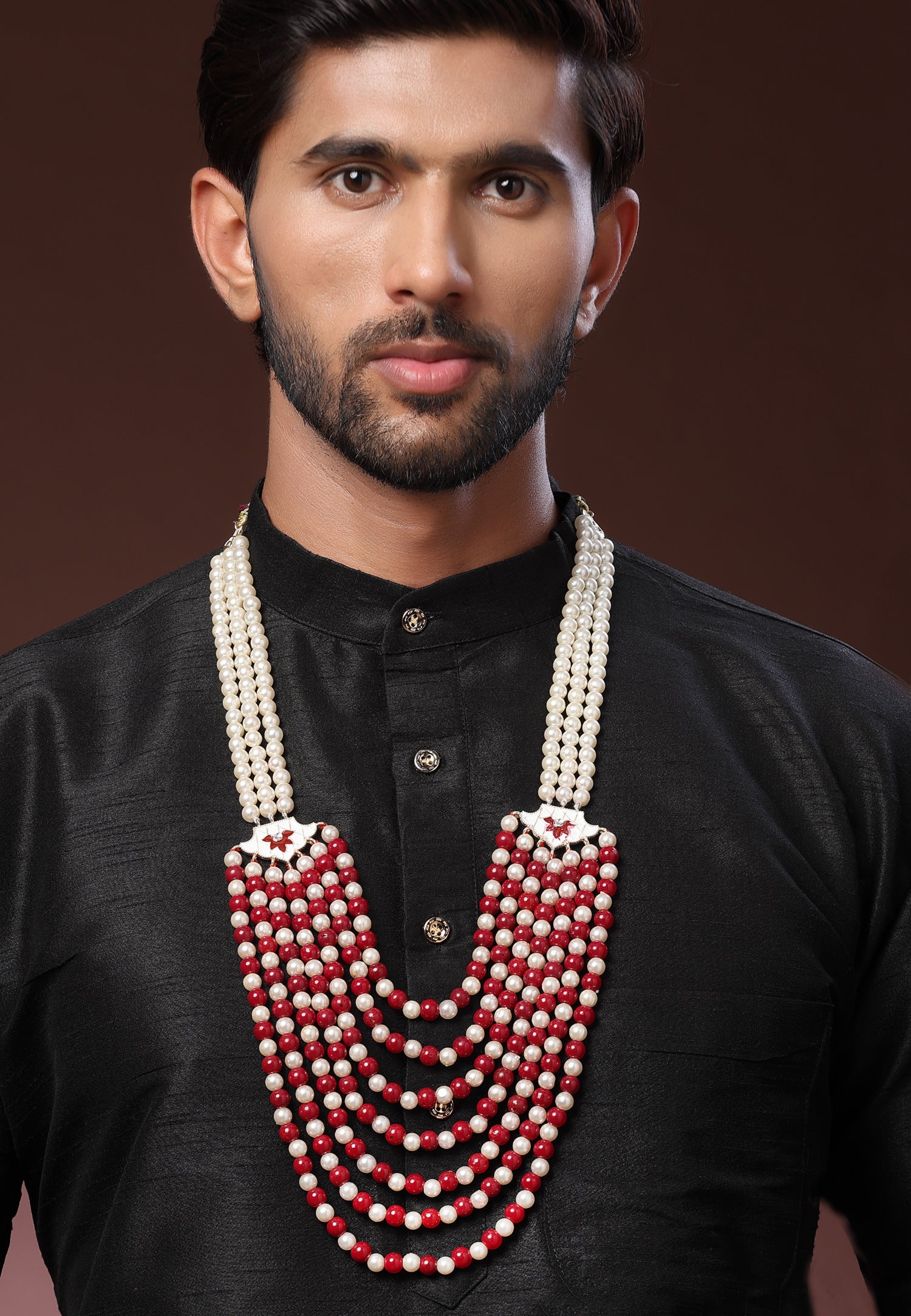 Karatcart Red and White Pearl Enamel Maharaja Haar for Men