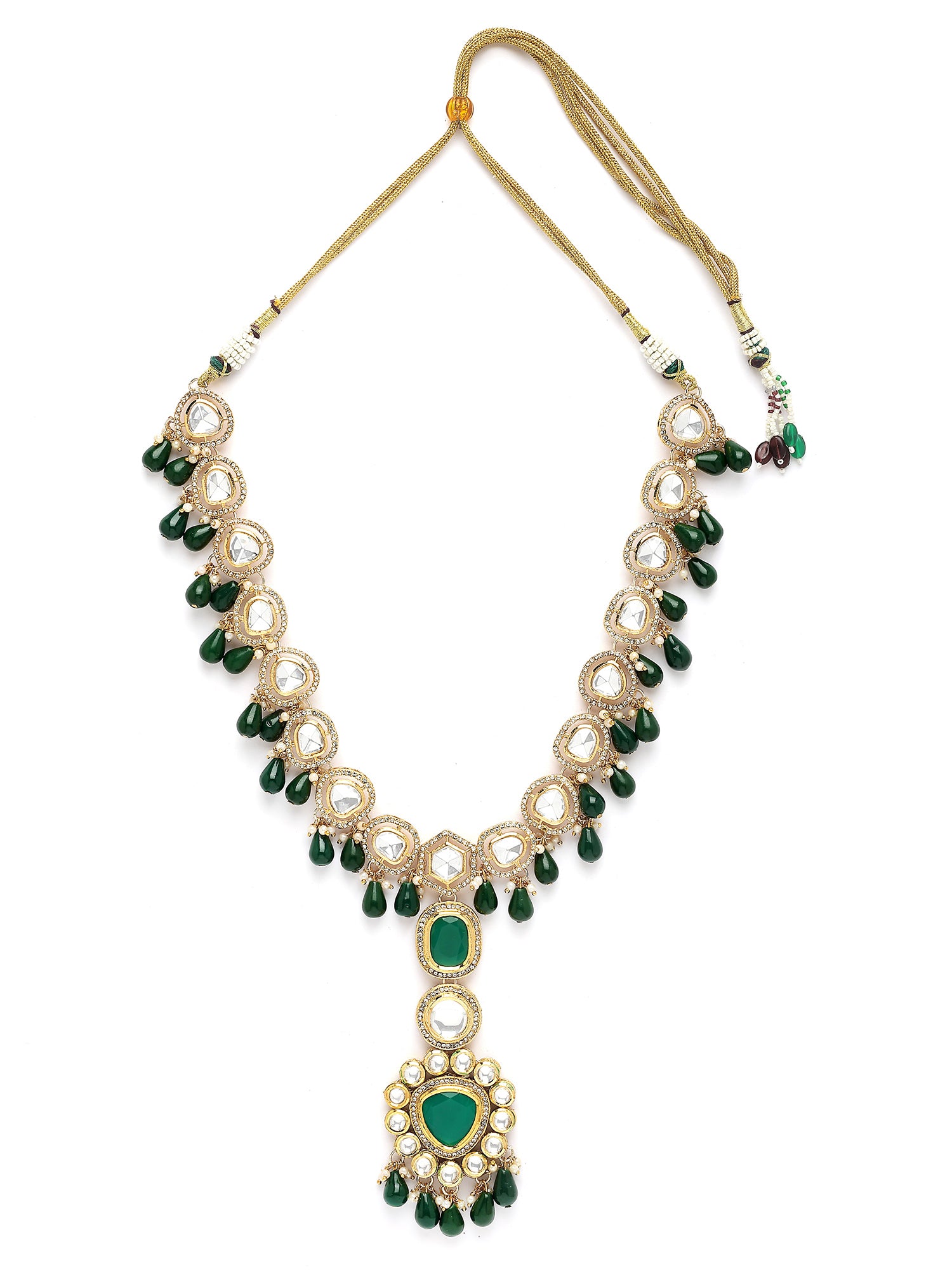 - This is a Green Necklace by Brand Karatcart which has Polki Kundan stones. This is Gold Plated. We at KARATCART understand your desire to look the best on any day & we thrive in making any day an occasion. Every individual at Karatcart carries a passion for jewellery and it reflects in our beautiful designs as well as in our breathtaking craftsmanship. We create unique jewellery so you can make heads turn.