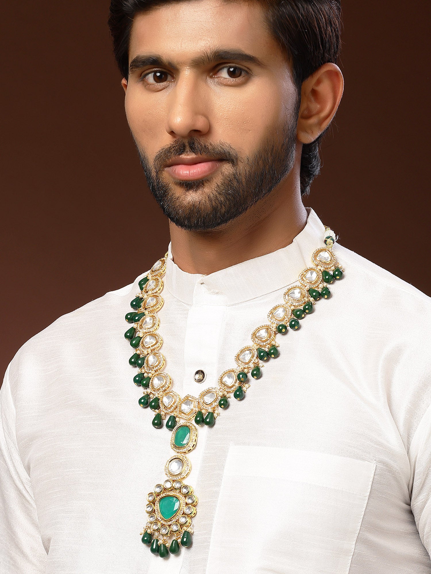 Karatcart Green Round Polki Kundan Maharaja Haar for Men
