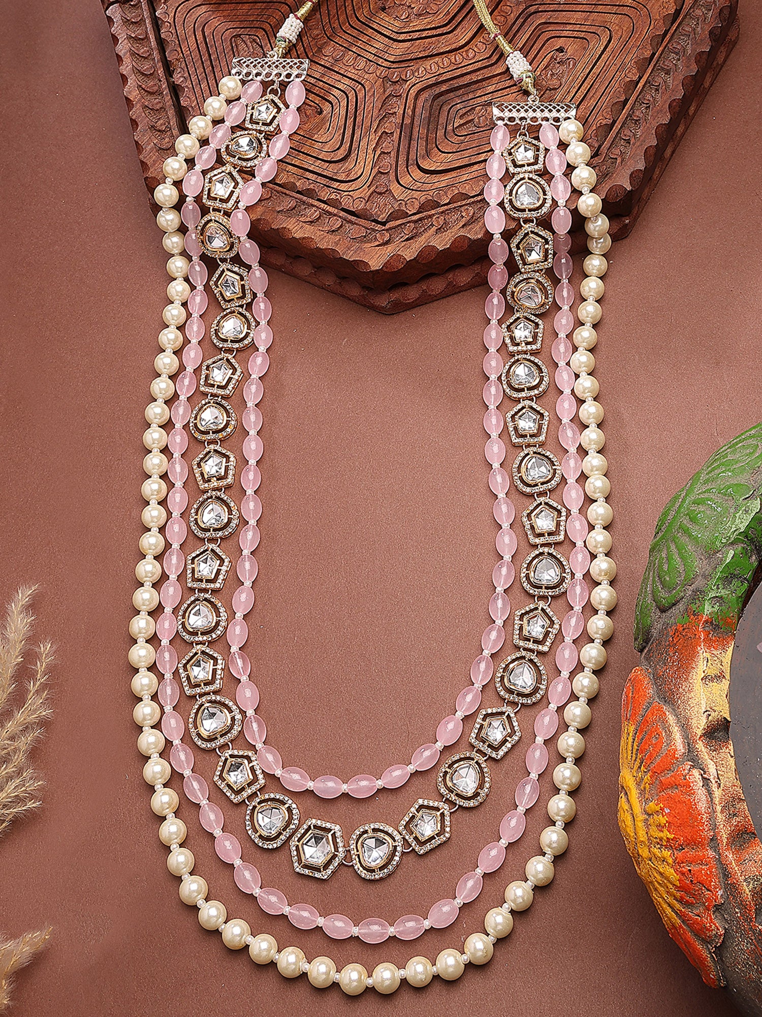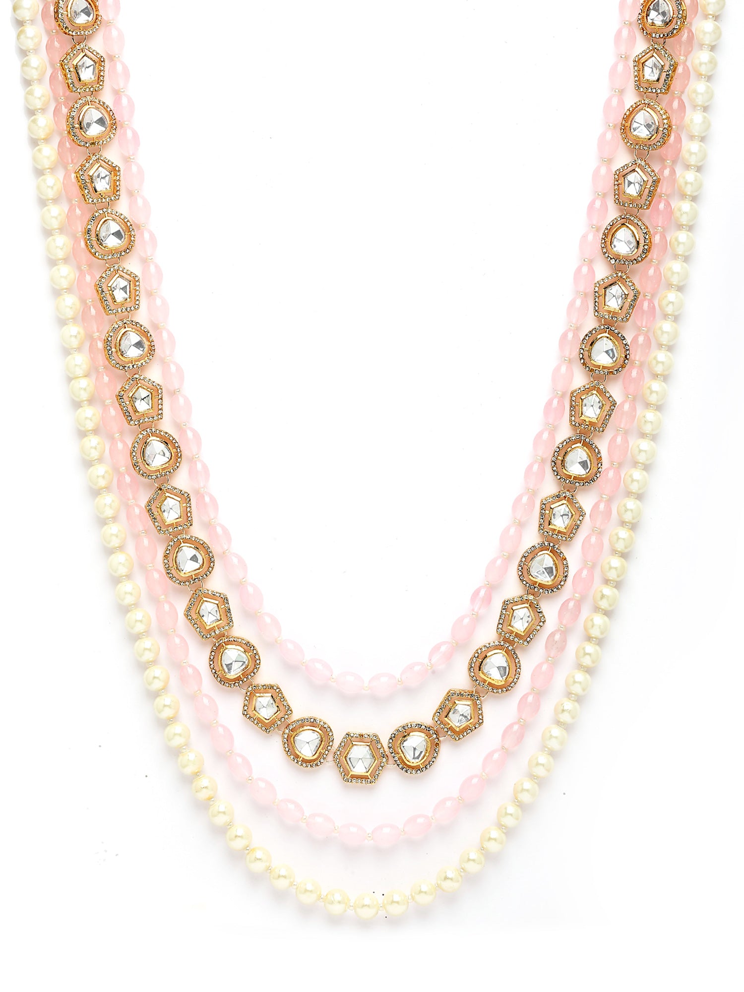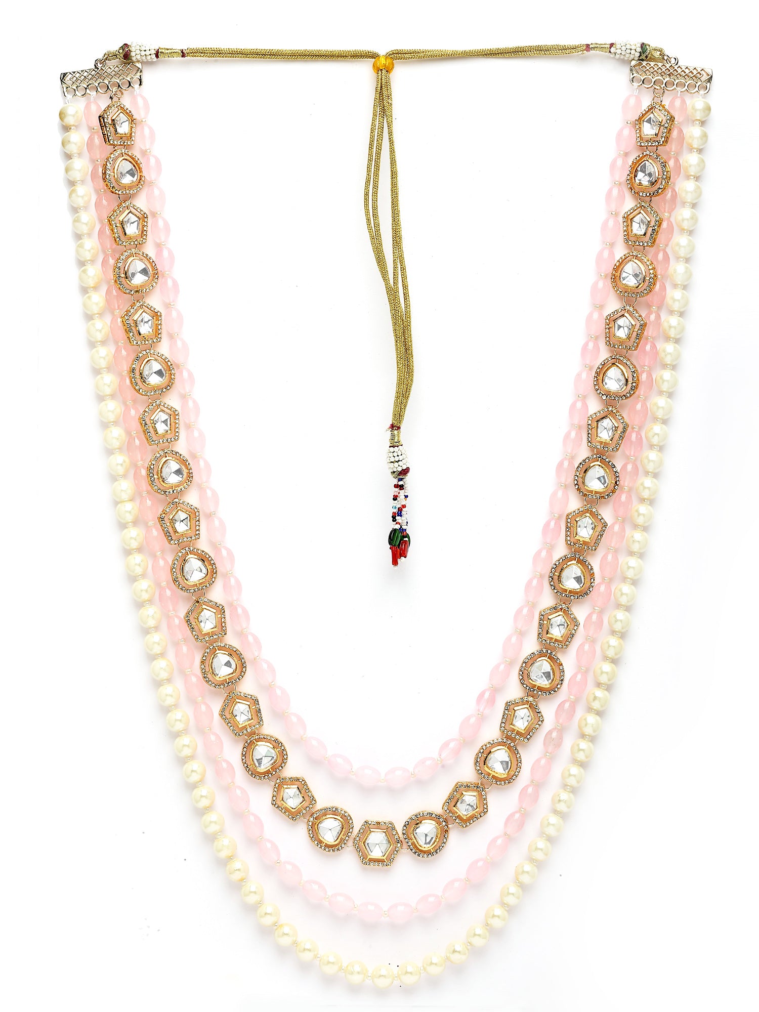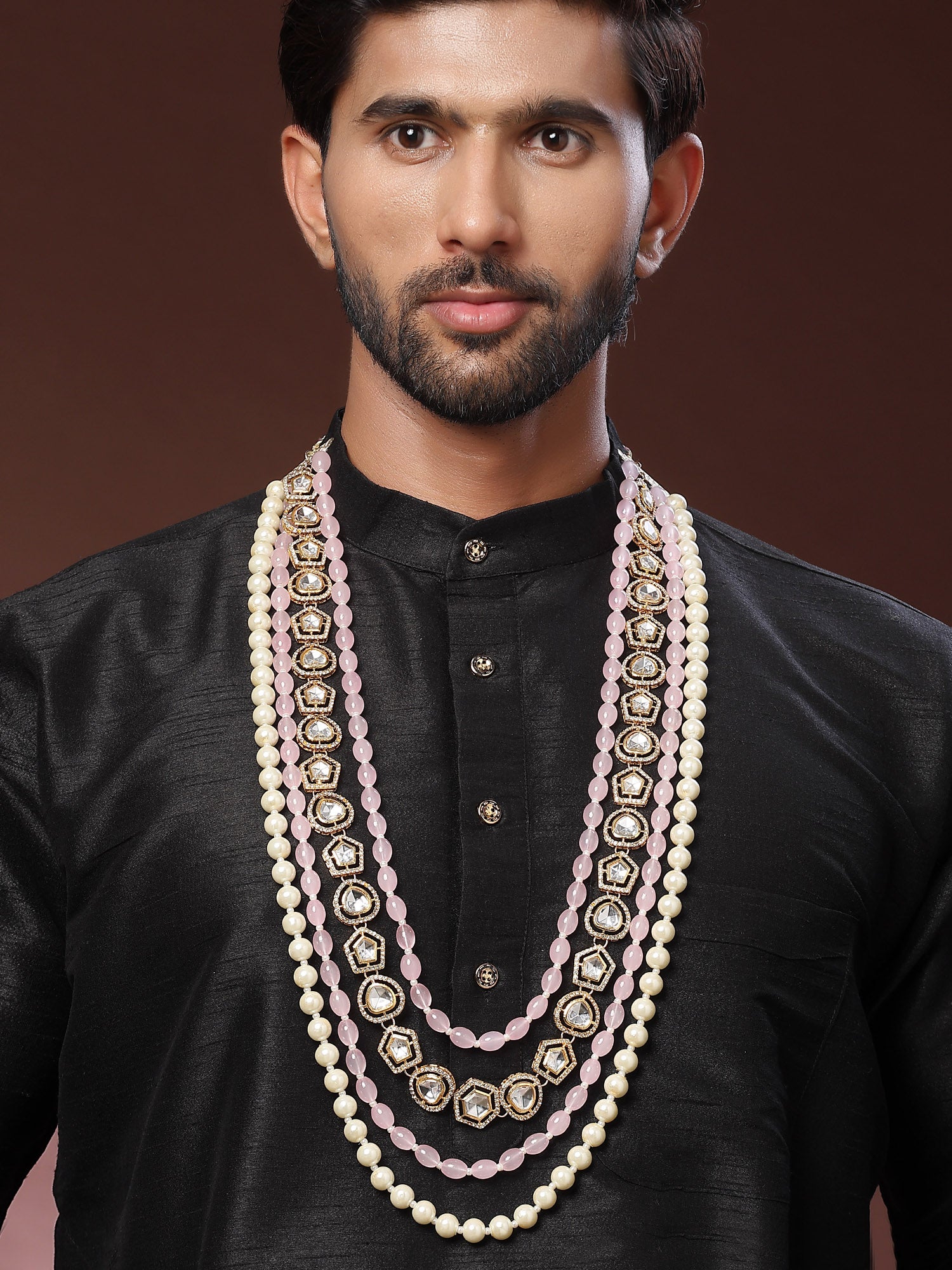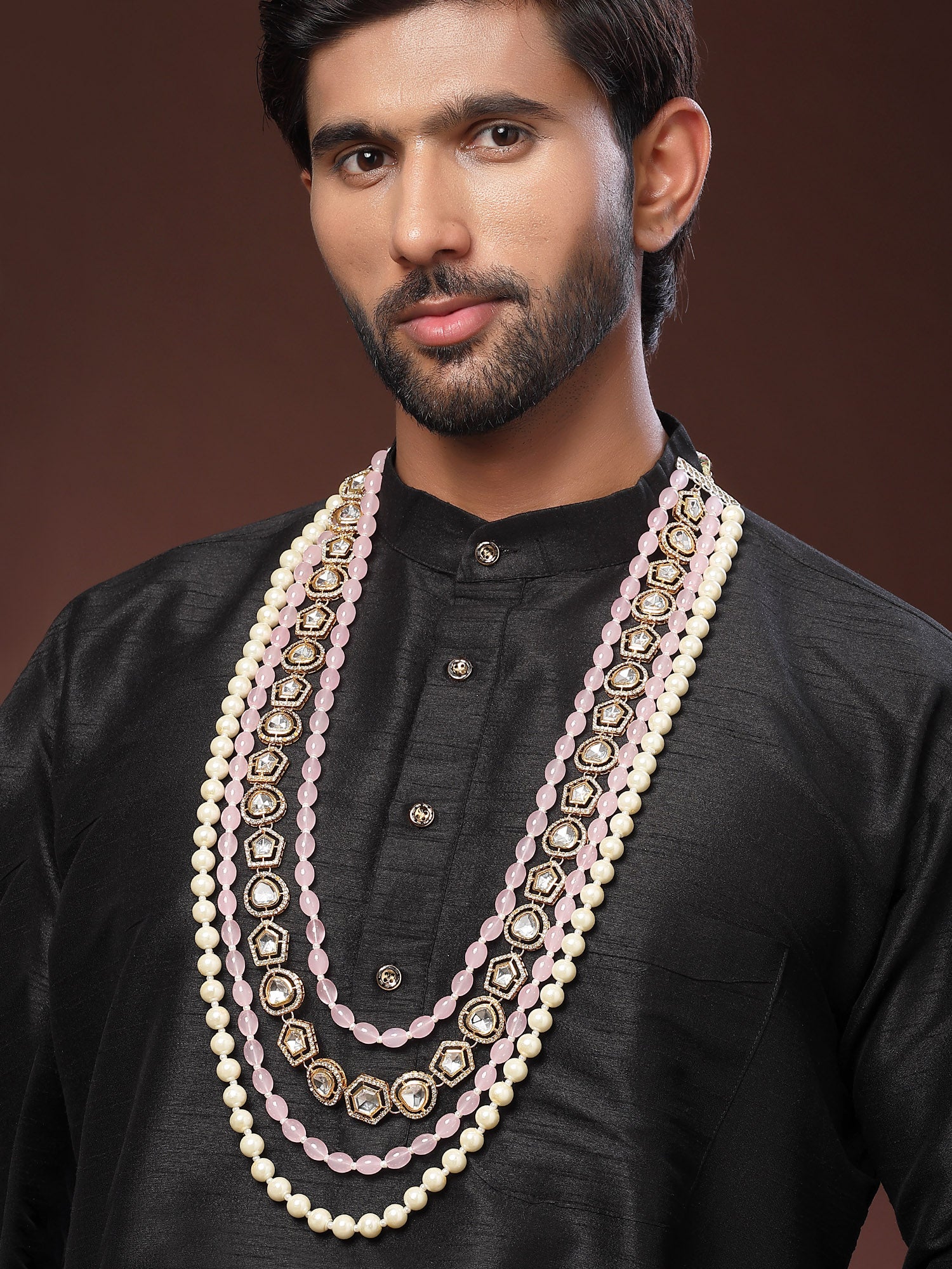 Karatcart Polki Kundan Pearl and Pink Tumble Maharaja Haar for Men