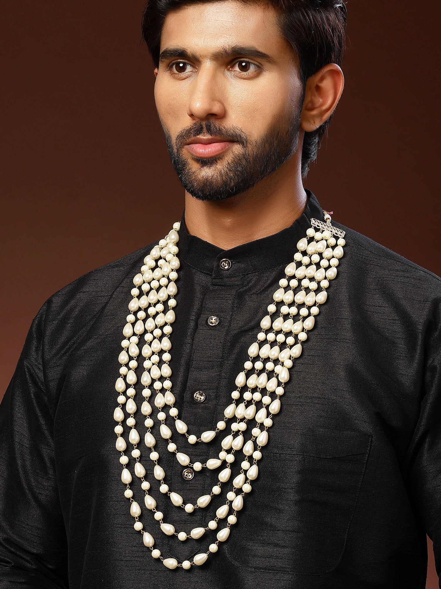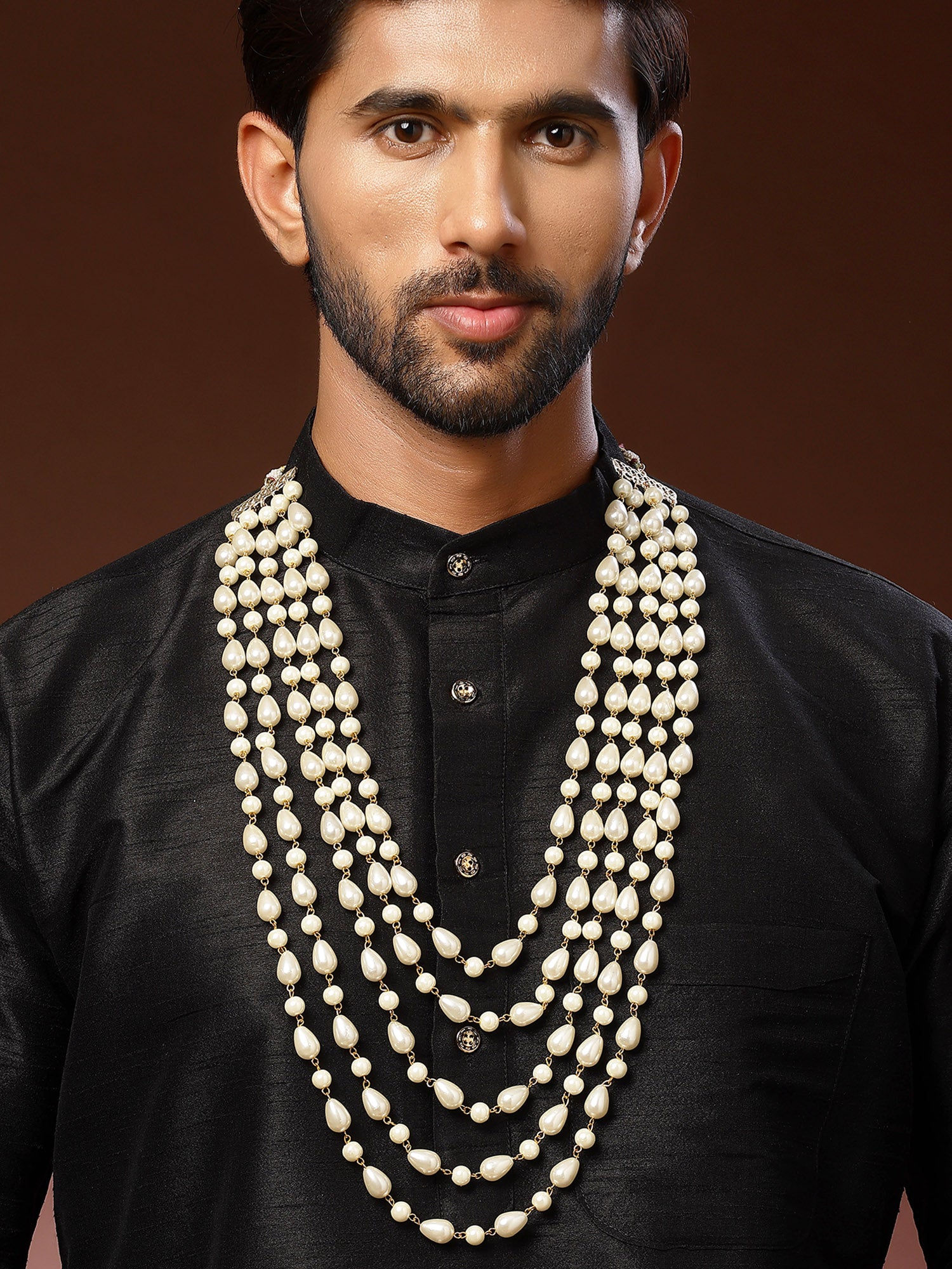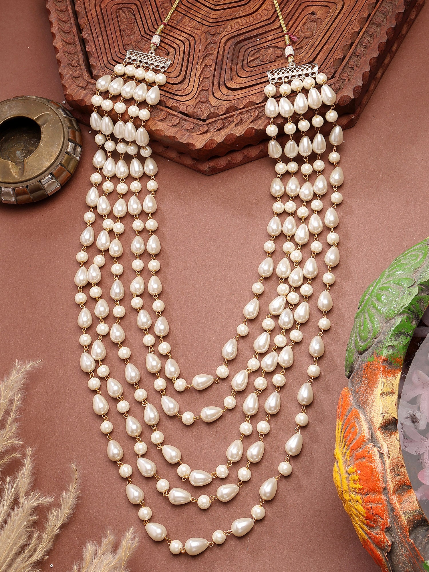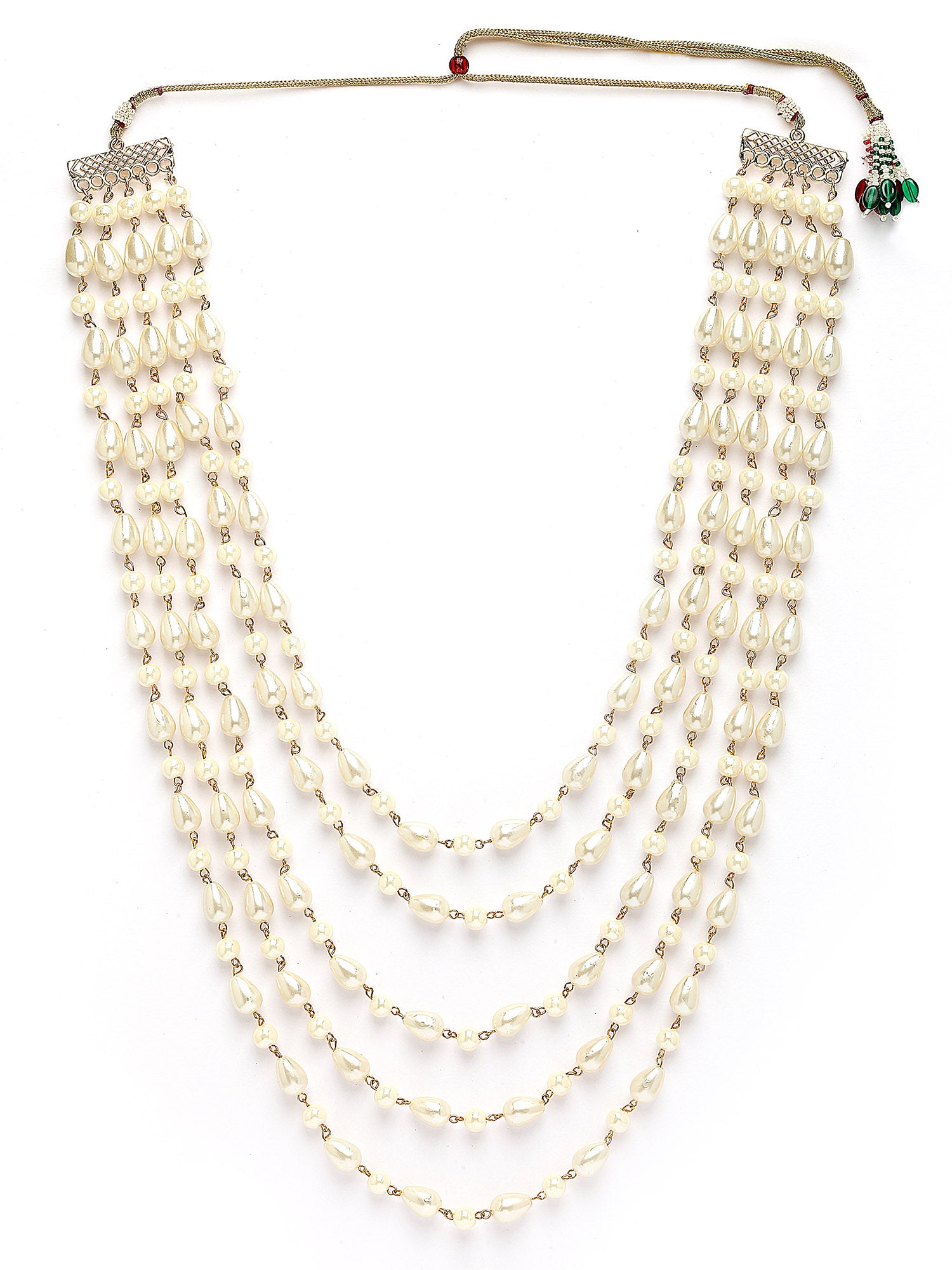 Karatcart Classic Multi Strand Drop White Pearl Maharaja Haar for Men